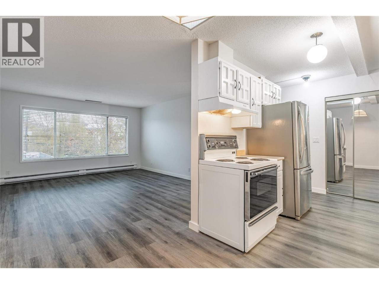 Awesome way to get into the market with this well kept and clean 2 bed, 1 bath top floor apartment! Centrally located on Sutherland Ave above a commercial space being used as a book store are four apartments. This pet friendly building is well kept and offers an excellent long term investment opportunity for future re development! The apartment is just over 750 sqft, features fresh paint, upgraded laminate floors and the large windows give the feel of a modern and bright space. Bedrooms are a split floor plan with each at the opposite sides of the apartment, great for roommates! The bathroom is also freshly painted and has a tub/shower combo. Main living space has a nice east facing exposure for morning sunshine. This apartment also has a large private patio that can be accessed across the hall. Electric baseboard heating and built in forced air roof top cooling unit for those hot summer Kelowna days! Low monthly strata fee. Storage locker is down the hall and is about 10' long by 4' wide with your own private hot water tank. Check out the virtual tour in the media tab! (id:6769)Construction Info