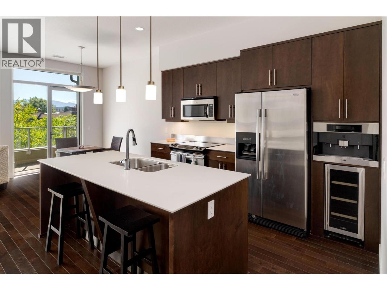 Experience elevated living in this 2-bedroom, 2-bathroom south-facing condo at Fuzion—where contemporary design meets resort-style amenities. Inside, the open-concept floor plan features high ceilings, rich hardwood flooring, and oversized windows that fill the home with natural light. The chef’s kitchen is equipped with stainless steel appliances, a built-in Miele coffee system, wine fridge, and a generous island that’s perfect for entertaining. The primary suite includes a spa-inspired ensuite with a walk-in shower, while the second bedroom offers flexibility for guests, a home office, or hobbies. All carpet in the home has just been replaced, offering a fresh and move-in ready feel. Everyday living is enhanced by in-suite laundry and secured parking with an extra-wide stall. This is a concrete building, ensuring a much quieter living environment. Residents also enjoy access to an outdoor pool & hot tub, a fitness centre, sauna, car wash bay, and meeting room. Perfectly located near shopping, dining, and downtown Kelowna, this home blends sophistication with everyday convenience. (id:6769)Construction Info