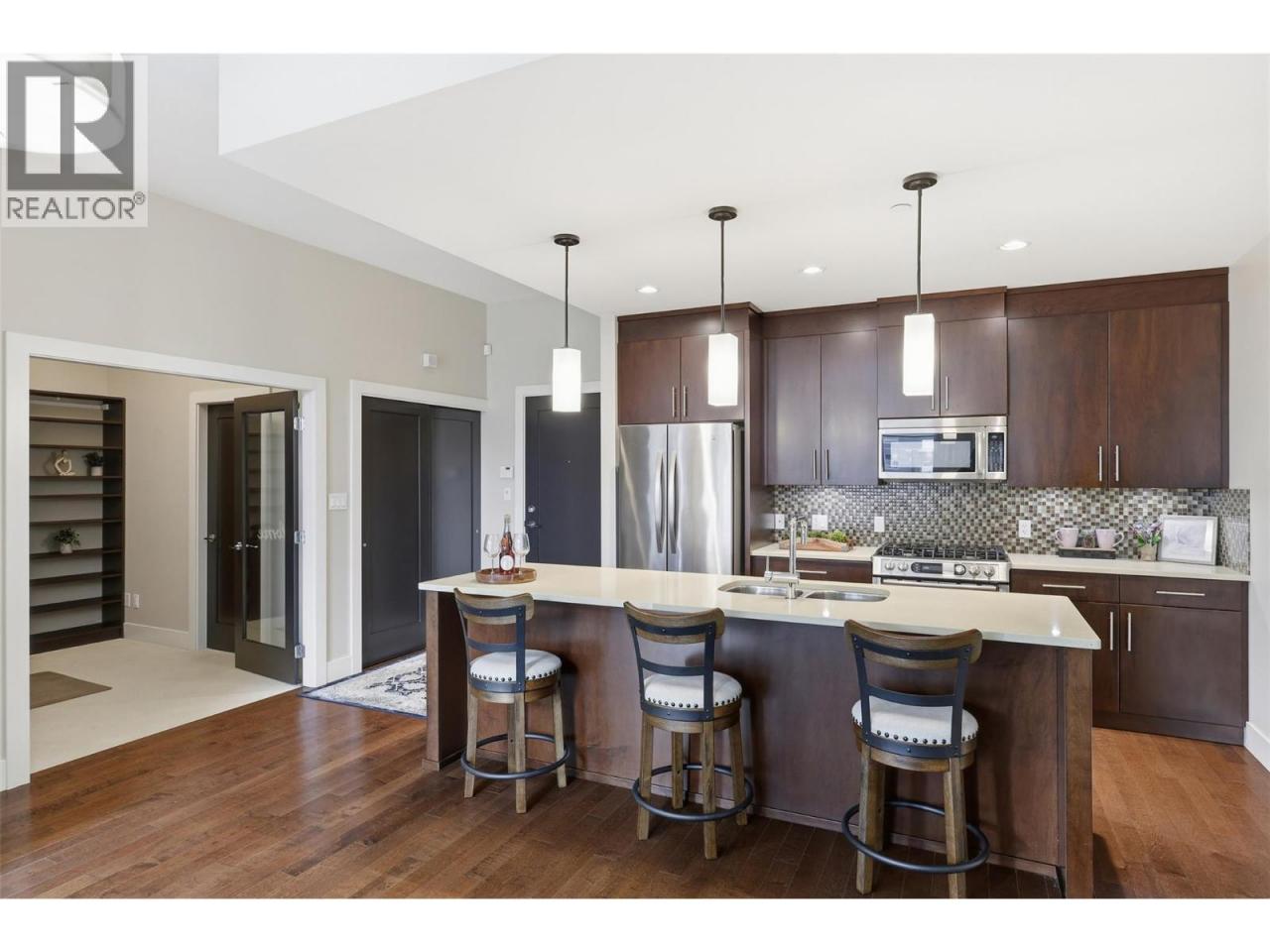 Experience elevated downtown living in this rarely available penthouse suite offering over 1,343 sqft of prime indoor living space in one of Kamloops’ most sought-after buildings, The Mosaic - where opportunities like this seldom come to market. This exceptional 2-bedroom plus den residence is thoughtfully designed with custom-built closets throughout, and a den featuring a built-in desk and shelving, ideal for a refined home office and has additional walk-in storage complete with custom built-in shelving. Both bathrooms are enhanced with heated floors, adding everyday comfort and a spa-like touch. Expansive windows showcase stunning city views, flooding the space with natural light and enhancing the open, sophisticated feel. Step outside to your private rooftop patio, a true extension of your living space, complete with a gas fireplace and garden boxes, perfect for entertaining, relaxing, or enjoying peaceful evenings above the city. Adding to the appeal are two dedicated underground parking stalls, a secure storage locker, and access to a convenient on-site dog wash station. Located in the heart of downtown, you’re just steps from shopping, dining, and the hospital, offering unmatched convenience and walkability. Penthouse suites in this building are rarely offered, so act quickly to secure this exceptional urban lifestyle. All measurements approx.; verify if important. (id:6769)Construction Info