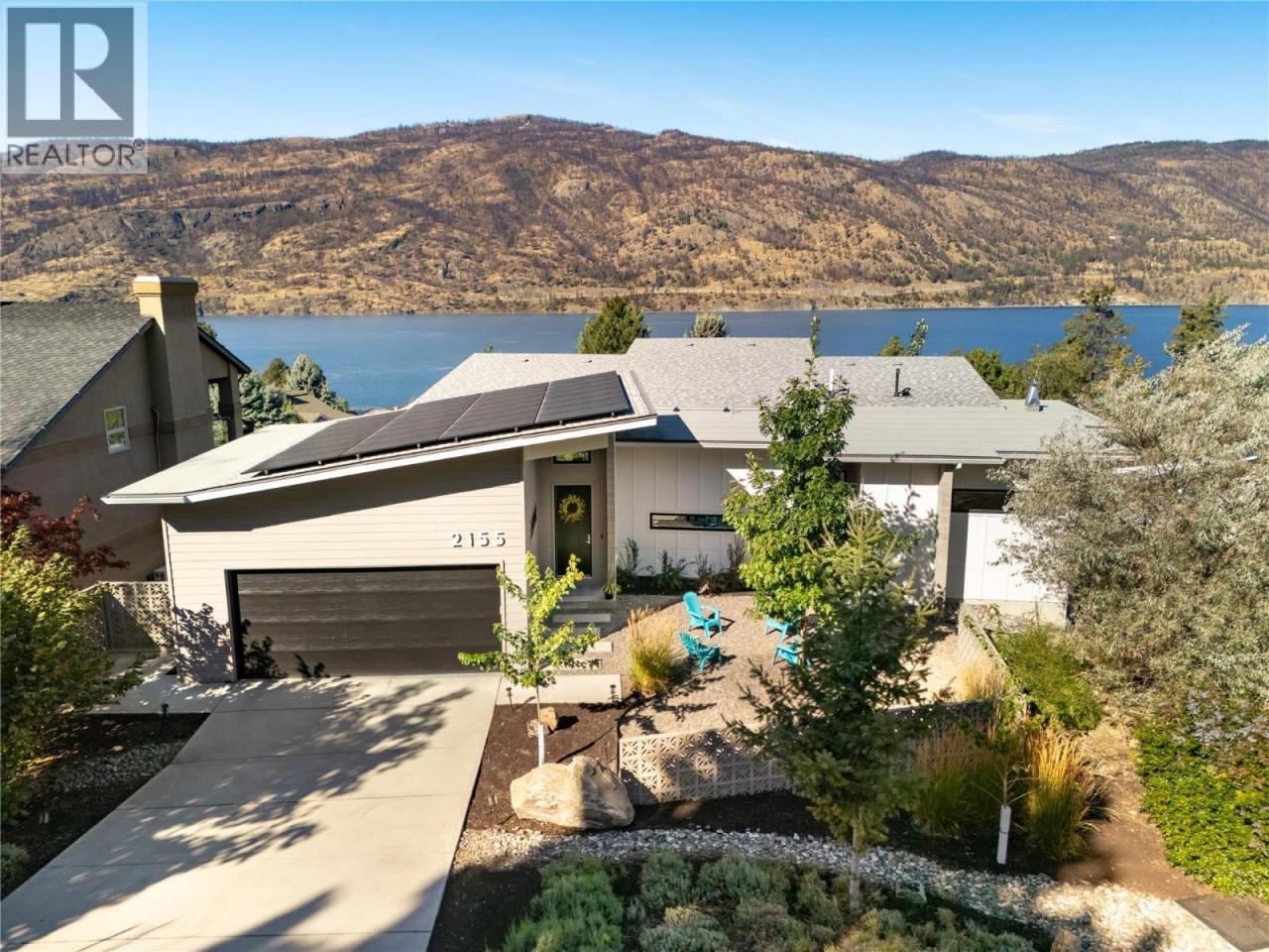 Perfectly positioned to showcase Okanagan Lake views within a mature, private neighbourhood, this nearly new custom residence embodies modern yet timeless living. Designed to maximize both comfort and style, the home is filled with natural light and showcases sweeping lake and mountain views from nearly every room. The main level highlights soaring ceilings, expansive windows, and an open-concept layout that seamlessly connects the kitchen, dining, and living areas. An oversized 8x12 ft sliding door opens to a vaulted covered patio, creating a striking indoor-outdoor flow perfect for entertaining or unwinding against the lakeview backdrop. The lower level offers exceptional versatility with 14-ft ceilings, oversized doors, and expansive spaces that include a recreation area, family room, office, gym, and a flexible kitchenette rough-in. Notable features include 31 solar panels & a two-car garage with EV charger and high ceilings that can accommodate a lift. Outdoors, the landscaped yard is graced with fruit trees and offers potential for a future swim spa with plenty of room for kids to run and play, plus easy accommodation for RV or boat parking. Blending refined design with everyday function, this property offers unmatched privacy, remarkable views, and a coveted location—just minutes from Aberdeen, UBCO, the lake, schools, shops, and recreation. (id:6769)Construction Info