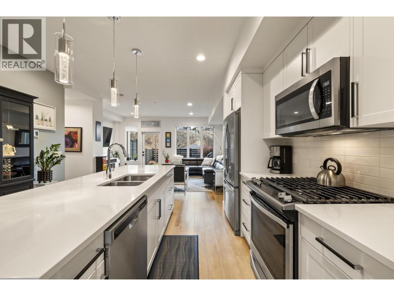 Best Location in the complex!! Modern 3-bedroom, 3-bathroom townhouse and ideally located in the heart of Lake Country. This well-designed 3-level home offers 1,478 sq. ft. of thoughtfully planned living space with a peaceful setting in a family friendly community. The bright, open-concept second level features a spacious great room, dining area, and contemporary kitchen with a large island—perfect for entertaining—along with a convenient 2-piece bath. Upstairs, you’ll find three bedrooms including a comfortable primary suite with a 3-piece ensuite, plus a full main bathroom for family or guests. The entry level includes a welcoming foyer and access to the oversized double tandem garage, providing parking for two vehicles plus an additional driveway space. Enjoy outdoor living with a private fenced yard, patio, and balcony, all within a landscaped, secluded complex close to parks, schools, shopping, transit, golf, and recreation. With central air, natural gas forced-air heating, quality finishes, and pets allowed with restrictions, this move-in-ready townhome offers exceptional value in a sought-after Lake Country location. (id:6769)Construction Info