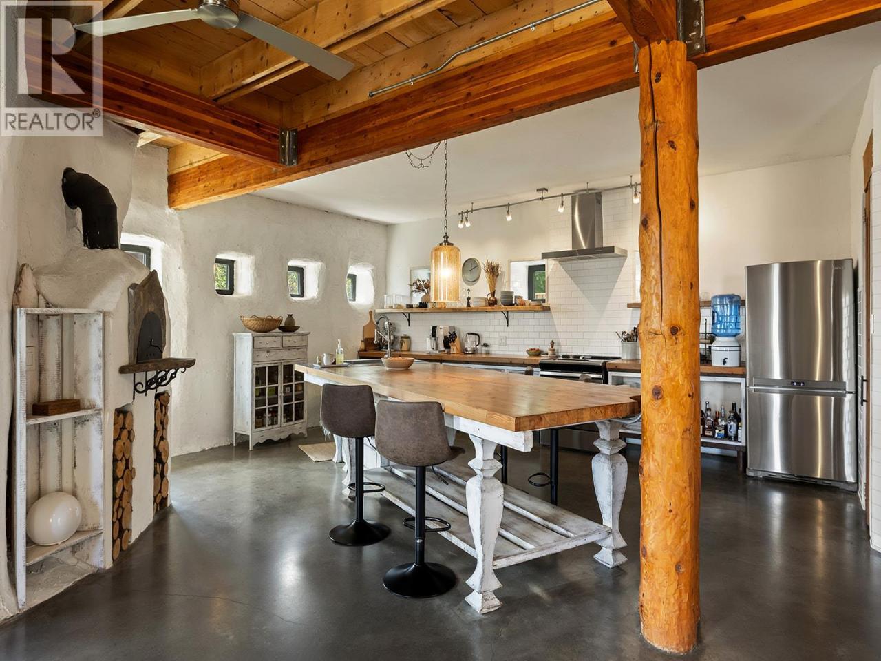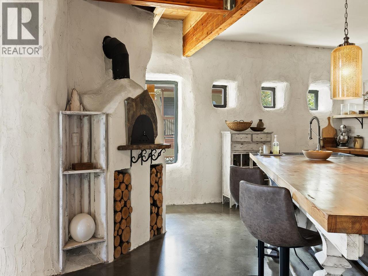 This one of a kind timber-frame straw-bale home blends architectural beauty with exceptional energy efficiency. Thoughtfully designed and extensively upgraded, this residence delivers remarkable heat retention and year round comfort with extremely low operating costs, averaging just three cords of wood annually for heating. The home features a Blaze King wood stove with long burn times, hydronic in floor heating on the main level, dual heat pumps for heating and cooling, and high performance tilt turn Innotech windows and doors. The ICF concrete slab, 18 inch straw bale walls, and reclaimed wood flooring naturally regulate temperature throughout the home, with upper level floors back beveled to allow warm air circulation. The kitchen showcases a wood fired Forno pizza oven, massive eat up island and apron sink, while the spa inspired main bathroom offers a 2025 tiled walk in shower, bidet, and in floor heat. Outdoors you will find a large covered patio, solar heated saltwater lap pool, veranda, newer fencing with custom metal caps, and a durable metal accented exterior. Major updates include a 2018 roof and eavestroughs, 2019 Duradeck upper deck, 2024 heat pump, and sewer brought onto the property with connection at the lot line. The property may support a future double garage with carriage house, buyer to verify. Built by the original owner with a passion for sustainable living, this is a rare opportunity to own a highly efficient and beautifully crafted home. (id:6769)Construction Info