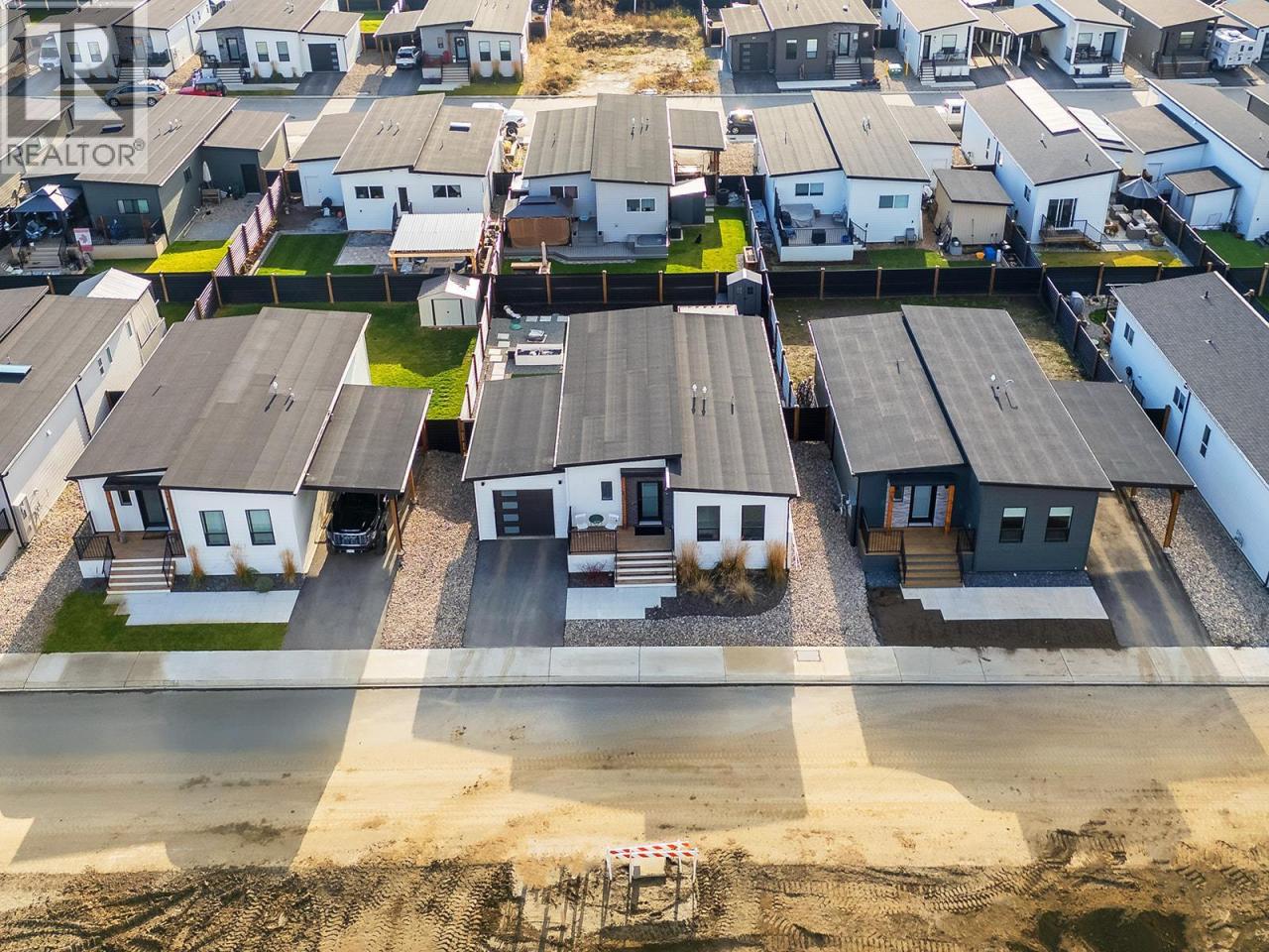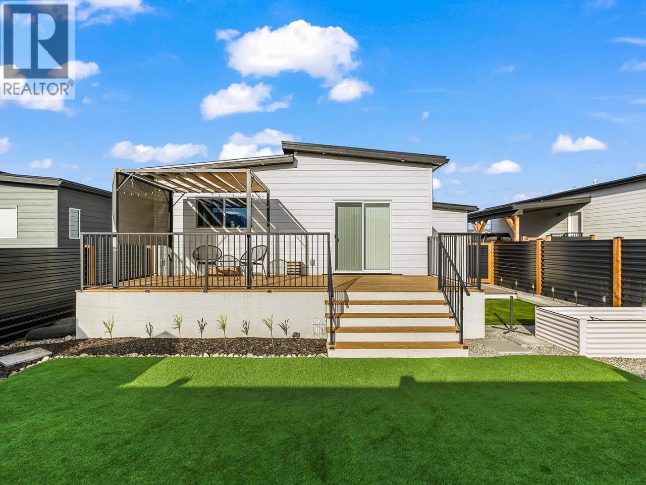 OVER $75,000 IN TOTAL UPGRADES - NO GST OR PROPERTY TRANSFER TAX - Flexible Possession! - Welcome to one of the most RARE floor plans in the desirable Deer Meadows Estates. This thoughtfully designed 2-bed, 2-bath layout is ideal for those who love the EXTRA spaciousness to unwind & entertain, forgoing the 3rd bedroom option. This results in an open-concept kitchen, dining, and living area that feels both expansive & inviting. The home showcases a full garage addition ($33k), upgraded interior package ($6800) with modern electric fireplace and energy-efficient hot water on demand, and a premium kitchen upgrade ($7350) featuring shaker panel cabinets, quartz countertops with seamless backsplash, undermount Blanco sink, under-cabinet LED lighting, & 9 deep drawers for enhanced storage. As well as a luxury double door fridge ($2500). Enjoy indoor-outdoor living with sliding doors leading to the patio & upgraded brown pressure-treated wood deck ($12,600). Additional outdoor enhancements include a second deck, landscaped backyard with pet-friendly synthetic turf, gazebo & shed, creating a full outdoor retreat ($7500). More Seller-added upgrades include washer and dryer, water softener & blinds. Deer meadows offers a pet friendly, modern, low-maintenance lifestyle with exceptional value & flexibility. Residents enjoy a community pickleball court & the Okanagan Rail Trail. Short-term rentals are permitted, adding excellent investment versatility. A great opportunity awaits! (id:6769)Construction Info