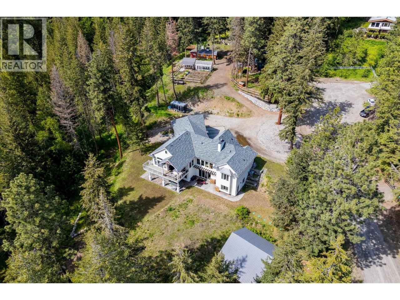 Stunning eight bedroom plus den or office, five bathroom residence with a legal suite, situated on a private 4.59-acre parcel in the Vernon area of the Okanagan Valley. Finished in 2018 and boasting over 4,900 square feet of finished living space, this home spares no expense. Upon entering, you are immediately greeted in the living room by soaring ceilings and an emphatic stone-covered, wood-burning fireplace. This area opens to a beautiful kitchen with an island, stainless steel appliances, and a hidden pantry. The main floor offers the perfect main floor living, with two bedrooms serviced by a Jack & Jill style bathroom, a luxurious primary suite with access to the balcony space, and a private ensuite. Downstairs, there is a large recreational room with a full bar and a large space with a separate office and bedroom, great if you have a home-based business that requires separation from the rest of the living space. There are two additional full bedrooms serviced by a full bathroom and access to an expansive patio. There is also a two bedroom, one bathroom legal suite under the suspended slab garage, offering a mortgage helper, or the perfect spot for family/guests. The large, detached workshop is perfect for your toys, woodworking, etc! This can be an active hobby farm, with extensive gardening space, a greenhouse, studio/shed, chicken coop, and extensive cross-fencing and paddocked areas for your potential animals. The remainder of the property feels like your own park! (id:6769)Construction Info