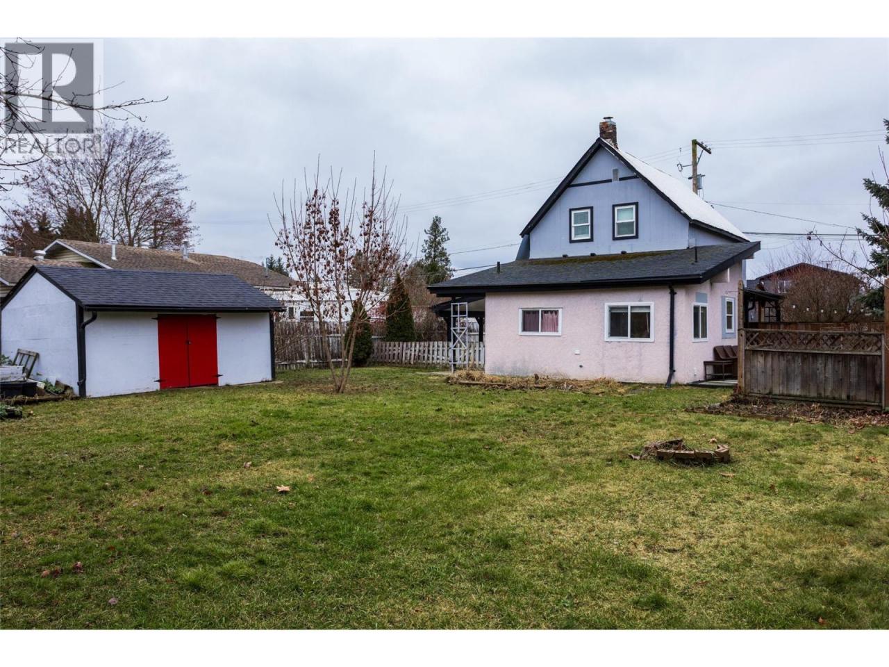 Welcome to this charming 4 bedroom, 2 bathroom heritage-style home on a large and flat 0.22 acre lot on a quiet street in the heart of Enderby. This property offers an incredible lifestyle with easy access to the Shuswap River and nearby beach, where summer days can be spent floating the river, paddleboarding, swimming, or enjoying peaceful walks along the river pathway just minutes from your door. Inside, the home is filled with warmth and character, featuring high ceilings that create an airy and spacious feel throughout. The primary bedroom with ensuite is conveniently located on the main floor, making this an excellent option for one-level living, while three additional bedrooms upstairs offer flexible space for family, guests, home offices, or creative use. The kitchen features white cabinetry and a gas range, with a dining nook overlooking the private backyard. Outdoors, the expansive yard includes mature apple trees, grape vines, blackberry and blueberry plants, providing a beautiful and productive outdoor space for gardening, entertaining, or relaxing with family and friends. Back alley access allows for additional parking for RVs or trailers and offers exciting future potential, including the possibility of a garage or carriage house, subject to city approval. Located close to schools, shopping, and recreation, and just a short drive to the crystal-clear waters of Mabel Lake, known for its beaches, boating, fishing, and camping, this home combines small-town charm, outdoor adventure, and long-term potential. With municipal water and sewer and a lot size that is becoming increasingly rare, this is a special opportunity to own a home that truly captures the Enderby lifestyle. (id:6769)Construction Info