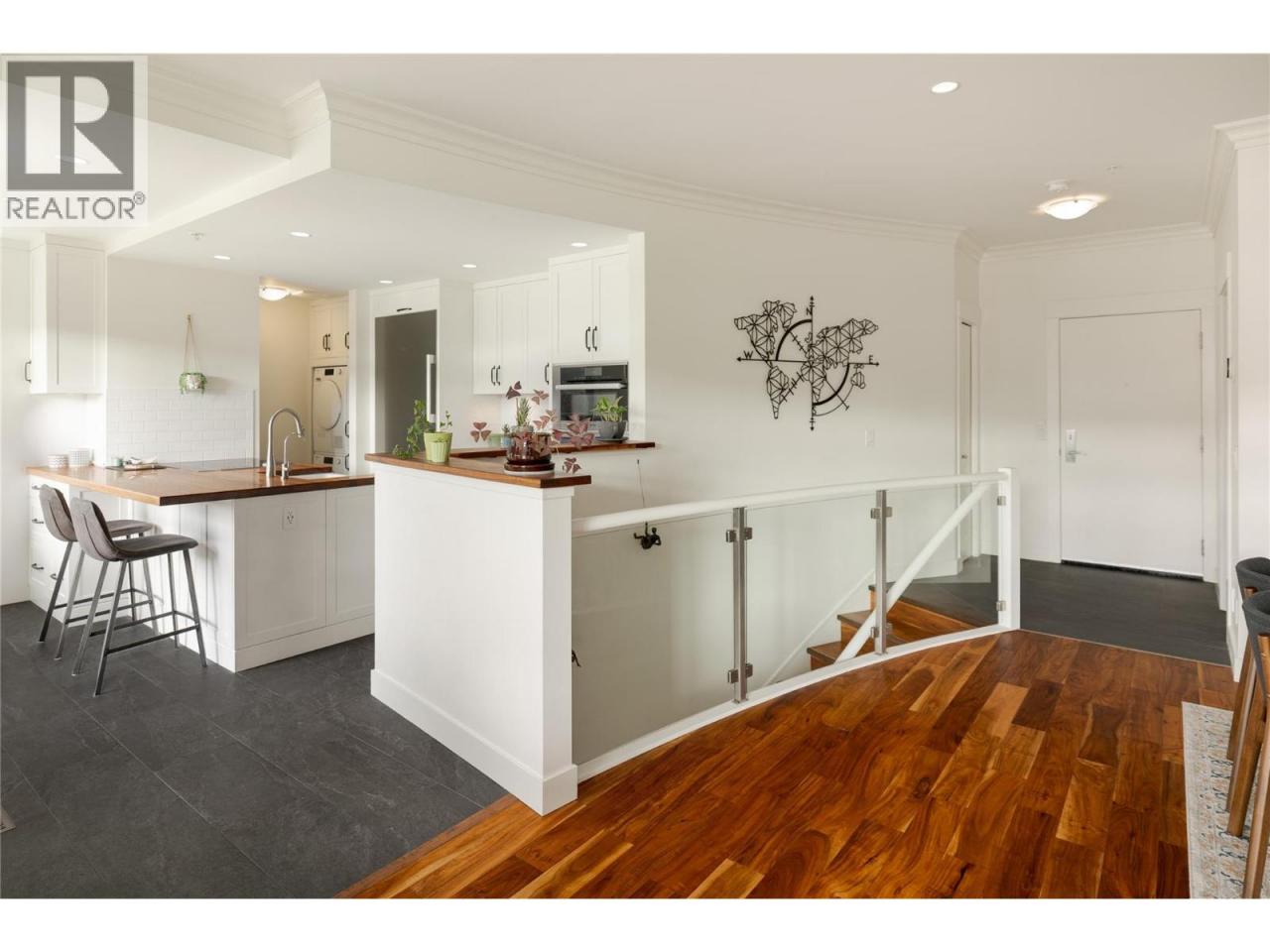 Mornings here begin with a short walk to the shoreline — coffee in hand, paddleboard tucked under your arm, the lake just steps from your door. Positioned directly across from the water in one of the city’s most sought-after waterfront corridors, this extensively renovated townhome was thoughtfully redesigned for both comfort and connection. The main living spaces are elevated on the upper level, where natural light pours through expansive windows and the rhythm of daily life unfolds. The kitchen was completely reimagined to be both beautiful and highly functional. Commercial-grade black walnut countertops bring warmth and depth, complemented by custom cabinetry with soft-close hardware and a full Miele appliance package. Whether preparing a quiet dinner or hosting friends after a day at the beach, the space feels intentional and inviting. The living area centres around a sleek fireplace framed by custom built-ins, creating a welcoming atmosphere year-round. From here, step onto the generous west-facing deck with retractable awning— a favourite place to unwind as the afternoon light softens. Downstairs, the home shifts into retreat mode. All bedrooms are located on the walk-out level, offering privacy and separation from the main entertaining areas above. The primary suite has been fully redesigned with a custom walk-through closet and spa-inspired ensuite featuring heated floors, heated towel bar and mirror, slate tile, vessel sink, and a multi-spray tiled shower. A second bedroom and flexible den allow space for guests, work, or creative pursuits. The lower patio includes storage for paddleboards and kayaks — making it easy to decide on a spontaneous evening paddle, while secure parking and storage unit provide convenience. This home is designed for those who value simplicity, quality, and a lifestyle that unfolds just beyond the front door. (id:6769)Construction Info