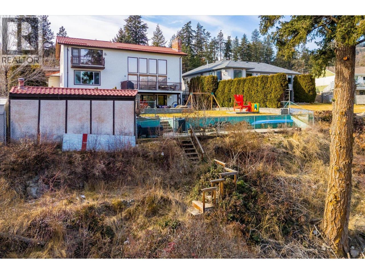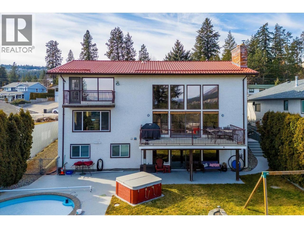 The Epitome of Okanagan living at its finest! Custom European Craftsmanship with a Contemporary Flair. This 5/6 bedroom, 3 bath family home is set on a level .41 acre lot which is fully fenced, landscaped with perennials and mature cedars for privacy. Enjoy the in-ground kidney shaped pool, hot tub and sauna. Notice the flat oversized driveway for 6 cars plus the double garage which is powered for a shop. Main level presents a 2020 renovated kitchen with high end chef inspired appliances which is open to the bright and spacious dining area that has a huge window overlooking the yard. The Living Room has an incredible floor to ceiling rock wall with a new cozy wood burning fireplace. Walkout the sliding glass doors onto your large deck. Look up and be amazed at the soaring custom wood ceilings. There is a unique spiral staircase leading up to the second level which is comprised of a sprawling Primary bedroom with a very large ensuite bath, walk- in closet and a walkout to a private deck for thru breezes and views. Snuggle up in the family room with custom built in wall units. Let's talk about the walkout basement with a separate entrance for suite potential. Fantastic rec room with a cozy gas fireplace and bar area, w/o to a covered patio. 2 bdrms and a gym which can be used as a 6th bdrm. Cedar sauna, updated bathroom with shower. ***Walking distance to two elementary schools and one middle school*** Main bus route, bus stop 3 houses away. (id:6769)Construction Info