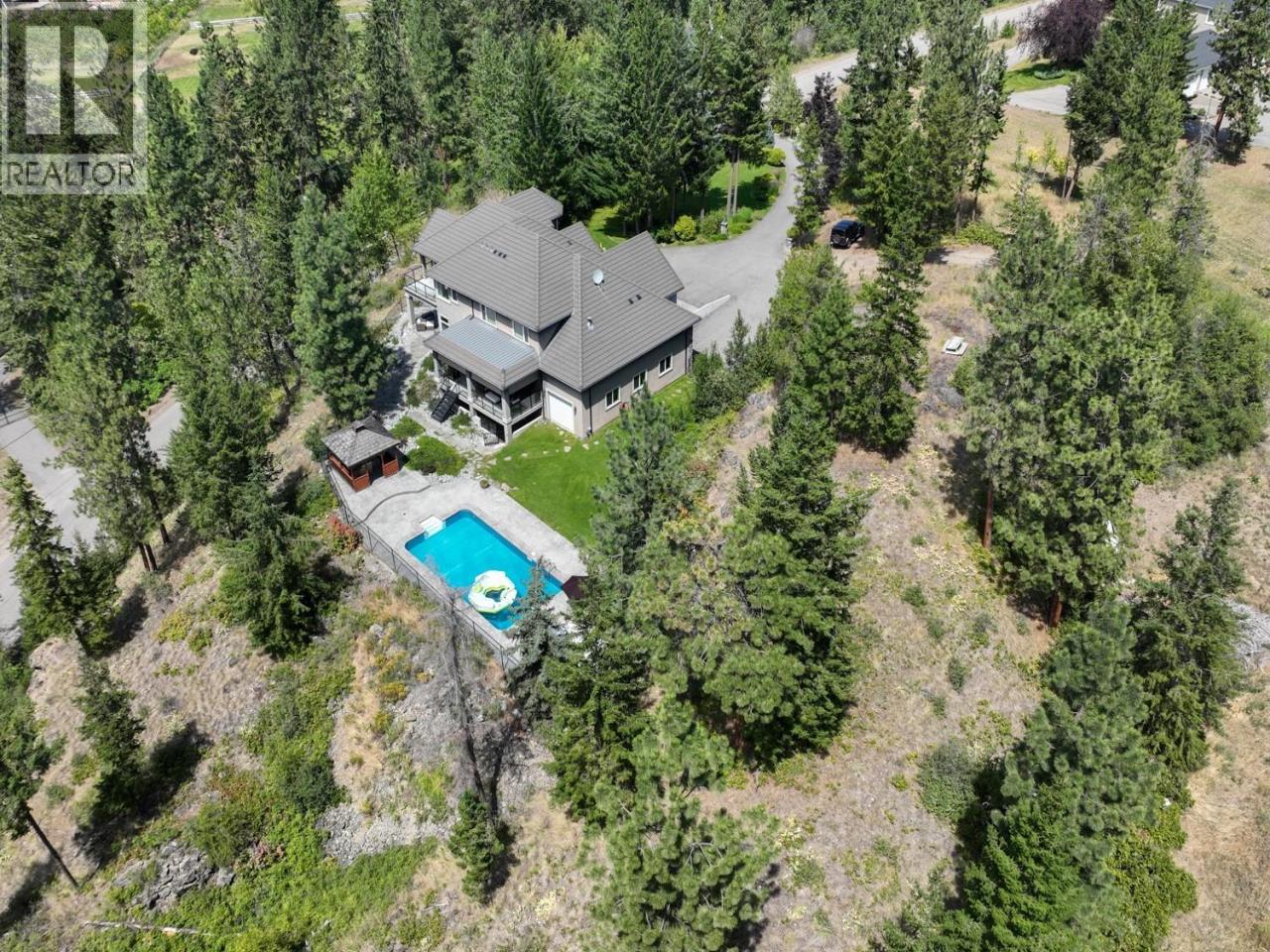 Welcome to this private estate on nearly 5 flat acres in the heart of SE Kelowna. This meticulously crafted 4/5 bed, 4 bath residence offers over 5,100sqft of classic design and updates. A sweeping tree-lined driveway leads to a timeless estate featuring a 1283sqft 3-car garage plus a 40-ft deep tandem bay, perfect for an RV, boat, or workshop. The home blends classic and modern, with a grand curved staircase, formal living and dining rooms, & a chef’s kitchen complete with high-end appliances. Doors open to the expansive backyard oasis with a heated 18x36 saltwater pool, patio space, and a covered gazebo complete with a hot tub—perfect for entertaining or unwinding in total privacy. Upstairs, the lake view primary suite features a walk-in closet, and a serene outlook over the surrounding landscape. Two additional bedrooms provide ample space for family and den or 5th bedroom plus an additional room. The walkout lower level includes a media room, a self-contained suite with separate laundry & kitchen, which could also be for guests, or poolside entertaining. Even provision in plans for elevator. Approx 3 acres are cleared and level—ideal for horses, outbuildings, or hobby farming. Zoning and size of land allows for engaging in agriculture, forestry, animal clinics, kennels and operating stables. Easy access to Crown Land and the nearby Crawford Trails/Myra-Bellevue Provincial Park offers excellent opportunities for hiking, biking, & horseback riding right from your doorstep (id:6769)Construction Info
