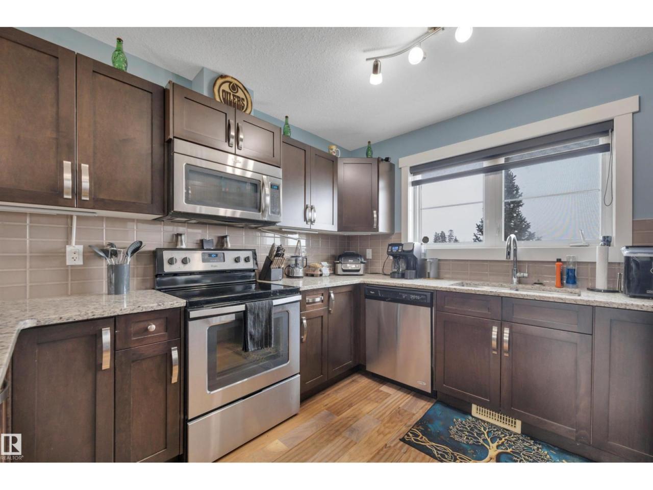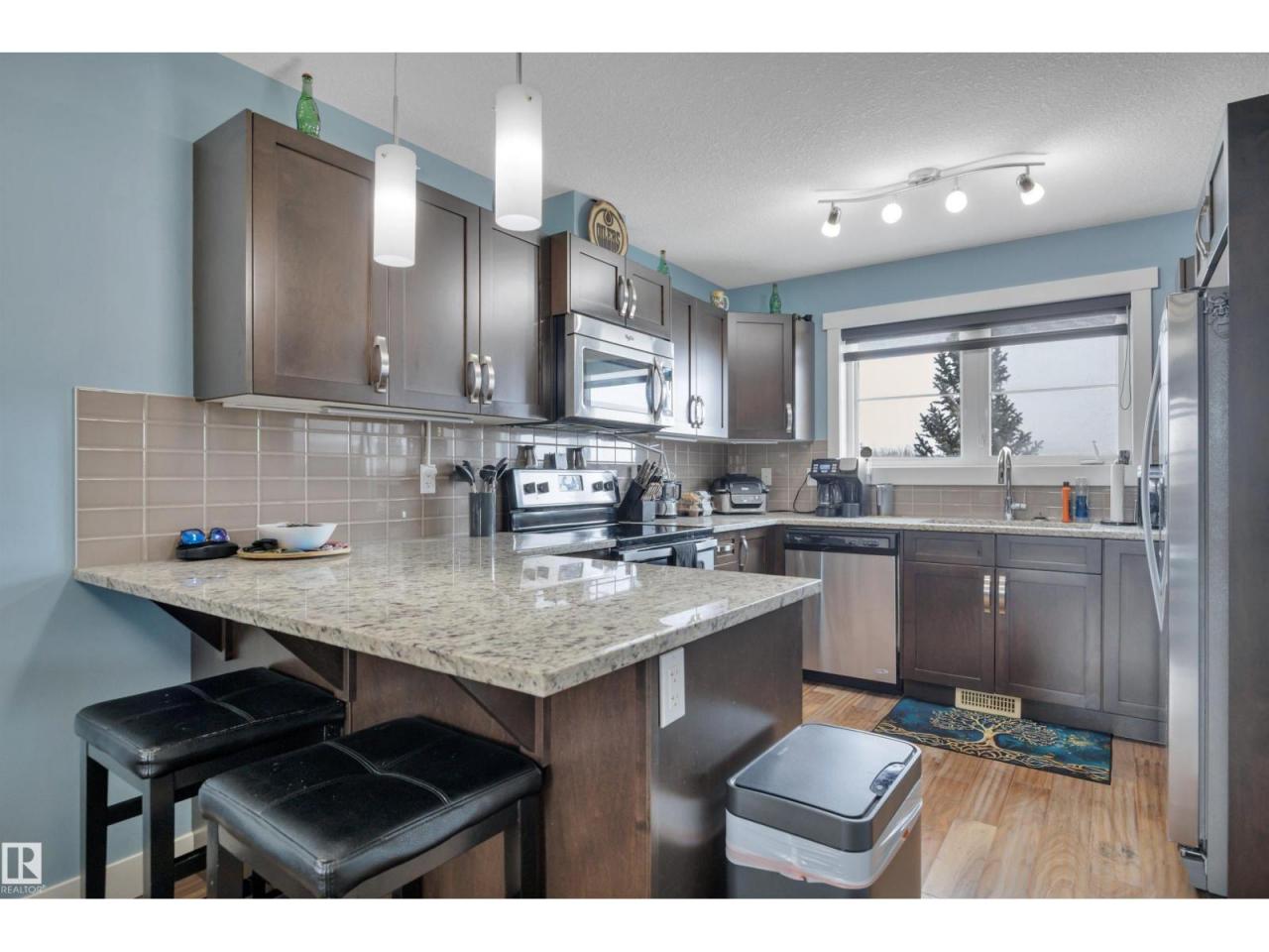 PRIDE OF OWNERSHIP! HARDWOOD & GRANITE PACKAGE! 31' DEEP GARAGE! Stop renting & start owning! This 1242 sq ft 2 bed, 2.5 bath home has been cared for & shows well. Granite countertops w/ subway tile throughout, engineered hardwood flooring with newer vinyl plank flooring upstairs, S/S appliances, updated paint, ample natural light & more! Main floor living space unites the kitchen / dining / living room together with a true open concept design. 2 pce bathroom & rear deck access for convenience. Upstairs brings duel primary bedrooms, each with their own 4 pce ensuite w/ tile flooring & walk in closet! Upper laundry & linen storage. Private deck for summer BBQs. Quick access to EIA & Hwy 2, amenities, schools, & multiple playgrounds steps away. Condo fees of $408.51 inc snow removal & landscaping, professional management. Terrific first home or investment property; great value! (id:6769)Construction Info