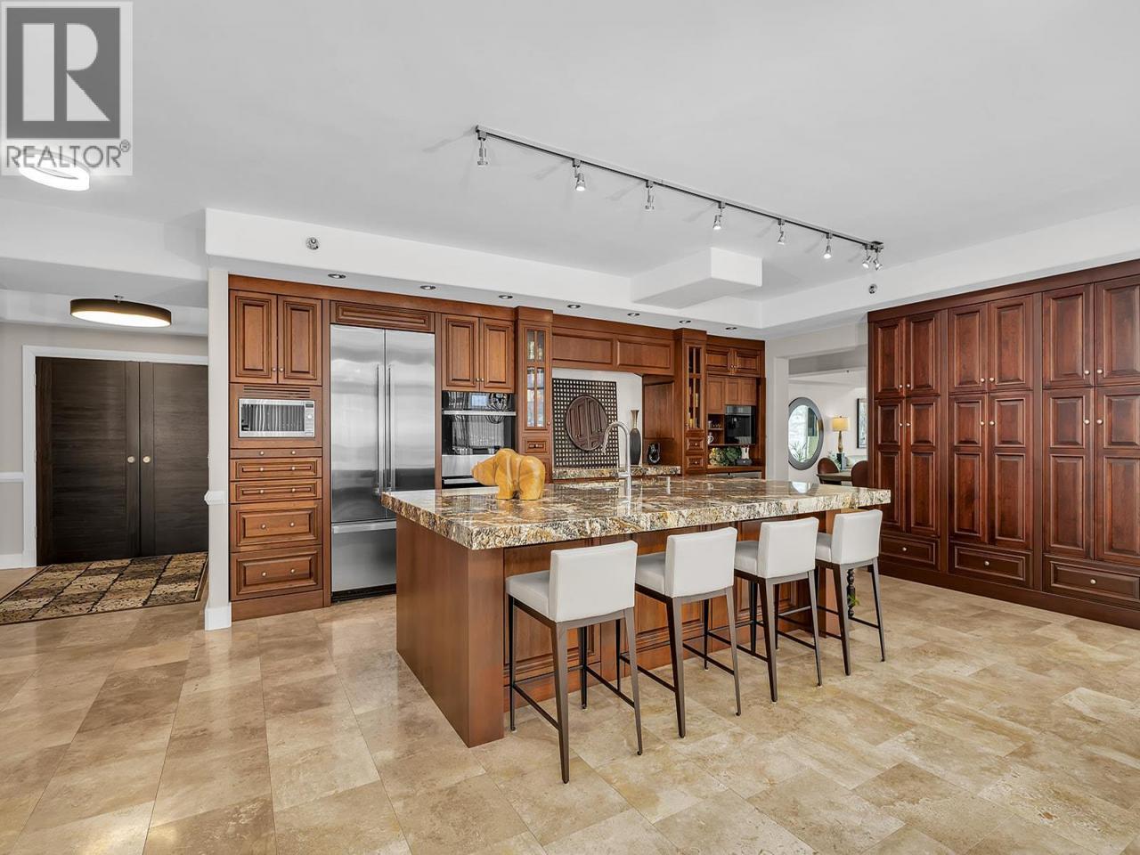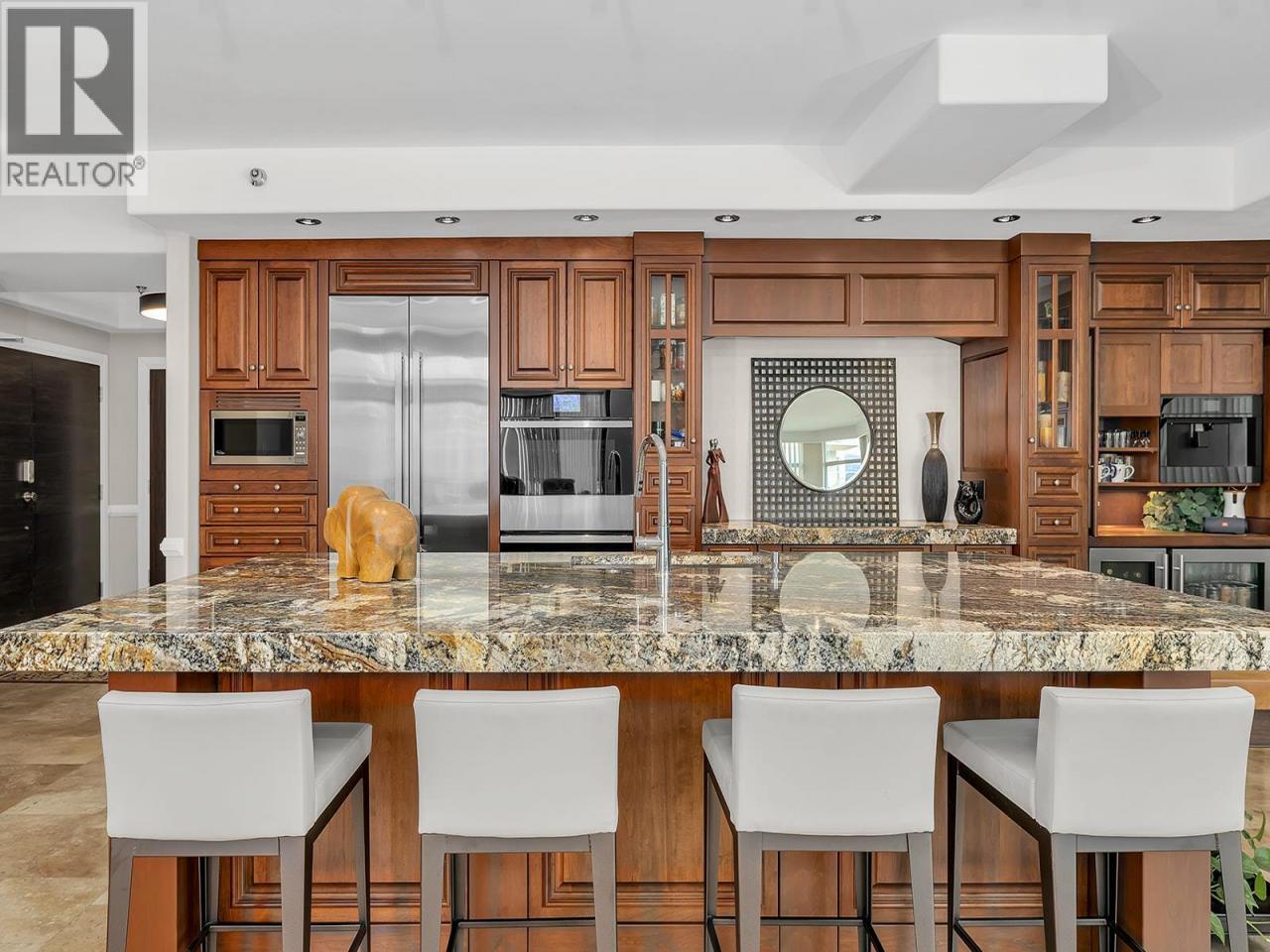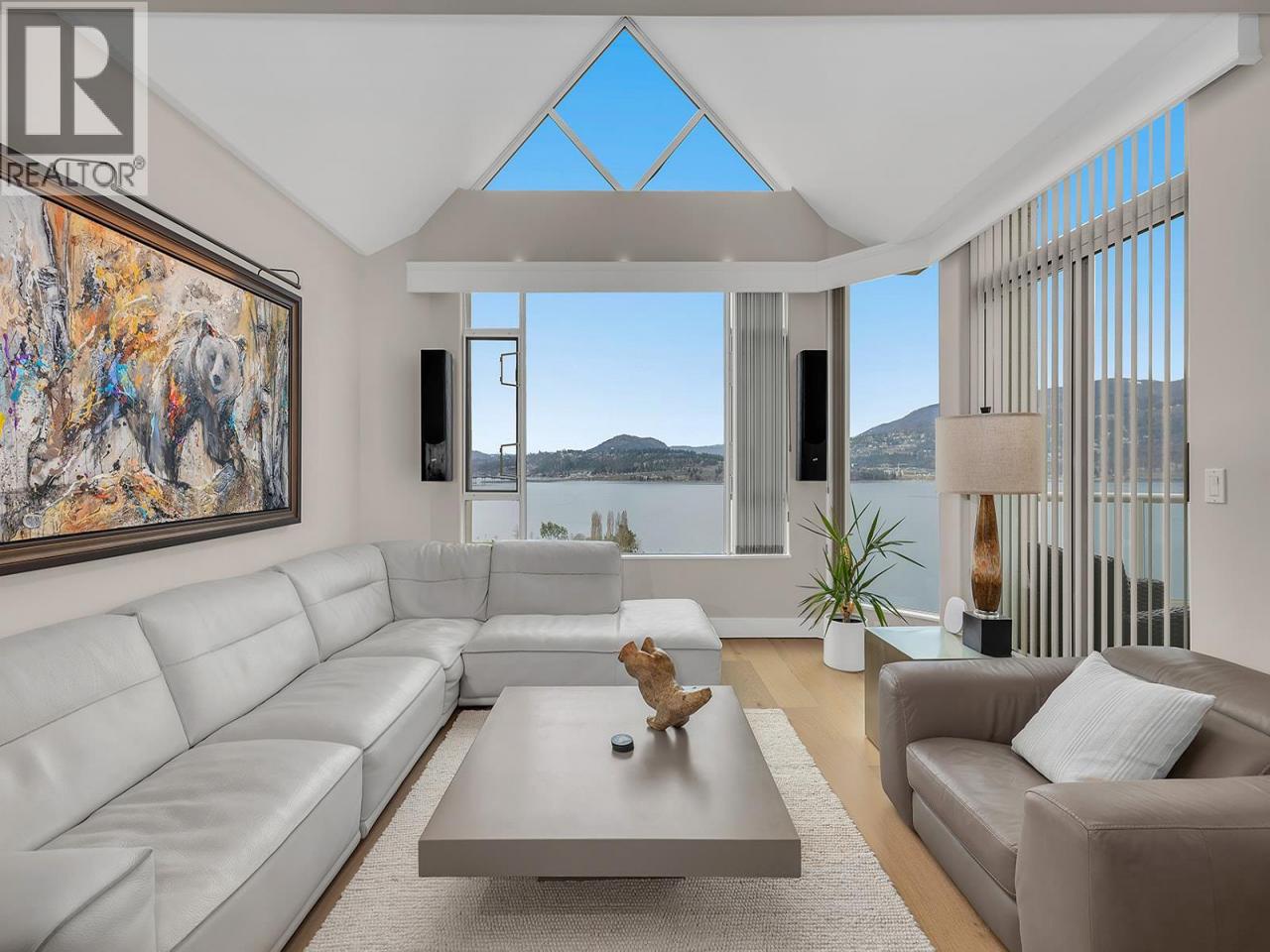 Where elevated elegance meets the water’s edge, this sky high penthouse commands a premier lakefront position in downtown Kelowna. Welcome to one of Kelowna’s most iconic lakefront penthouse residences. Spanning nearly 3,000 sq. ft., this meticulously renovated home rises above the city, offering sweeping panoramic views of Okanagan Lake, the bridge, the downtown skyline, and the beach below. The residence features hand crafted medieval walnut doors, Hunter Douglas window coverings, and a chef inspired kitchen with premium granite countertops and appliances. The vaulted living room, anchored by a contemporary gas fireplace, opens to one of three private decks, perfect for sunrise coffee or an evening glass of Okanagan wine from your temperature controlled wine room. The primary suite impresses with its own vaulted ceiling and a seamless flow from the custom walk through closet to a spa inspired ensuite complete with granite countertops, a floor to ceiling granite walk in shower, and heated floors. You'll also find two underground parking stalls, storage, resort style amenities including two pools, a steam room, and a fitness centre, plus potential for boat moorage in the lagoon. Positioned in the heart of downtown Kelowna, this rare penthouse delivers unmatched walkability to world class dining, shopping, galleries, theatres, the arena, and the beach. (id:6769)Construction Info