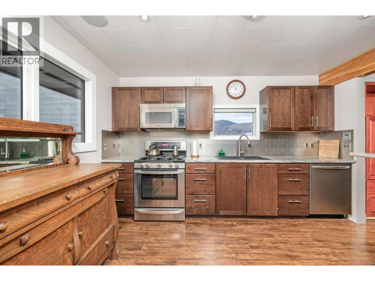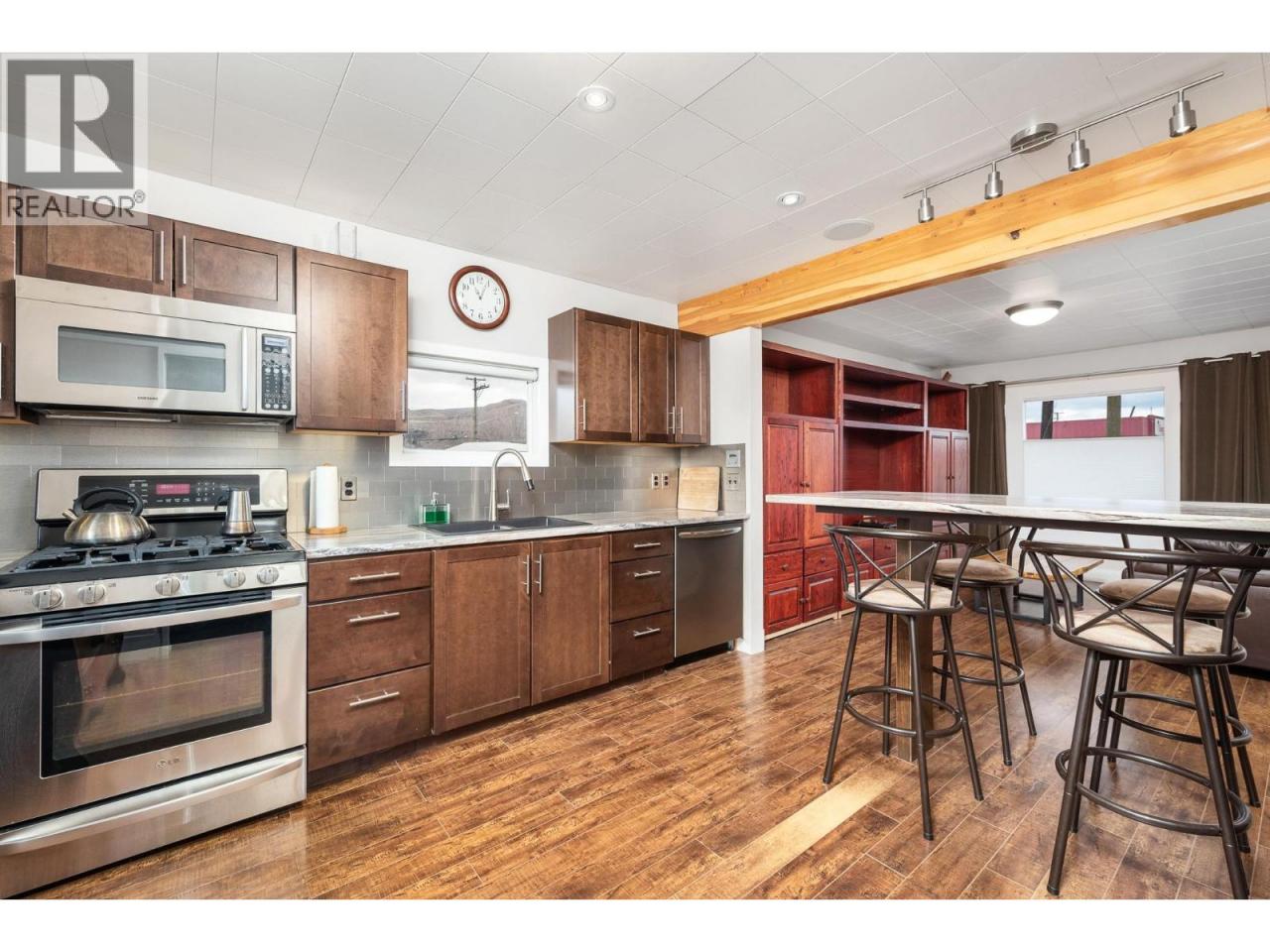Check out this convenient layout for you business! 50 x 158 ft level lot with good visibility on busy street plus lane access. Easy parking front and back. New INDL - light industrial zoning. Main floor of this building is perfect business set up with reception, meeting room, office, full staff kitchen with fridge, range, microwave/fan, dishwasher and full bath with shower. Lower level currently occupied by seller with kitchen,, bedroom, den, full bath and laundry! Natural gas heating plus electric baseboard. Alarm system. Storage shed off back lane also with security. GST applies. (id:6769)Construction Info