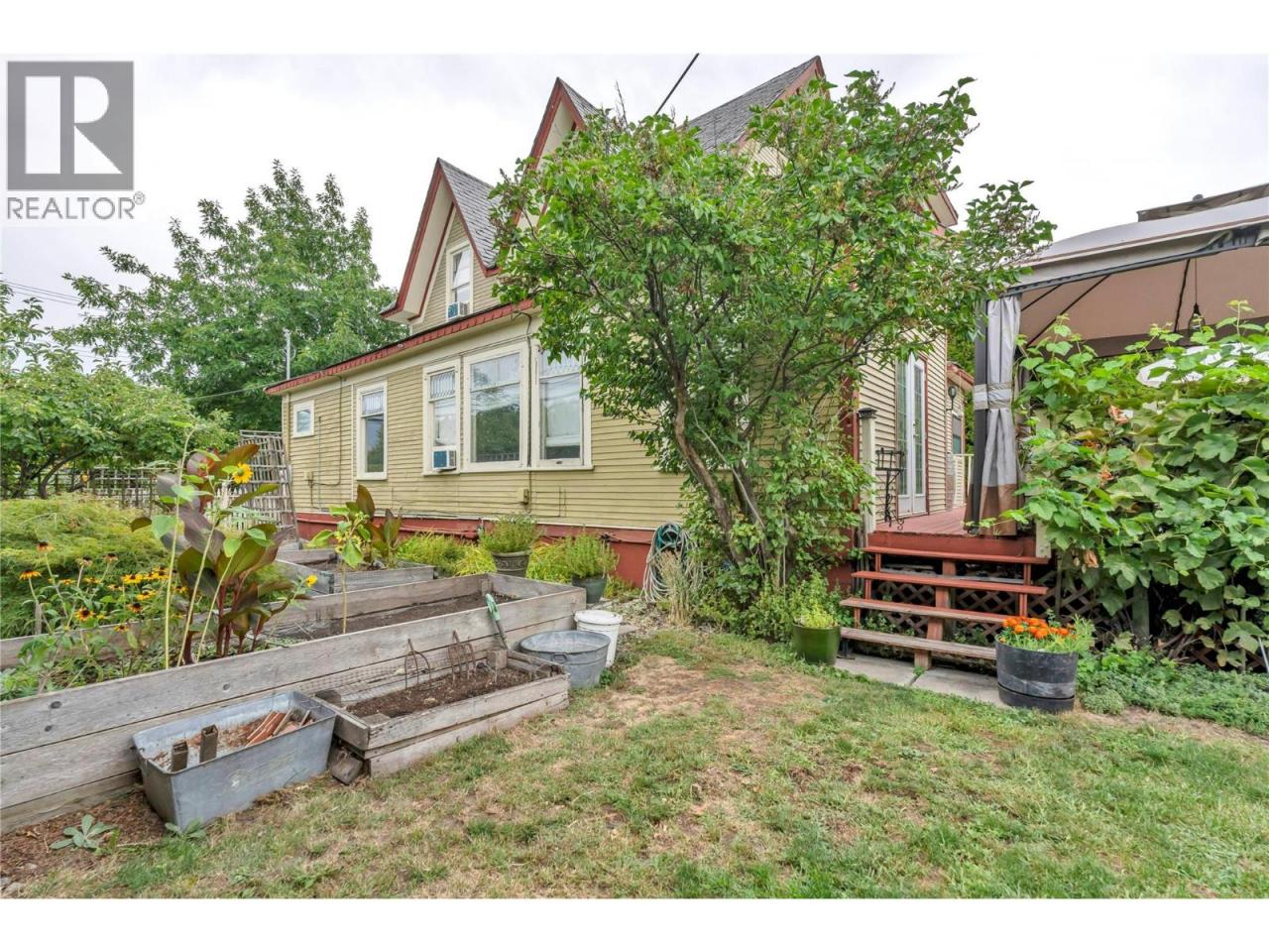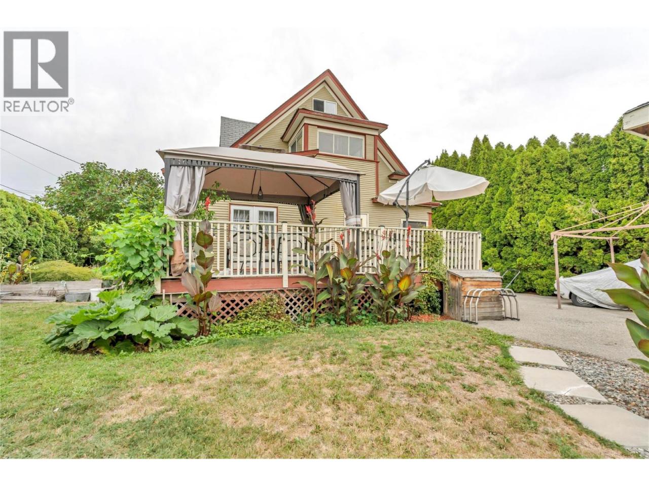 Proud to present a true Penticton landmark — the iconic Keyes House (1912), a late Victorian residence featured on the cover of Penticton in Color Photos. This Queen Anne Revival masterpiece showcases steeply pitched paired gables, intricate trusses, and timeless architectural character throughout. Offering 4 bedrooms and 3 bathrooms, this home is filled with natural light, soaring ceilings, and preserved heritage charm. The main floor features a flexible bedroom and bath — ideal as a primary on the main or guest suite (this section previously operated as a successful AirBnB), a cozy living room with gas fireplace, den, and a bright kitchen that flows into the family and dining areas. An additional main floor bath with shower sits beside the laundry for convenience. French doors open to a spacious deck and gazebo overlooking the beautifully landscaped .18 acre corner lot. Upstairs you’ll find 3 more bedrooms and a full bath with classic clawfoot tub, plus a top-floor flex space perfect for a studio, retreat, or creative haven. Hot water radiant heat adds comfort year-round. Outside, enjoy mature trees, garden boxes, lane access to a double garage, and ample parking including space for an RV. Fresh paint inside and out enhances the home while preserving its historic integrity. Located just 3 blocks to the SOEC hockey rinks, 1 block to Kings Field, and steps to downtown restaurants, shops, markets, and the beach — this is heritage living blended seamlessly with modern lifestyle. Book your private showing and experience this one-of-a-kind home in person. Check out the listing website at https://snap.hd.pics/494-Young-St (id:6769)Construction Info
