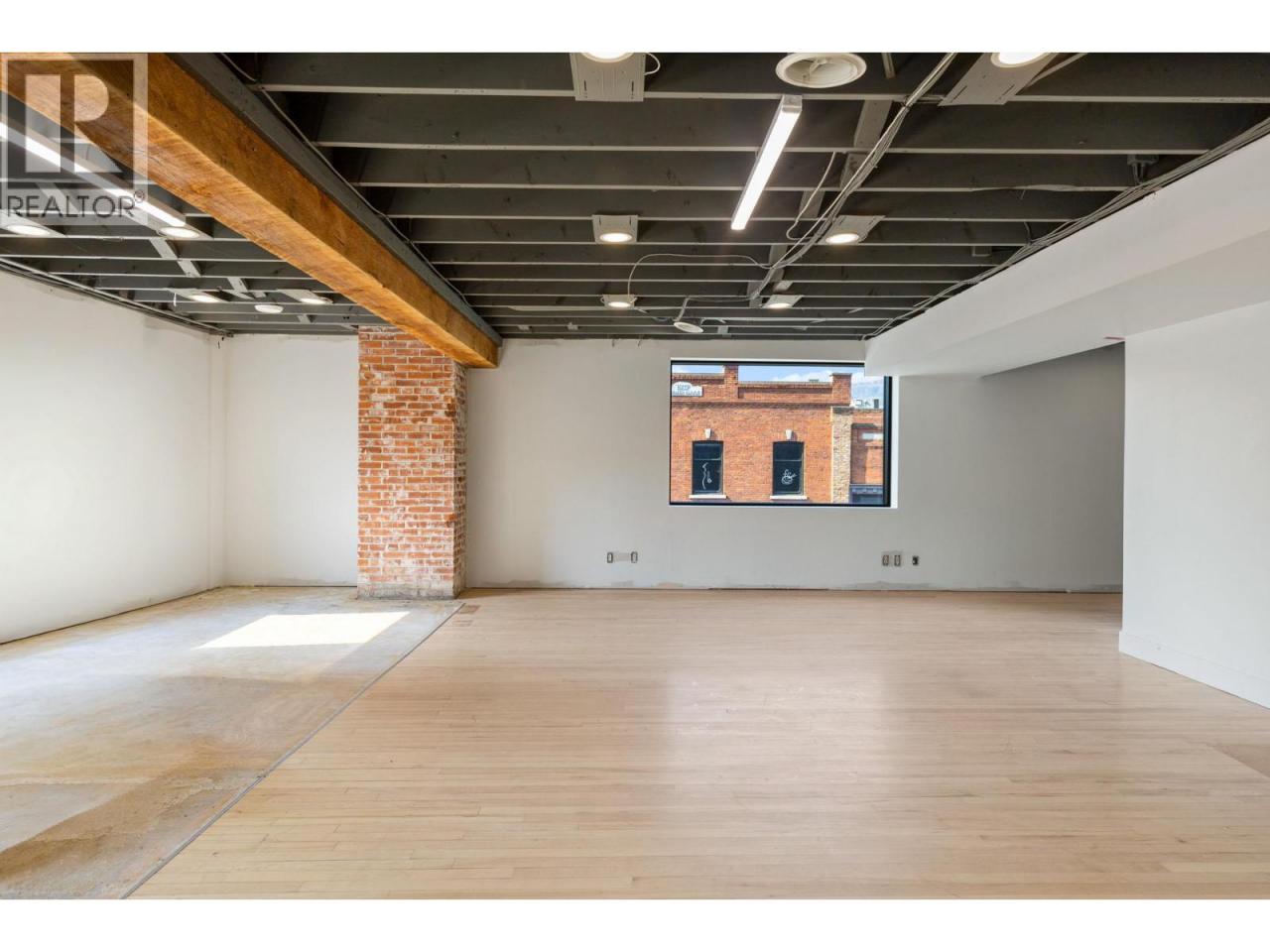 Located at Water Street and Bernard Avenue, this second-floor space offers an expansive open floor plan suited to a variety of uses, including professional office, boutique fitness, training facilities, and wellness operators. The building has recently undergone a significant exterior renovation and is anchored on the retail level by flagship retailer Arc’teryx and a local favourite, Fancy’s Deli. With an upgraded facade and prominent Bernard Avenue frontage, the property delivers excellent signage exposure and high pedestrian and vehicular activity within the vibrant “Meet Me on Bernard” pedestrian zone. This +/- 5,262 sq.ft second-floor space features exposed timber beams, expansive windows that bring in natural light, and secure fob-controlled access via both elevator and stairwell. Delivered in shell condition, it offers maximum flexibility to accommodate a fully tailored tenant build-out. Demising and inducement options are available for qualified tenants. (id:6769)Construction Info