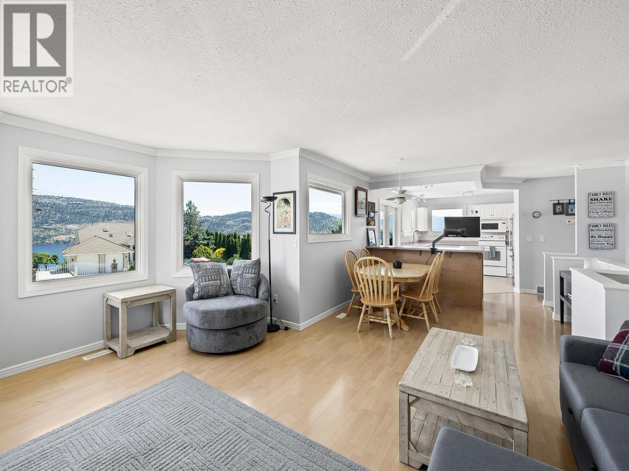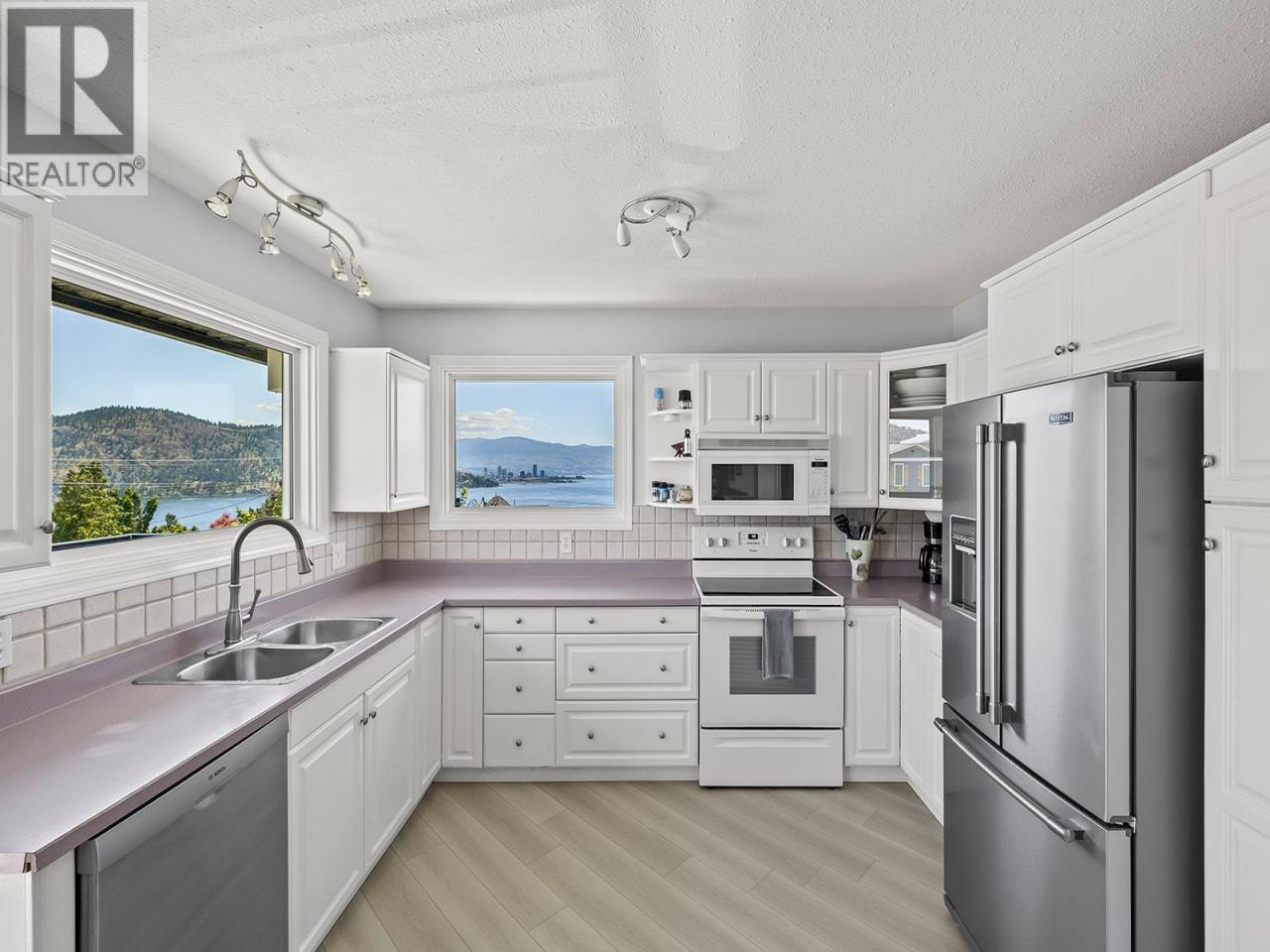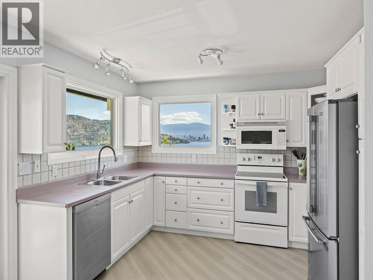 Stunning lake views define this beautifully updated 4 bed, 3 bath, 2,260 sq. ft. home. Located in the quaint neighbourhood of Trader's Cove and just a short stroll to the Okanagan Lake and beautiful beaches in Trader's Cove Marine Park, but also only a 15 min drive to downtown Kelowna. The main level offers 3 bedrooms and 2 bathrooms, a bright living space with updated lighting, new kitchen flooring, a new fridge and dishwasher, plus a wraparound deck that showcases panoramic views stretching across Okanagan Lake. The primary bedroom includes a large closet and 4-pce ensuite. The lower level has been fully renovated with its own laundry, new floors, new kitchen, and fresh paint. Recent updates include full exterior paint, giving the home a fresh, modern look. Additional features: double garage, underground irrigation, fenced dog run, and a brand new cabin, with a sleeping loft and a WETT Certified wood burning stove. This move-in ready property combines income flexibility, updated living spaces, and some of the best lake views the Okanagan has to offer (id:6769)Construction Info