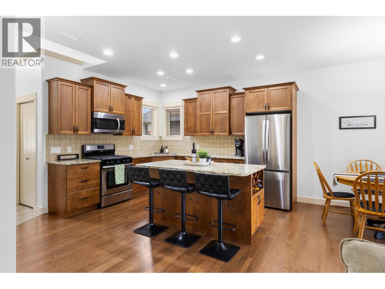This 4-bedroom, 2.5-bathroom end-unit townhouse at 3350 Woodsdale Road offers 1,800+ square feet of thoughtfully designed living space in one of Lake Country's most desirable locations. With a main floor primary suite and dual living areas, this home delivers both comfort and functionality for families seeking an active Okanagan lifestyle. The open main floor creates an inviting flow between the kitchen, dining, and living areas. The kitchen features stainless steel appliances, a gas range, and an eat-up bar that provides extra seating for casual meals. Large windows fill the space with natural light while overlooking Beasley Park, giving you a peaceful green outlook without the maintenance of a large yard. The main floor primary suite offers convenient one-level living. This layout provides flexibility whether you're accommodating guests, working from home, or planning for future accessibility needs. Upstairs, three additional bedrooms & a second full bathroom provide private spaces for family members & guests. The bonus second living room creates a versatile area for a playroom, media room, or teen retreat, giving everyone space to spread out. Location defines this property. You're steps from Wood Lake, placing beaches, trails, and water activities within easy reach. The nearby Okanagan Rail Trail connects you to kilometers of walking & cycling paths. Lake Country's central services, schools, and shopping are all close by, reducing drive time and maximizing family time. (id:6769)Construction Info