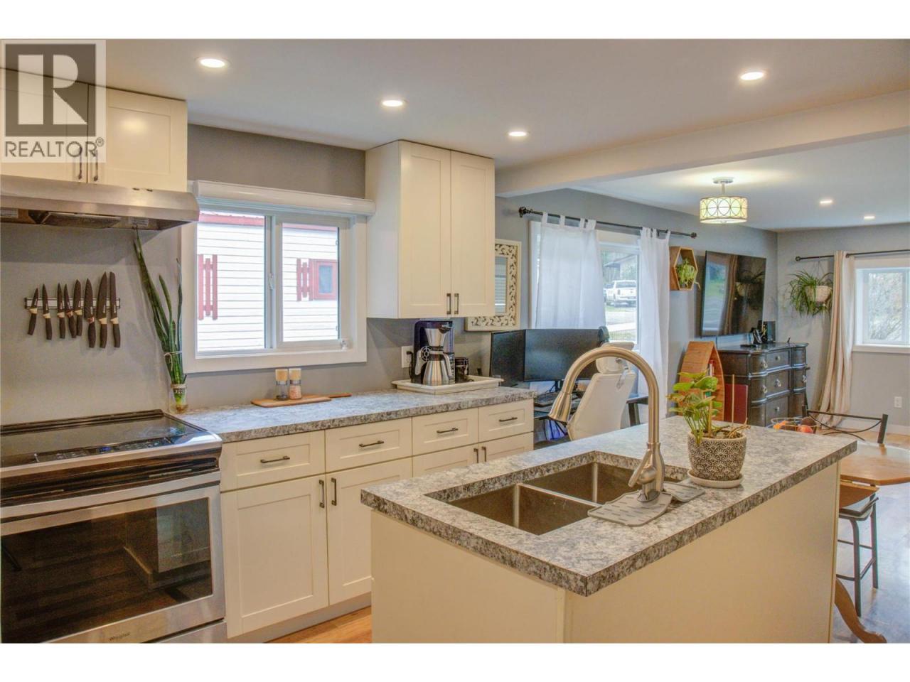 Nicely updated home in Quiet Silver Creek Neighbourhood. This 2-bedroom, 1-bathroom home offers a bright and open main living area including the kitchen with island and stainless steel appliances. Updated 4 piece bathroom with an easily accessible laundry area. Enjoy the fully fenced yard with tasteful metal privacy fence, covered deck, open patio area, plus a 7' x 16' storage shed. Many updates include the roof, siding and windows. Located in a pet friendly park (allowing 2 dogs or 2 cats with restrictions), a short walk to the community store, elementary school and just 15 minutes to Salmon Arm. (id:6769)Construction Info