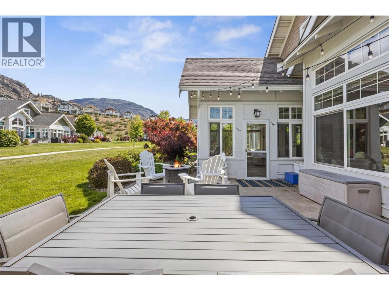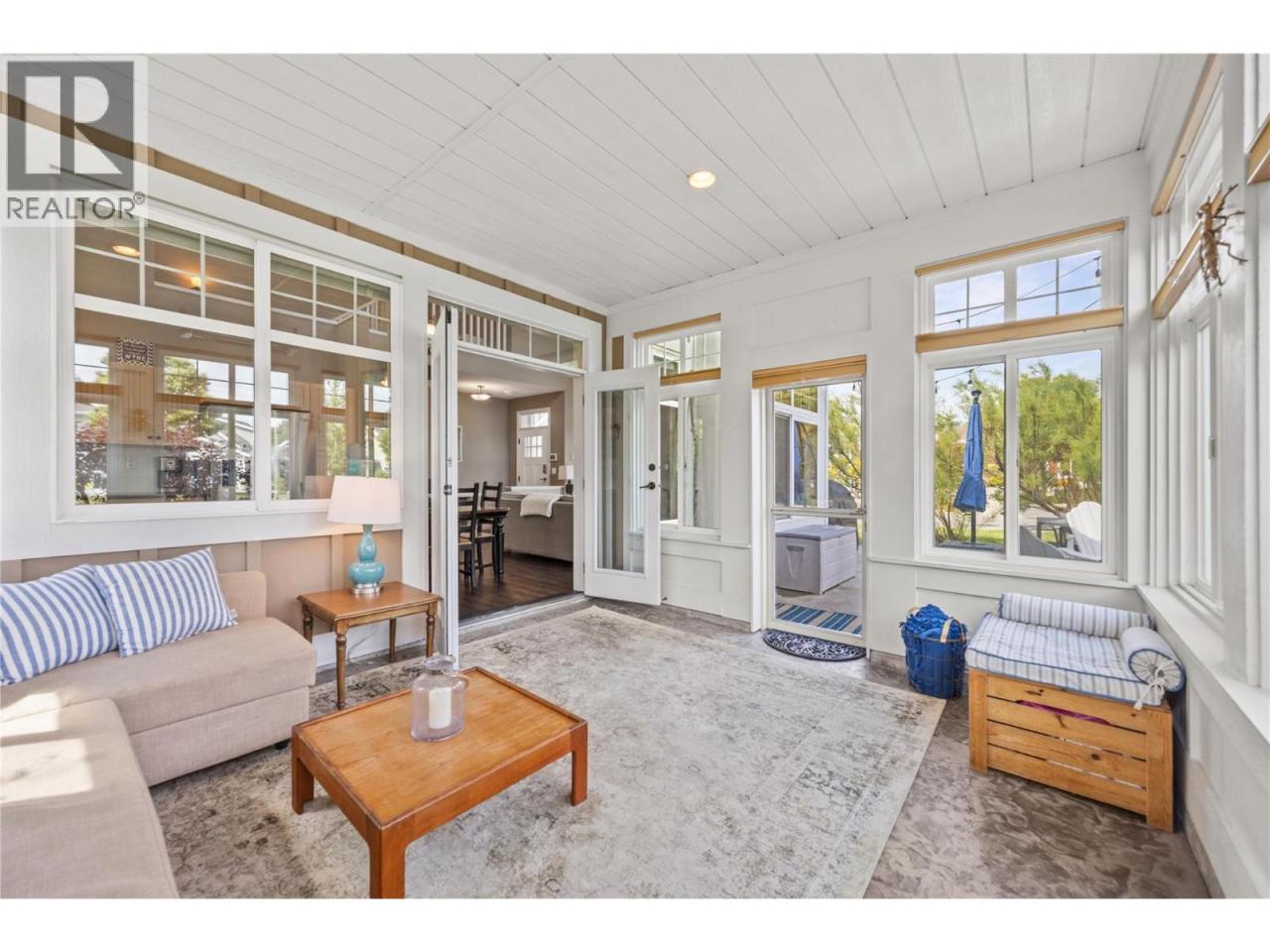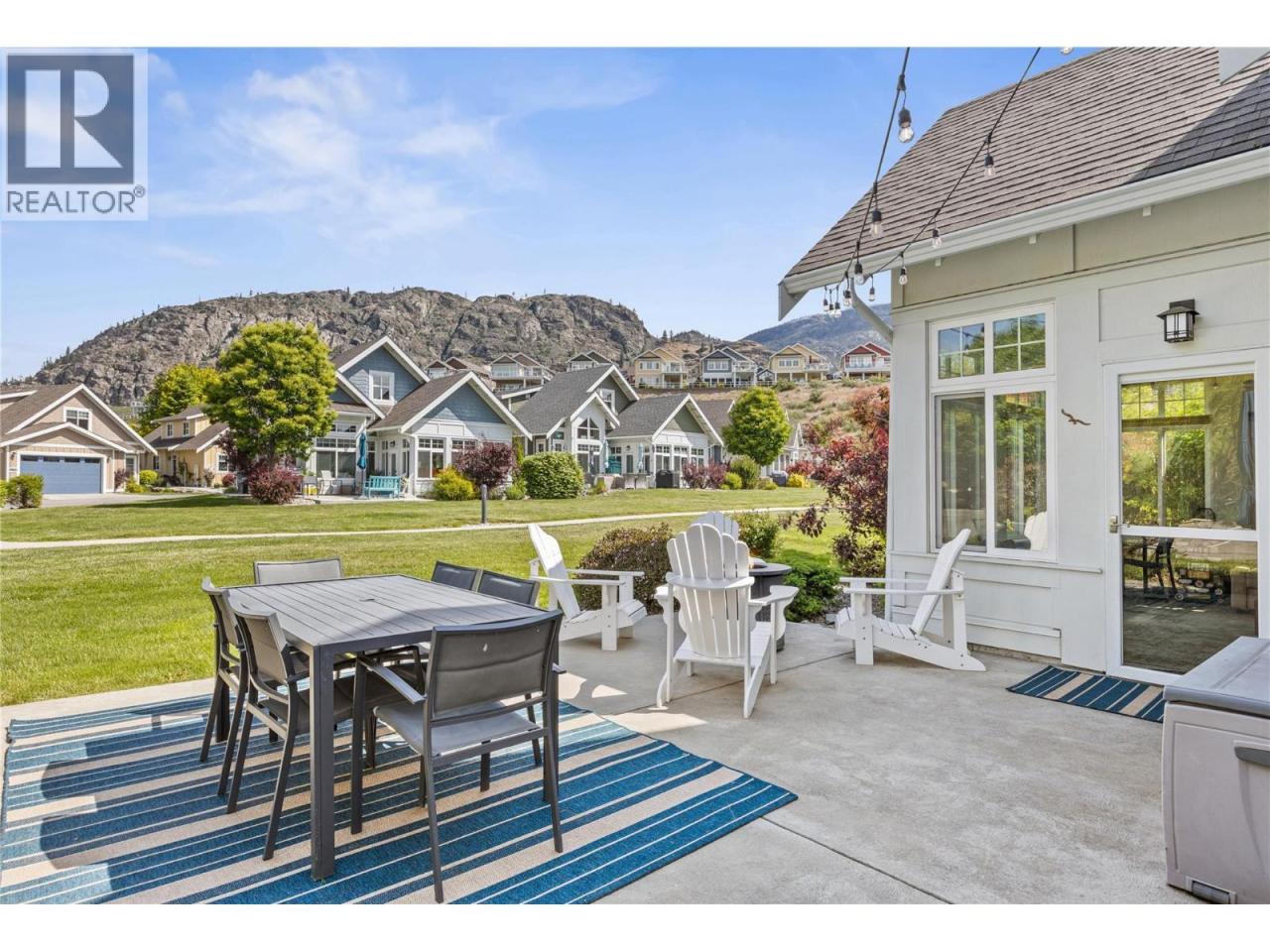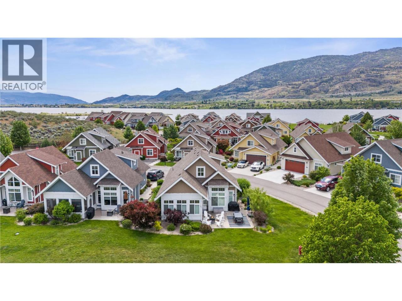 This former SHOW HOME is a SHOW STOPPER. Can't beat the location close to the Clubhouse ON A CORNER LOT, NORTH EAST FACING BACKYARD, and backs onto a generous green space perfect for those family LAWN GAMES The Central clubhouse nearby features a gym, 2 outdoor pools, hot tubs, pickleball court and meeting room. This 3 Bedroom, 3 bathroom home has the delightful charm of a true ""cottage"" with lofted ceiling with gorgeous tongue and groove paneling, open concept kitchen, dining, living room with electric fireplace feels bright and airy with upgraded appliances, and custom panty shelving. Master bedroom suites on both the main floor and upstairs, makes for an ideal space for guests or multifamily vacations. The 3 season porch complements indoor/outdoor living complete with heaters, glassed windows and window coverings, retractable screen door and an enlarged poured patio. THIS HOME IS FULLY FURNISHED.. so bring your suitcase and enjoy this summer! SHORT TERM RENTALS ALLOWED, (5 days or longer), or enjoy FULL OR PART TIME LIVING. The Cottages on Osoyoos Lake is a gated community and boasts 1,800 ft of waterfront, a marina, over 500 ft of sandy beach, dog park, playgrounds and scenic night-lit walking trails. NO GST, NO PTT, and NO EMPTY HOME TAX. (id:6769)Construction Info