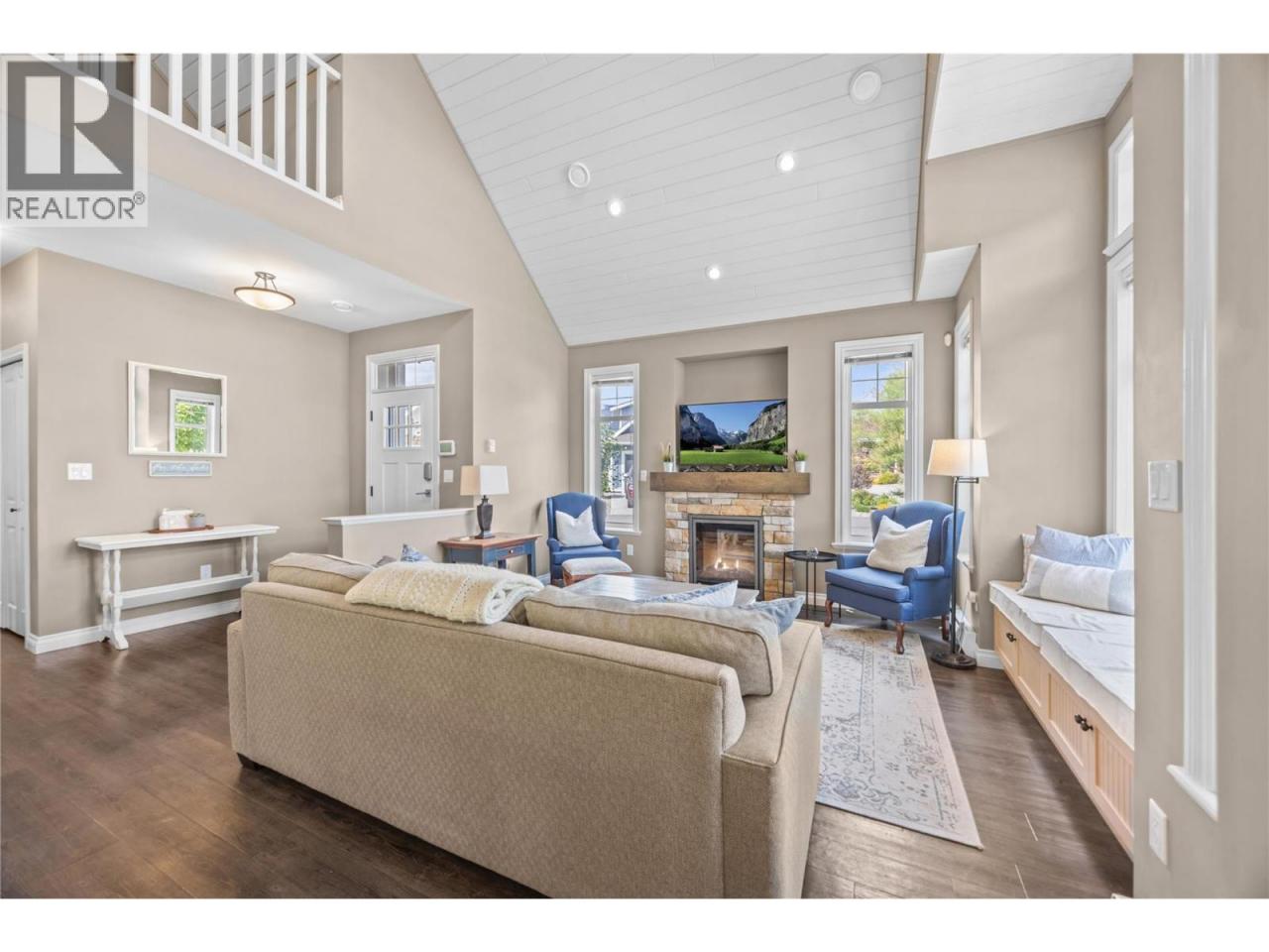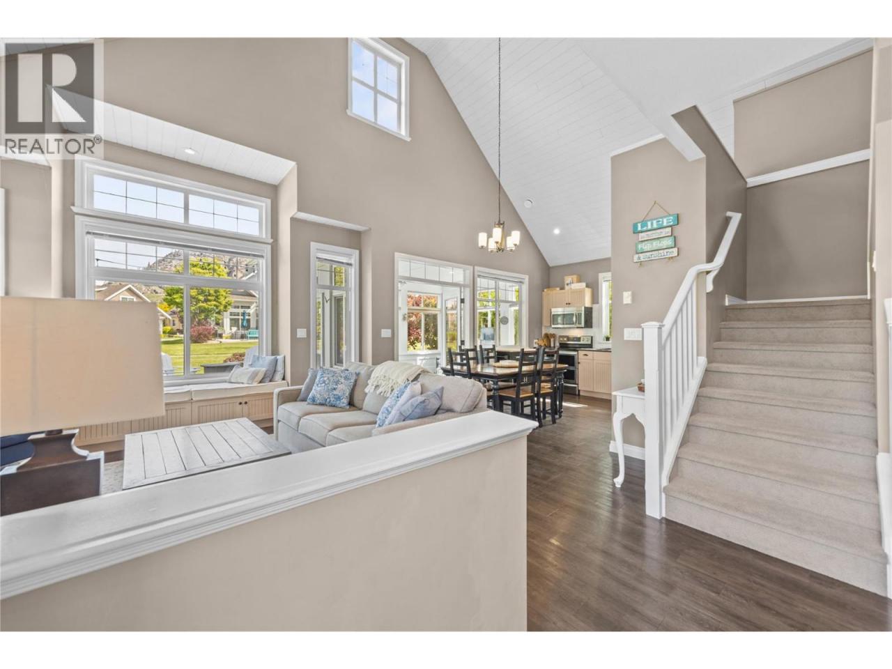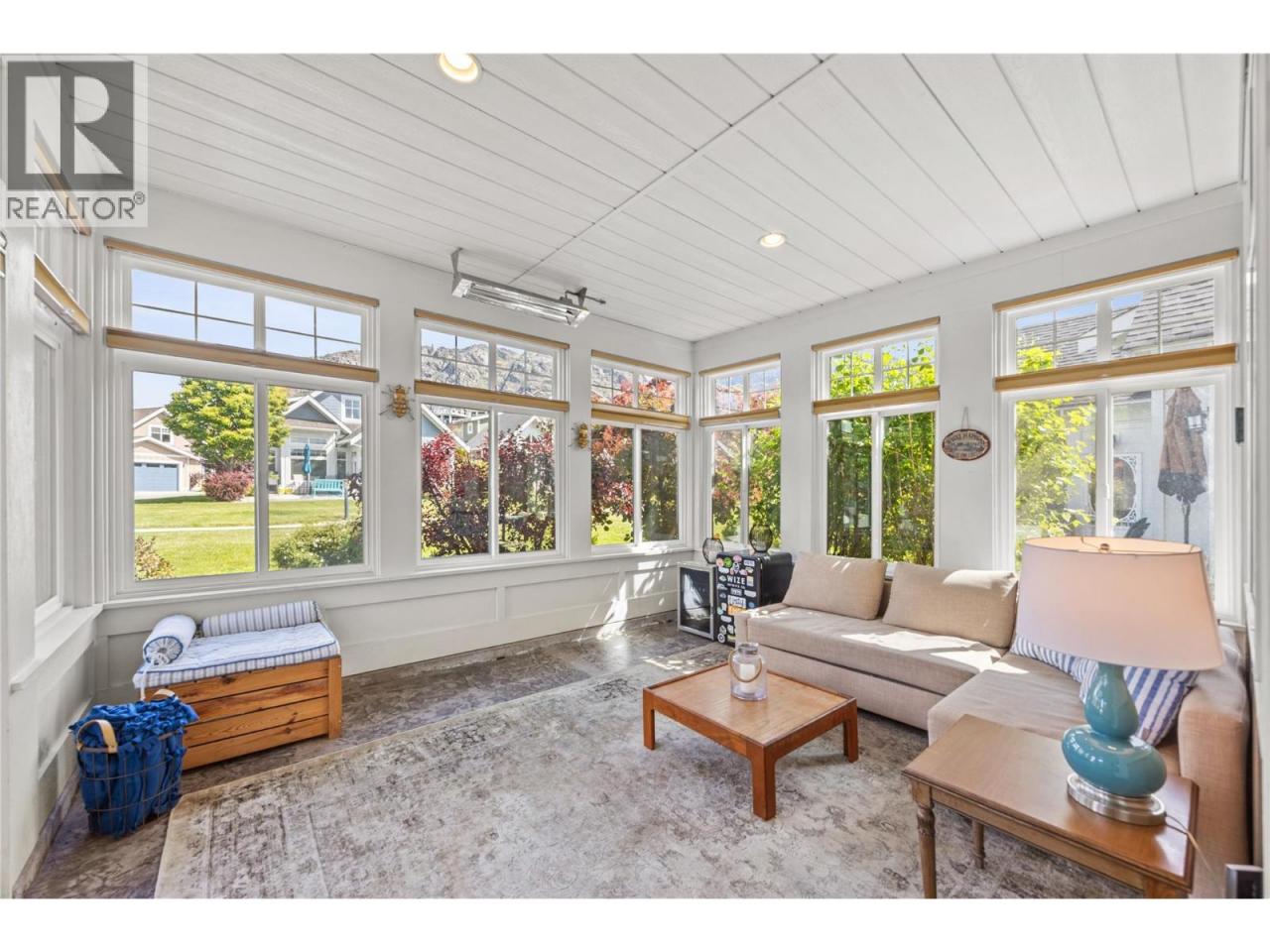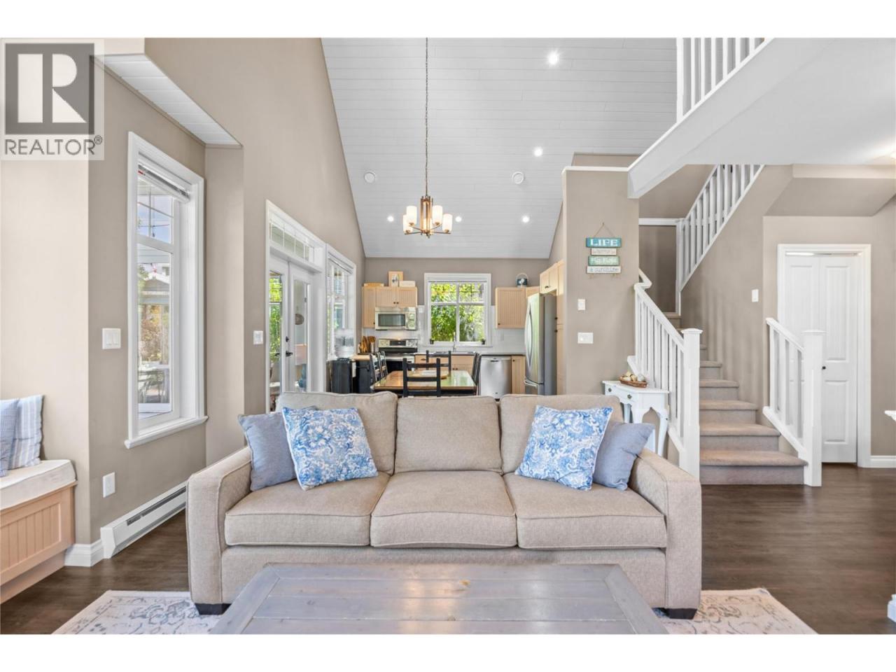 This former SHOW HOME is a SHOW STOPPER. Can't beat the location close to the Clubhouse ON A CORNER LOT, NORTH EAST FACING BACKYARD, and backs onto a generous green space perfect for those family LAWN GAMES The Central clubhouse nearby features a gym, 2 outdoor pools, hot tubs, pickleball court and meeting room. This 3 Bedroom, 3 bathroom home has the delightful charm of a true ""cottage"" with lofted ceiling with gorgeous tongue and groove paneling, open concept kitchen, dining, living room with electric fireplace feels bright and airy with upgraded appliances, and custom panty shelving. Master bedroom suites on both the main floor and upstairs, makes for an ideal space for guests or multifamily vacations. The 3 season porch complements indoor/outdoor living complete with heaters, glassed windows and window coverings, retractable screen door and an enlarged poured patio. THIS HOME IS FULLY FURNISHED.. so bring your suitcase and enjoy this summer! SHORT TERM RENTALS ALLOWED, (5 days or longer), or enjoy FULL OR PART TIME LIVING. The Cottages on Osoyoos Lake is a gated community and boasts 1,800 ft of waterfront, a marina, over 500 ft of sandy beach, dog park, playgrounds and scenic night-lit walking trails. NO GST, NO PTT, and NO EMPTY HOME TAX. (id:6769)Construction Info