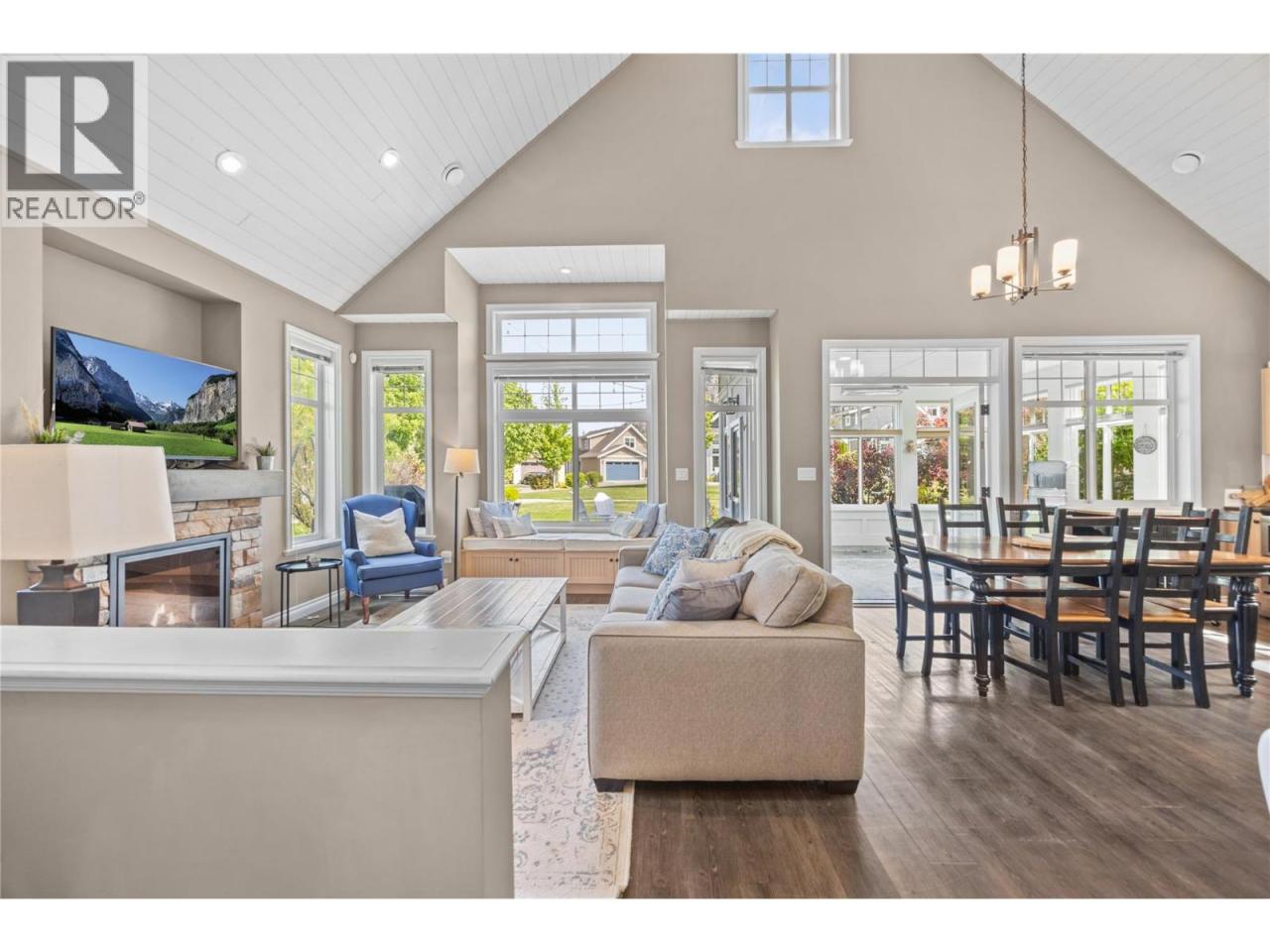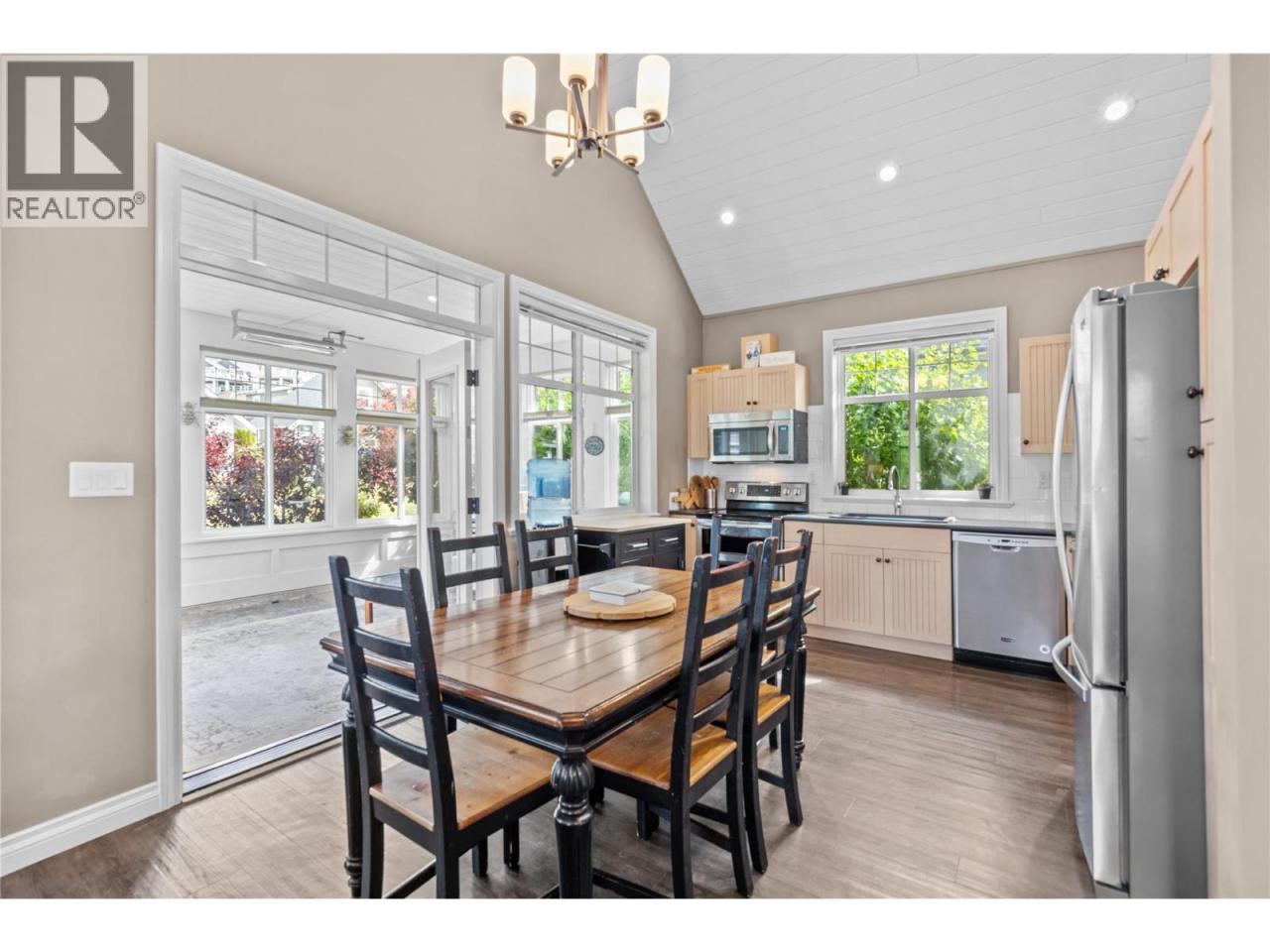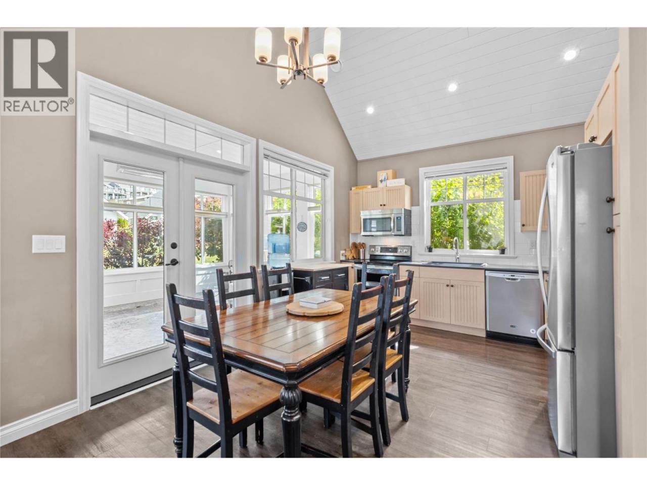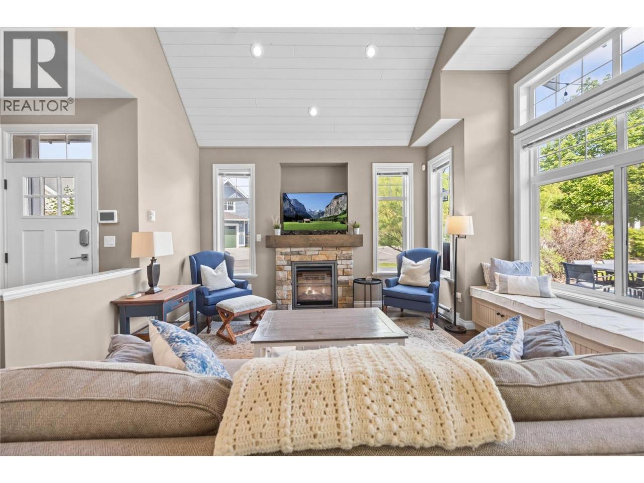 This former SHOW HOME is a SHOW STOPPER. Can't beat the location close to the Clubhouse ON A CORNER LOT, NORTH EAST FACING BACKYARD, and backs onto a generous green space perfect for those family LAWN GAMES The Central clubhouse nearby features a gym, 2 outdoor pools, hot tubs, pickleball court and meeting room. This 3 Bedroom, 3 bathroom home has the delightful charm of a true ""cottage"" with lofted ceiling with gorgeous tongue and groove paneling, open concept kitchen, dining, living room with electric fireplace feels bright and airy with upgraded appliances, and custom panty shelving. Master bedroom suites on both the main floor and upstairs, makes for an ideal space for guests or multifamily vacations. The 3 season porch complements indoor/outdoor living complete with heaters, glassed windows and window coverings, retractable screen door and an enlarged poured patio. THIS HOME IS FULLY FURNISHED.. so bring your suitcase and enjoy this summer! SHORT TERM RENTALS ALLOWED, (5 days or longer), or enjoy FULL OR PART TIME LIVING. The Cottages on Osoyoos Lake is a gated community and boasts 1,800 ft of waterfront, a marina, over 500 ft of sandy beach, dog park, playgrounds and scenic night-lit walking trails. NO GST, NO PTT, and NO EMPTY HOME TAX. (id:6769)Construction Info