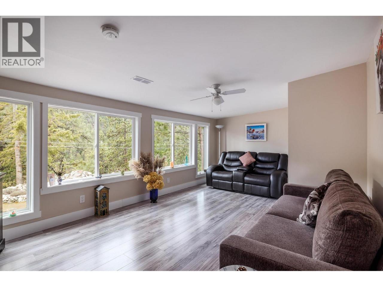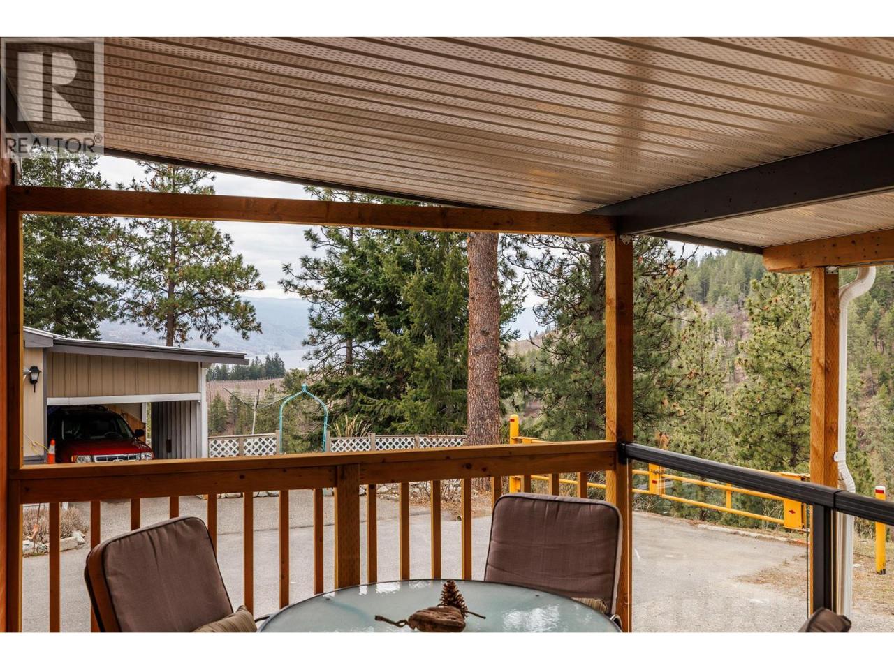 Private Peachland oasis with lake and forest views. Located on a large corner pad, this beautifully maintained home, with over $50K in updates since 2019, offers exceptional privacy and a bright, open layout with wraparound windows and a stunning addition that fills the space with natural light. The home features 2 bedrooms plus a den, providing flexible space for guests, hobbies, or a home office. Enjoy outdoor living with two patios, a private yard, and a convenient work shed. Numerous upgrades provide peace of mind, including furnace (2023), roof and eavestroughs (2019), windows (2019), siding and skirting (2019), bathroom renovation (2019), hot water tank (2019), flooring (2020), deck (2020), and phantom screen door (2020), washer (2021), reverse osmosis water filter (2020). Located in a quiet 55+ community allowing one dog (up to 12"") or one cat, with no rentals permitted. Just minutes to the waterfront, shops, and amenities in Peachland, and only 15 minutes to West Kelowna. (id:6769)Construction Info