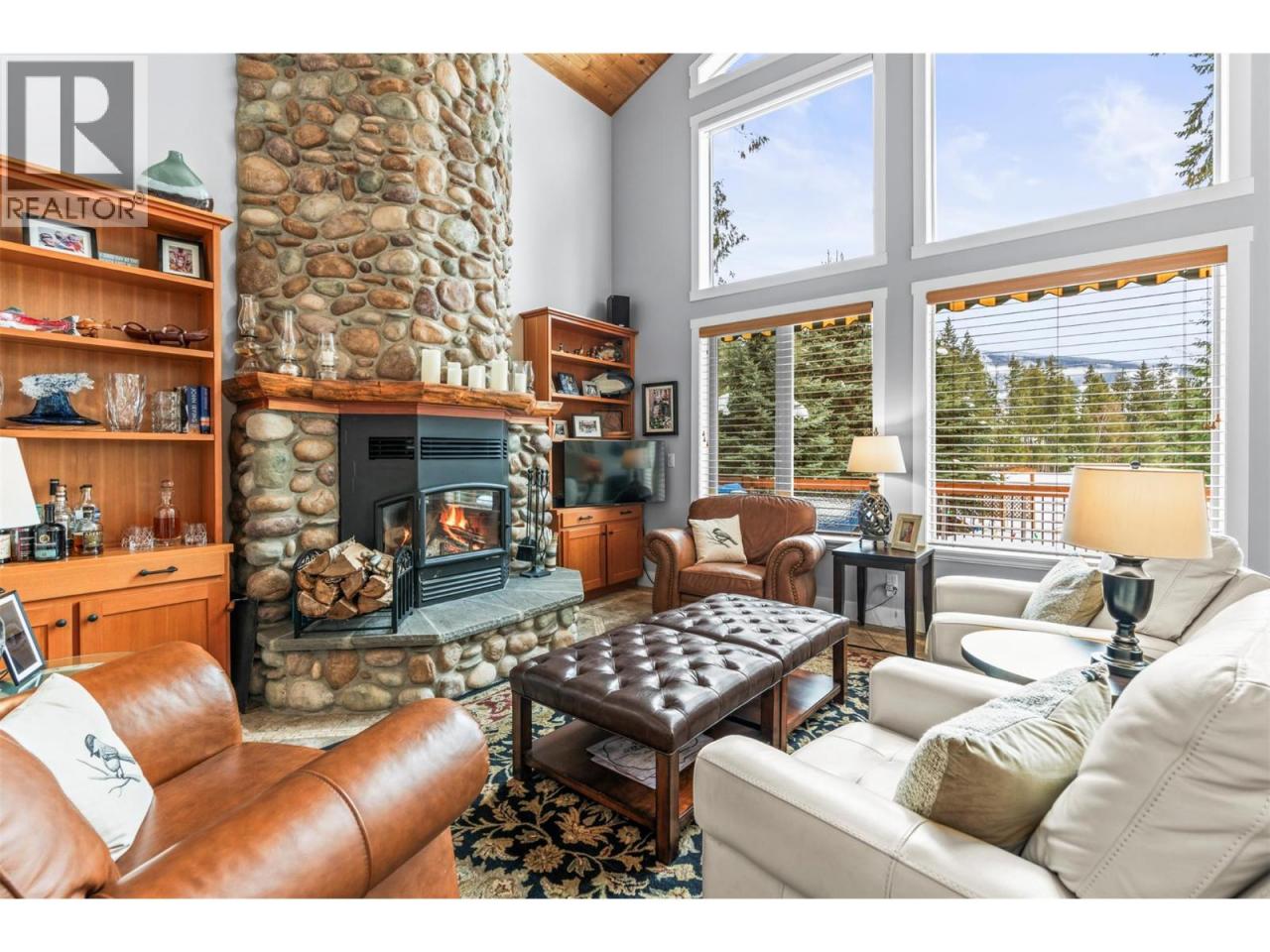 Set within the sought-after recreational community of Mabel Lake Golf Course Strata, this beautifully furnished two-story home sits on 0.39 acres backing onto the airstrip and offers an incredible open-concept design. Expansive floor-to-vaulted-ceiling windows flood the space with natural light and frame the stunning surrounding views. The gourmet kitchen features rich wood cabinetry, granite countertops, a prep sink, tiled backsplash, and stainless-steel appliances, perfect for both everyday living and entertaining. In the adjoining great room, a striking floor-to-ceiling stone fireplace provides warmth and inviting ambiance. Step outside to the wrap-around deck with a built-in BBQ, ideal for effortless outdoor dining and gatherings. Three bedrooms are thoughtfully divided between the main level and the loft, where the primary suite is privately situated. The spacious retreat includes a beautiful ensuite with granite counters, heated floors, and access to its own private deck. The additional loft area offers versatile space for a home office, lounge, or guest area. Heated flooring extends to both the ensuite and main bathroom for added comfort. Downstairs, a large unfinished basement awaits your personal vision. There’s plenty of room for all your recreational toys, plus the added bonus of a fully serviced RV hookup. With low strata fees and an unbeatable lifestyle location, this exceptional property is ready to be enjoyed. No Speculation Tax! (id:6769)Construction Info