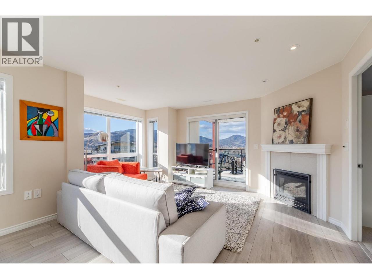 Welcome to Skaha Towers unit 1003-3346 located in Phase 2. This quality steel and concrete construction is a 5 min walk from Skaha Lake and nearby parks. Completed in 2021, owners of this modern development selected upgraded quartz counters and lighting options. This bright and sunny corner unit offers 1,165 sq. ft. of open-concept living with 2 bedrooms plus a den. Large windows to the west and north offer uninterrupted city and mountain views. The spacious kitchen features an island with seating for two and plenty of cupboard space, flowing into the light-filled living and dining area with a natural gas fireplace and patio doors leading to the large deck. The well-appointed primary bedroom includes a walk-in closet and a private ensuite with double sinks and a large shower. A generous second bedroom and a versatile den is perfect for a home office to complete the layout. This unit includes a secure covered parking stall, and same level storage locker. Enjoy excellent building amenities including two elevators, a bike storage room, and a social room. Enjoy modern condo living in a prime location close to the lake, parks, and local amenities. (id:6769)Construction Info