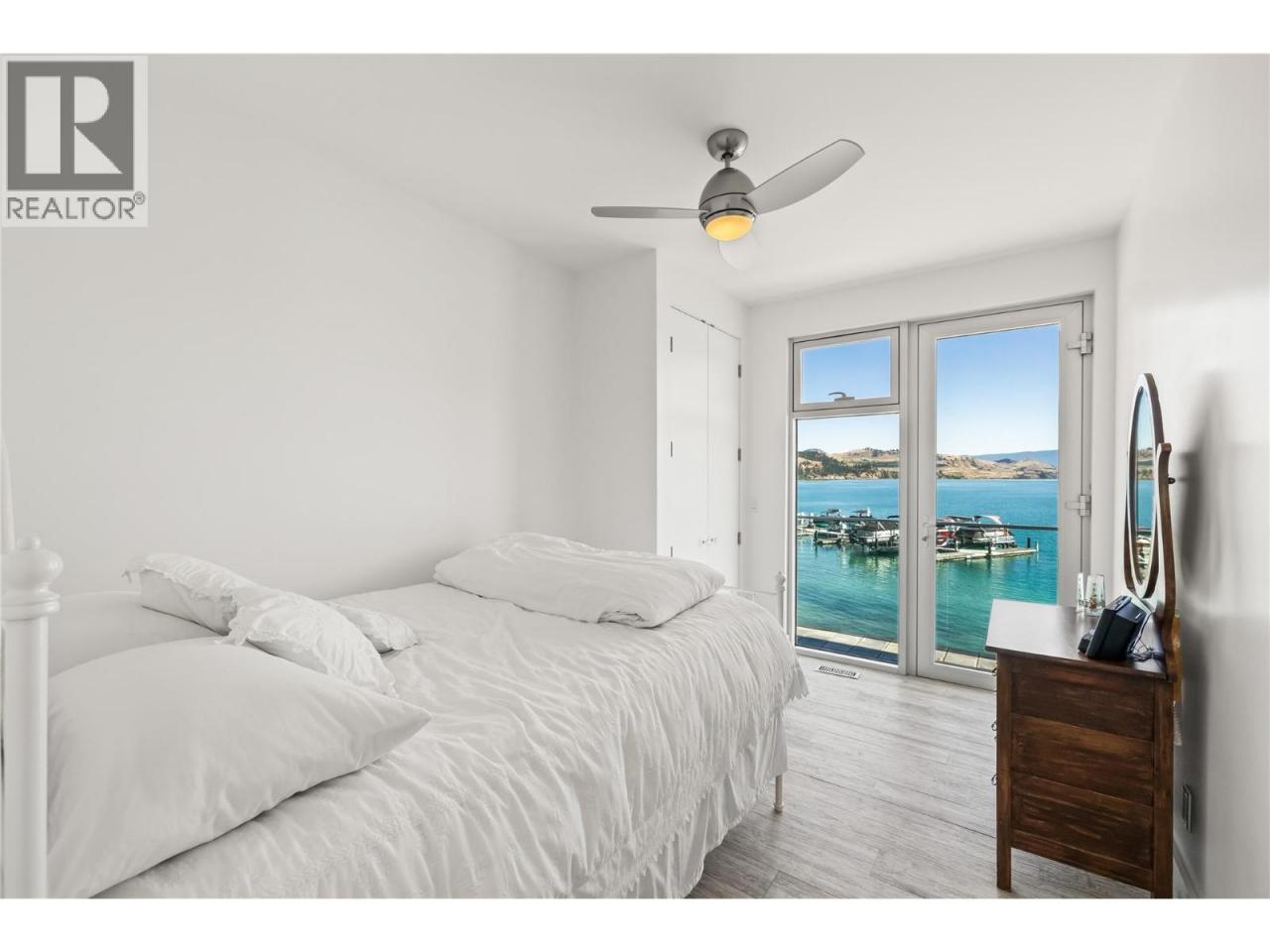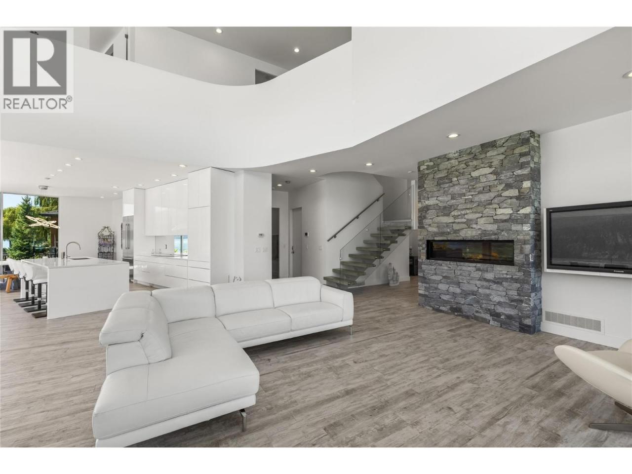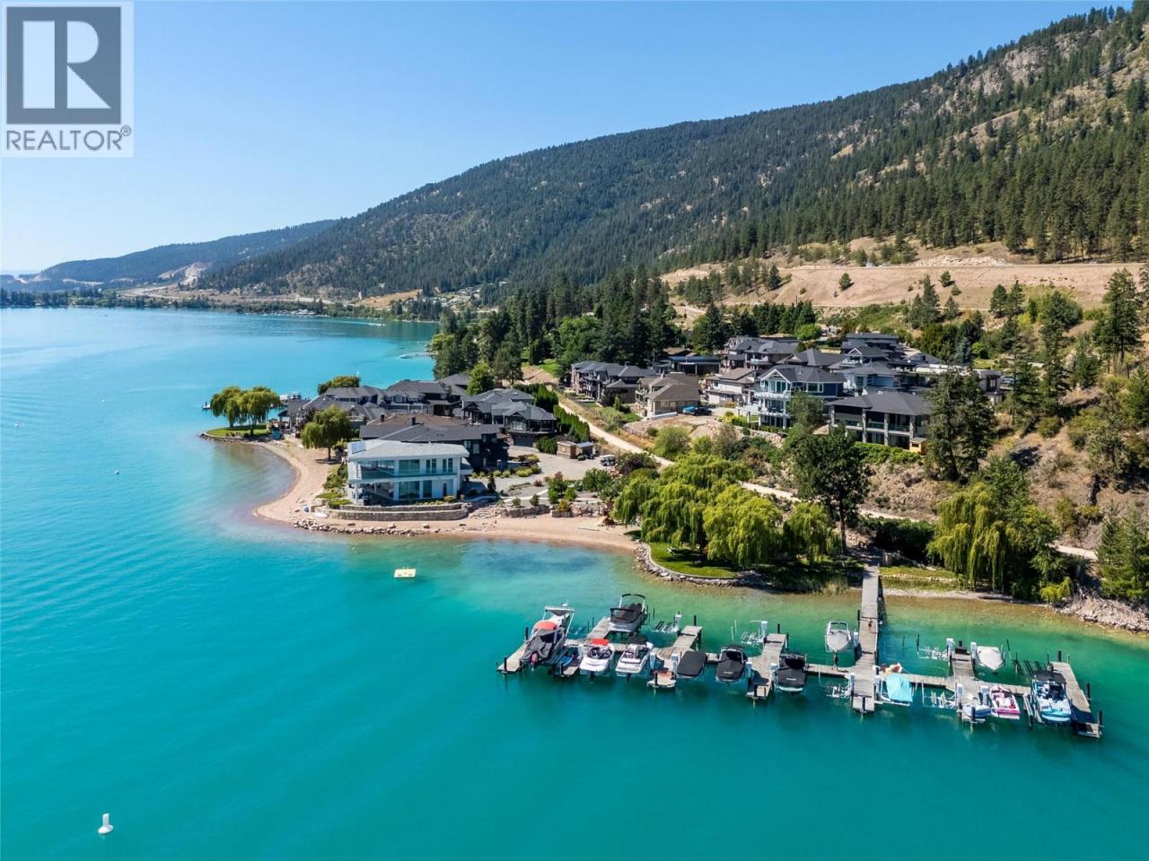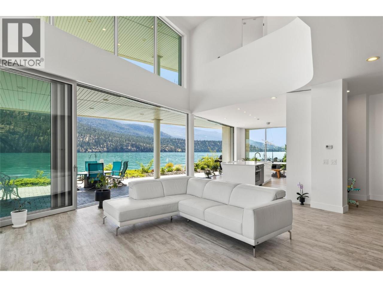 Welcome to 18541 Crystal Waters Rd—an exceptional opportunity in this gated, bare land strata community on Kalamalka Lake. This flat corner lot is the largest in the development, with 130' of lakefront, direct beach access, and a boat lift—offering the ultimate lakeside lifestyle. The Okanagan Rail Trail is in your backyard, providing over 50 km of scenic trails for cycling, walking, and exploring the valley. Inside, massive 10' tall Lift and Slide doors span the front wall and fold away, blending indoor and outdoor living. The spacious kitchen features a large island, mirrored backsplash reflecting lake hues, a walk-in pantry, and premium finishes. Soaring 19' ceilings define the open living area with a gas fireplace, and ceramic tile floors make maintenance easy. A beach bathroom with outside access simplifies water rinsing after lake days. Floating stairs with a glass railing lead upstairs to the primary suite with Nano doors opening to a private deck overlooking the lake. The ensuite includes a standalone tub, frameless shower, dual sinks, and walk-in closet. Two more bedrooms connect to a wraparound deck with lake views. Additional features include solar panels, hot water on demand, built-in vacuum, oversized double garage (or 3 car tandem) with mezzanine storage, 240V EV charger, crawl space, fruit trees (2 apple/plum/nectarine/cherry), and a raised garden bed. The strata fee is $600/month, and two pets of any size are permitted. (id:6769)Construction Info