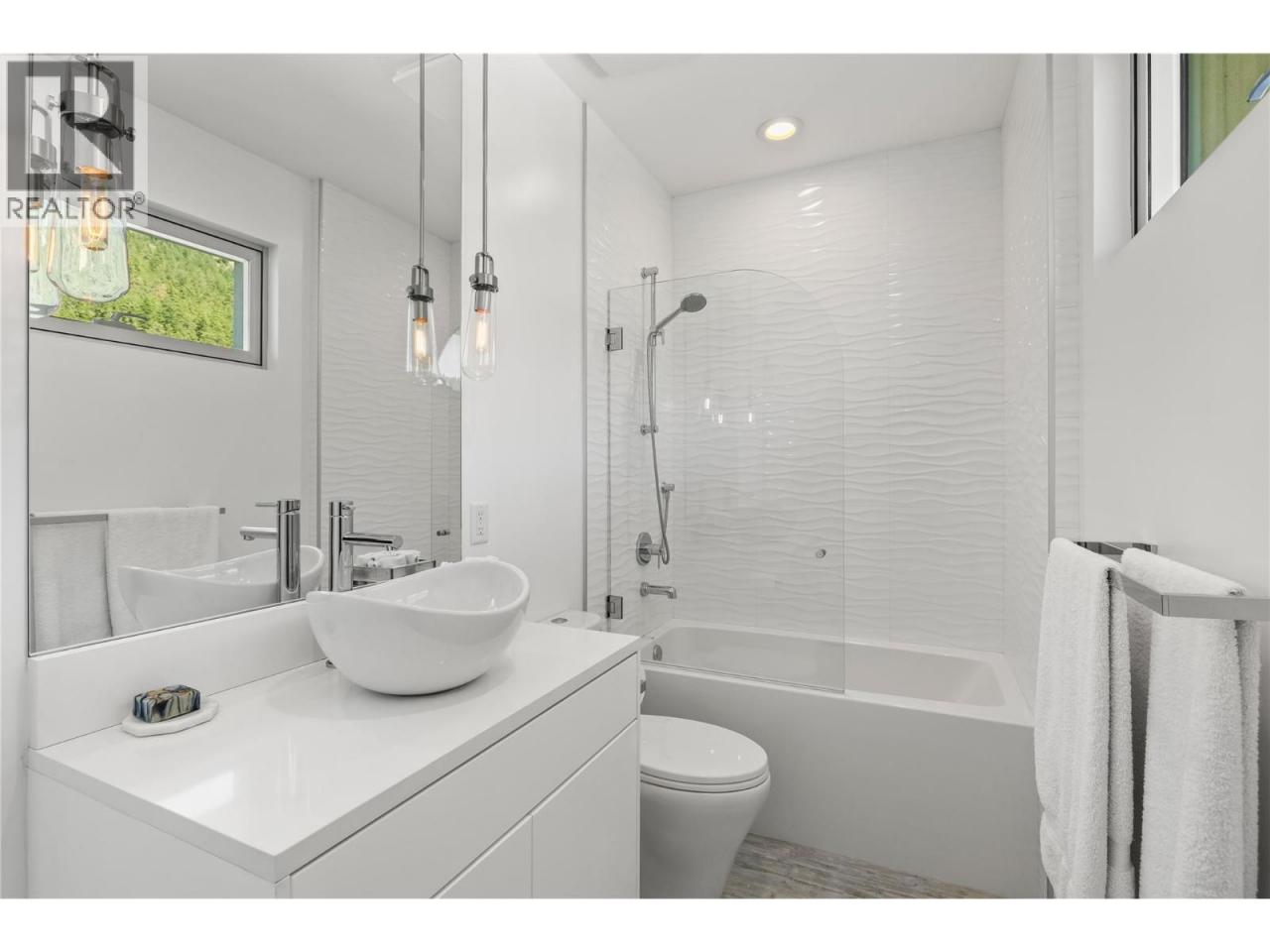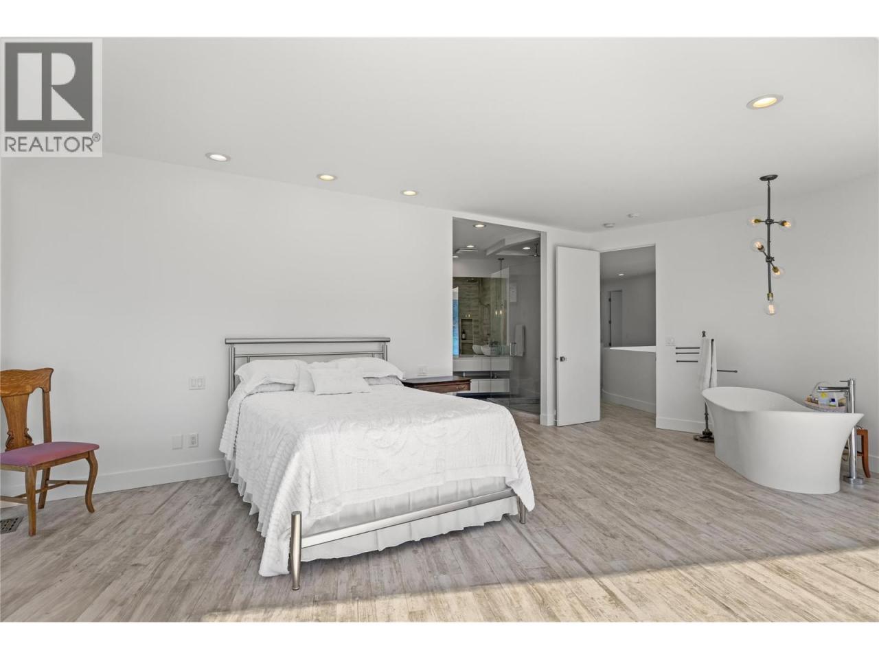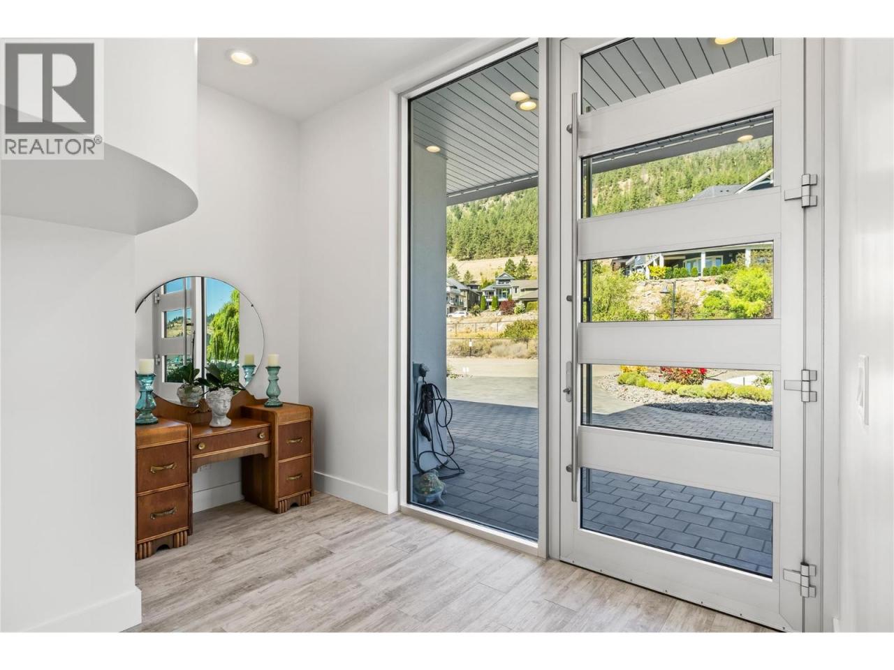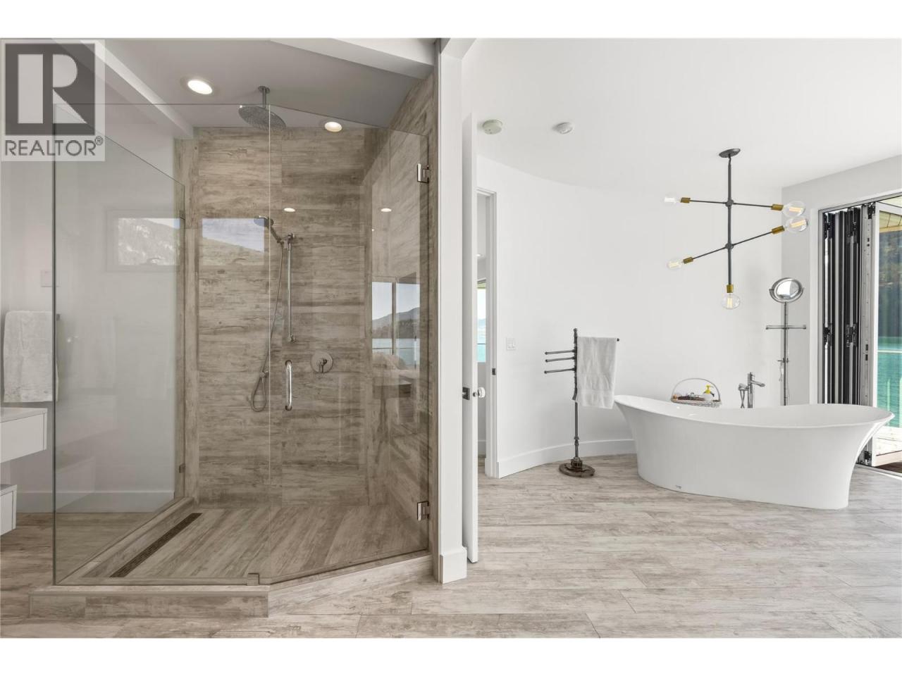 Welcome to 18541 Crystal Waters Rd—an exceptional opportunity in this gated, bare land strata community on Kalamalka Lake. This flat corner lot is the largest in the development, with 130' of lakefront, direct beach access, and a boat lift—offering the ultimate lakeside lifestyle. The Okanagan Rail Trail is in your backyard, providing over 50 km of scenic trails for cycling, walking, and exploring the valley. Inside, massive 10' tall Lift and Slide doors span the front wall and fold away, blending indoor and outdoor living. The spacious kitchen features a large island, mirrored backsplash reflecting lake hues, a walk-in pantry, and premium finishes. Soaring 19' ceilings define the open living area with a gas fireplace, and ceramic tile floors make maintenance easy. A beach bathroom with outside access simplifies water rinsing after lake days. Floating stairs with a glass railing lead upstairs to the primary suite with Nano doors opening to a private deck overlooking the lake. The ensuite includes a standalone tub, frameless shower, dual sinks, and walk-in closet. Two more bedrooms connect to a wraparound deck with lake views. Additional features include solar panels, hot water on demand, built-in vacuum, oversized double garage (or 3 car tandem) with mezzanine storage, 240V EV charger, crawl space, fruit trees (2 apple/plum/nectarine/cherry), and a raised garden bed. The strata fee is $600/month, and two pets of any size are permitted. (id:6769)Construction Info