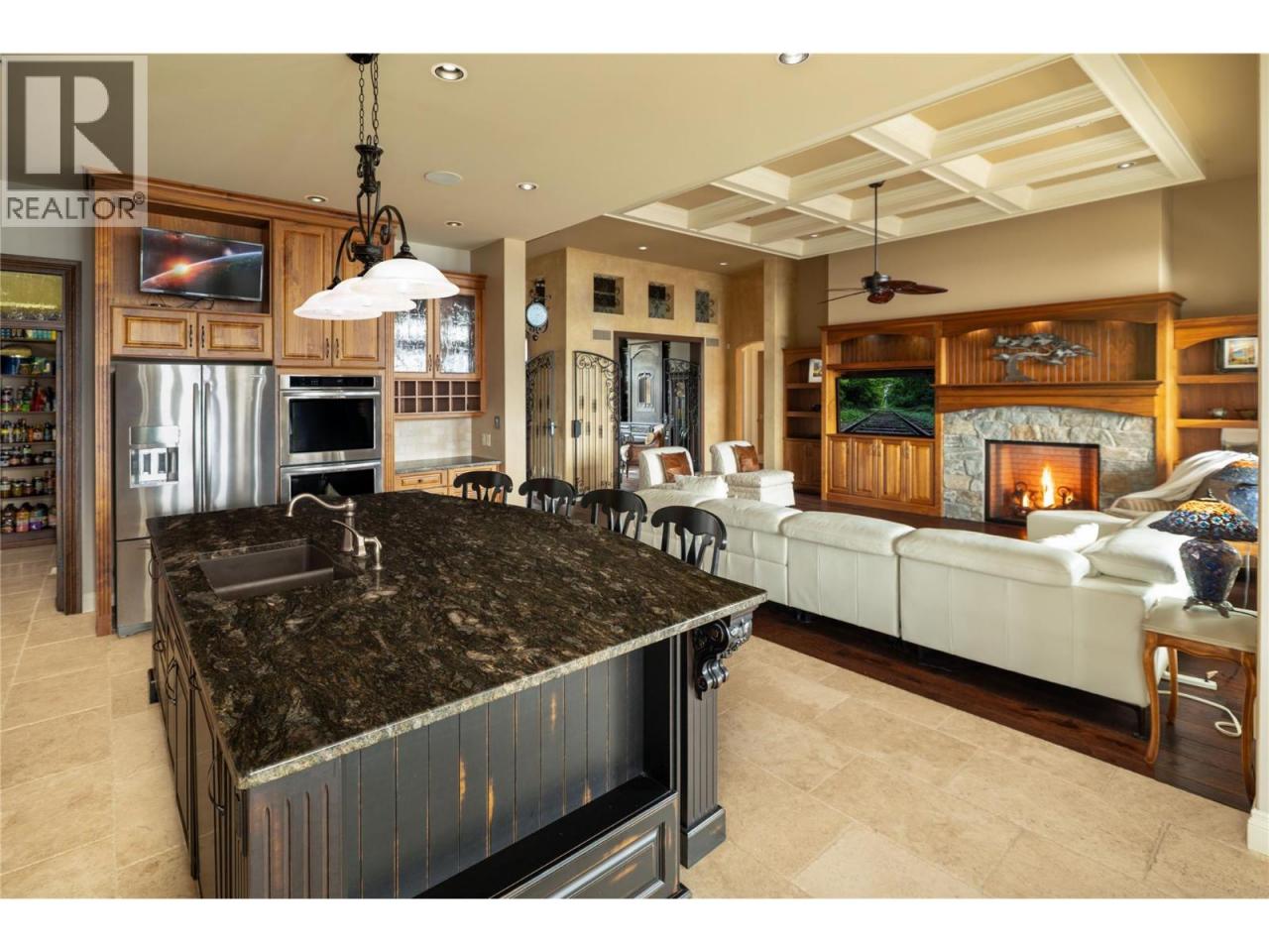 Located in the prestigious Upper Mission, this one-of-a-kind executive residence offers over 5,500 sq.ft. of refined living space with expansive lake, valley & city views. Designed for both everyday comfort & exceptional entertaining, this luxury home showcases timeless materials, quality craftsmanship & thoughtfully designed spaces throughout, offering the convenience of main-level living. The living area features coffered ceilings, wide plank oak flooring, stone fireplace & expansive windows framing the surrounding views. A statement fireplace anchors the room while the kitchen is appointed with custom cabinetry by Westwood, a large gathering island, premium appliances & Thermador gas range. Architectural details continue throughout with five fireplaces adding warmth & character across multiple living spaces. A dedicated scotch room provides an impressive setting for collectors & entertaining. The primary suite offers lake views, a spacious walk-in closet & a beautifully finished ensuite with soaker tub, dual vanities & walk-in shower. The walk-out lower level is designed for recreation & relaxation with a spacious family room, recreation area with wet bar, media room, fitness room & three king sized bedrooms. A convenient pool bathroom provides direct access to the outdoor entertaining areas. Outdoors, the property captures the Okanagan lifestyle with a stunning tile saltwater pool, expansive patio spaces & beautifully landscaped surroundings. The covered outdoor lounge features a stone fireplace, electronic TV & integrated hot tub area—perfect for year-round enjoyment. The triple garage includes epoxy flooring, an oversized RV-height garage door & ample space for vehicles, toys or workshop needs. Set among luxury homes in Kelowna’s sought-after Upper Mission, this exceptional property offers privacy, craftsmanship & a lifestyle designed to be enjoyed. (id:6769)Construction Info