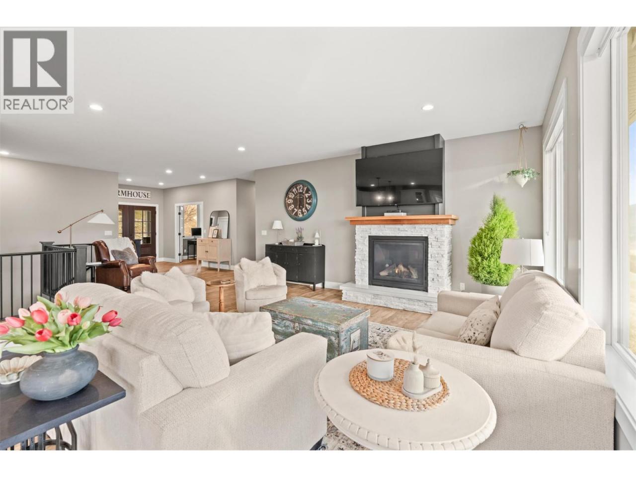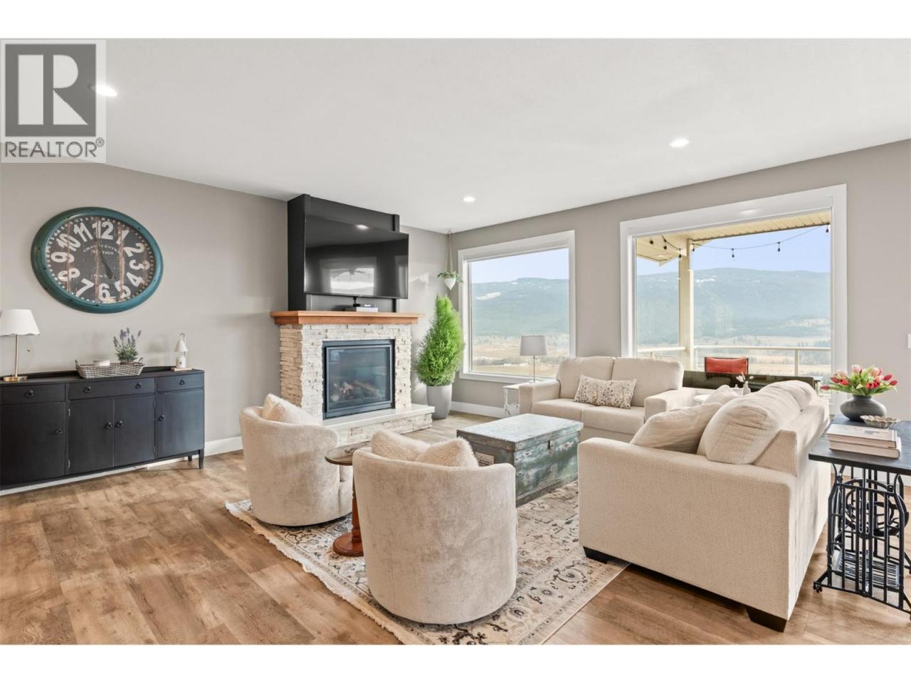 Stunning Coldstream Estate with Panoramic Views & Prime Location Situated on 5 pristine acres, this remarkable estate offers sweeping views of Kalamalka Lake and Park. Step inside to a bright, open-concept layout where the family room, dining area, and kitchen flow effortlessly—ideal for everyday living and entertaining. The living room is a showstopper, with floor-to-ceiling windows that frame the lake and park, flooding the space with natural light. The chef’s kitchen boasts a large island, quartz countertops, newer appliances, and a stylish backsplash. The primary bedroom is a luxurious retreat with stunning views, a spacious walk-in closet, and a spa-like 5-piece ensuite. Enjoy movie nights in the theatre room or stay fit in your private home gym. Outdoor living includes covered patios on both levels, a hot tub, fire pit, and space to entertain or unwind. The level-entry 2+1 bedroom legal suite offers separate living with its own furnace, hot water tank, AC, and utility meters—ideal for extended family or rental income. A 24’ x 32’ shop with 14-foot ceilings adds function and flexibility, and the freshly seal-coated driveway enhances both curb appeal and durability. Just minutes from Kalamalka Park, with scenic trails and forested paths for hiking and running. The Grey Canal Trail borders the property, offering direct access to nature. With stunning surroundings and modern comforts, this isn’t just a home—it’s a lifestyle. (id:6769)Construction Info