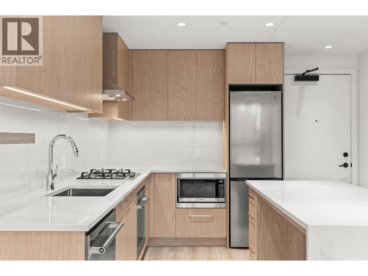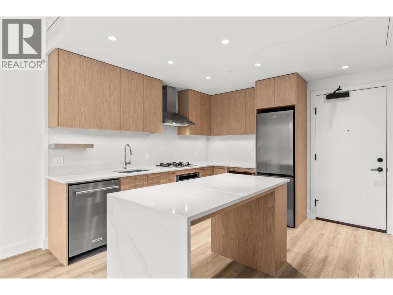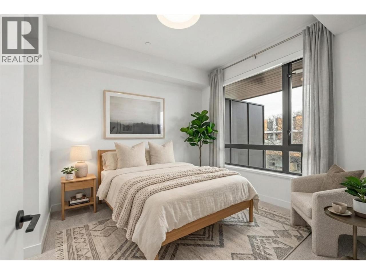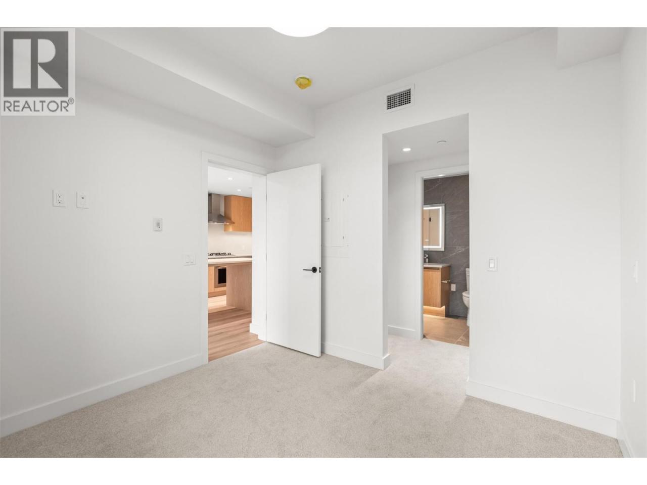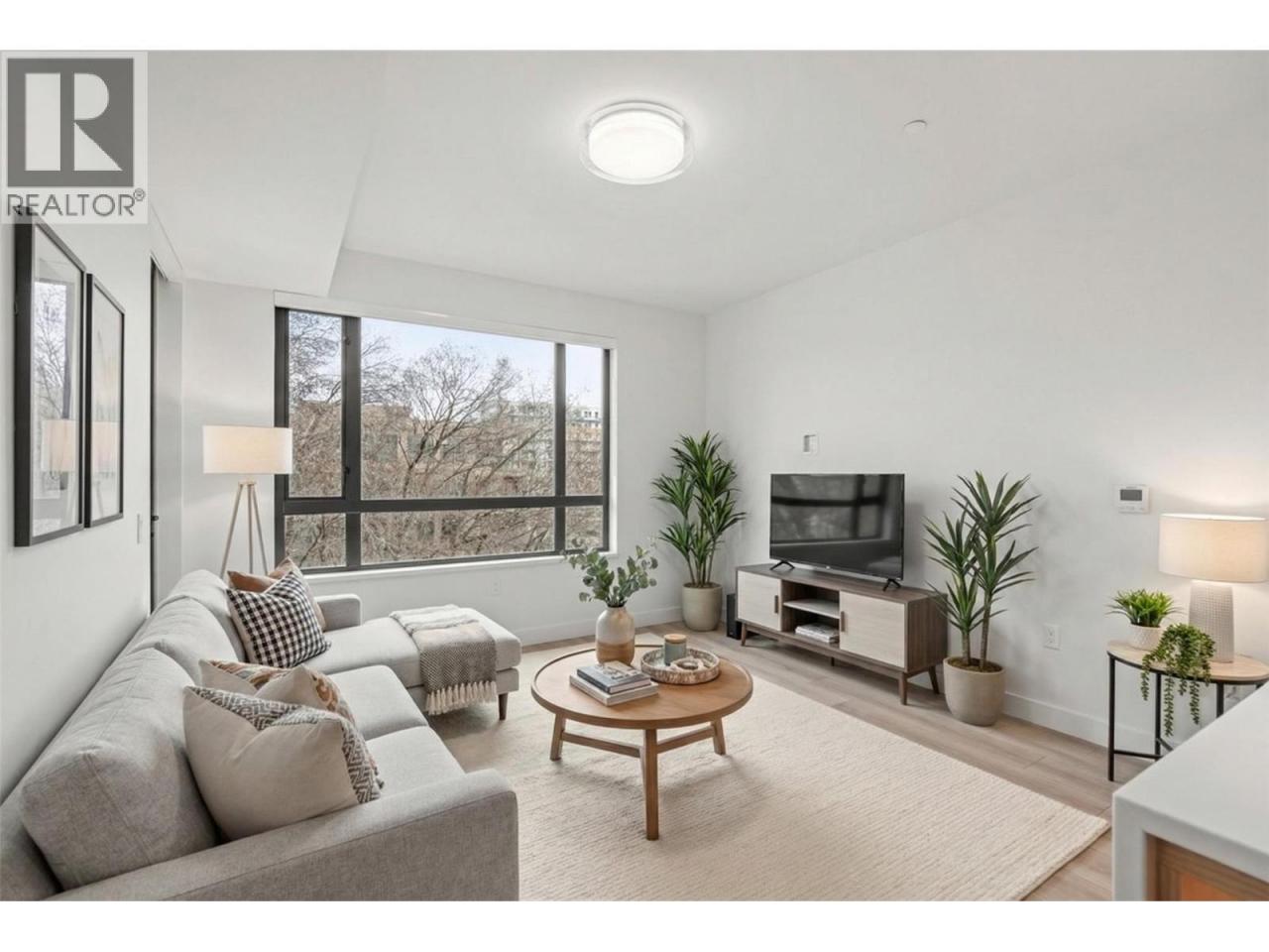 Presenting ALMA, built by Mission Group. This luminous, 3rd floor east-facing 1-bed, 1-bath residence welcomes gorgeous morning sun, offering 540 sqft of interior space plus a 100 sqft terrace, effortlessly blending purposeful design with upscale finishes in the heart of the Lower Mission. The impressive kitchen showcases streamlined flat-panel wood-grain cabinetry, a bold quartz waterfall dining island, and premium stainless-steel appliances. The open-concept plan is ideal for daily living and seamless entertaining, elevated by oversized windows that bathe the home in natural light, durable laminate flooring throughout the main living areas, and soft woven broadloom carpeting in the bedroom. The primary suite features a walk-through closet, while the ensuite is appointed with large-format tile, a rainfall shower, custom-tiled niche, and gentle ambient lighting that creates a spa-like retreat. Added features include roller shades on every window, individually controlled heating and cooling, and one secure underground parking stall. Residents enjoy access to amenities including an 8,000 sqft lakeview terrace with firepits, BBQs, and community gardens, along with a fully equipped fitness centre, dog wash, and bike maintenance station. With a walk score of 93, you’re moments from transit, KGH, the shops and dining of vibrant Pandosy Village, and the shoreline of Okanagan Lake. Sqft and room sizes are approximate and may vary. This newly constructed home is move-in ready. (id:6769)Construction Info