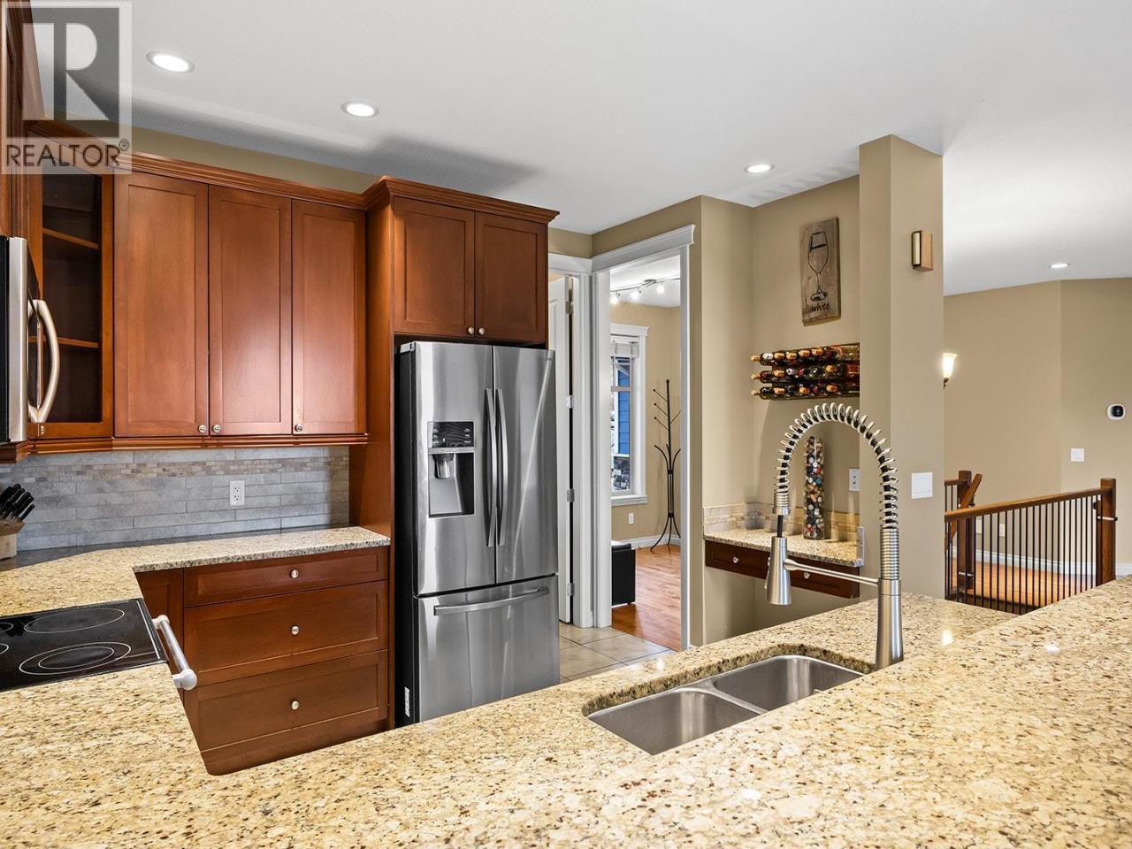 FAST POSSESSION. Located at Quail Ridge's most prestigious street, this walk out rancher presents a unique combination of curb appeal, functionality and practicality. Featuring 4 bedrooms (could be 5) and 3 bathrooms this is a rare home with 2 separate garages each fronting a different street. Both garages have 10ft high doors and 12 ft' ceilings and both are heated in case you perhaps wanted to add a golf simulator or a games room? On top of that there's an additional 7 outdoor parking spaces and RV/boat parking. Upstairs, your will find 2 bdrms and 2 bths, an open concept kitchen and great room with maple cupboards and granite counter tops adjacent to an expansive concrete and covered deck perfect for entertaining and soaking in valley and mountain views. Downstairs you will find a newly renovated non conforming 2 or 3 bedroom in law suite with separate entrance that could come with it's own garage and extra parking. The landscaping on this property is dialled in as the front yard is zero maintenance with artificial turf, while the back yard is a little oasis with fire pit, and a gazebo covered hot tub. And as if this listing wasn't 'hot' enough, a brand new top of the line furnace was installed in 2025; the roof is concrete shingles with a 35 years warranty still remaining; and much of the home has been recently painted. Quail Ridge offers golf courses, restaurants, shopping, hiking trails and is adjacent to the airport and UBC-O. Call your agent of choice today and book your viewing..... (id:6769)Construction Info