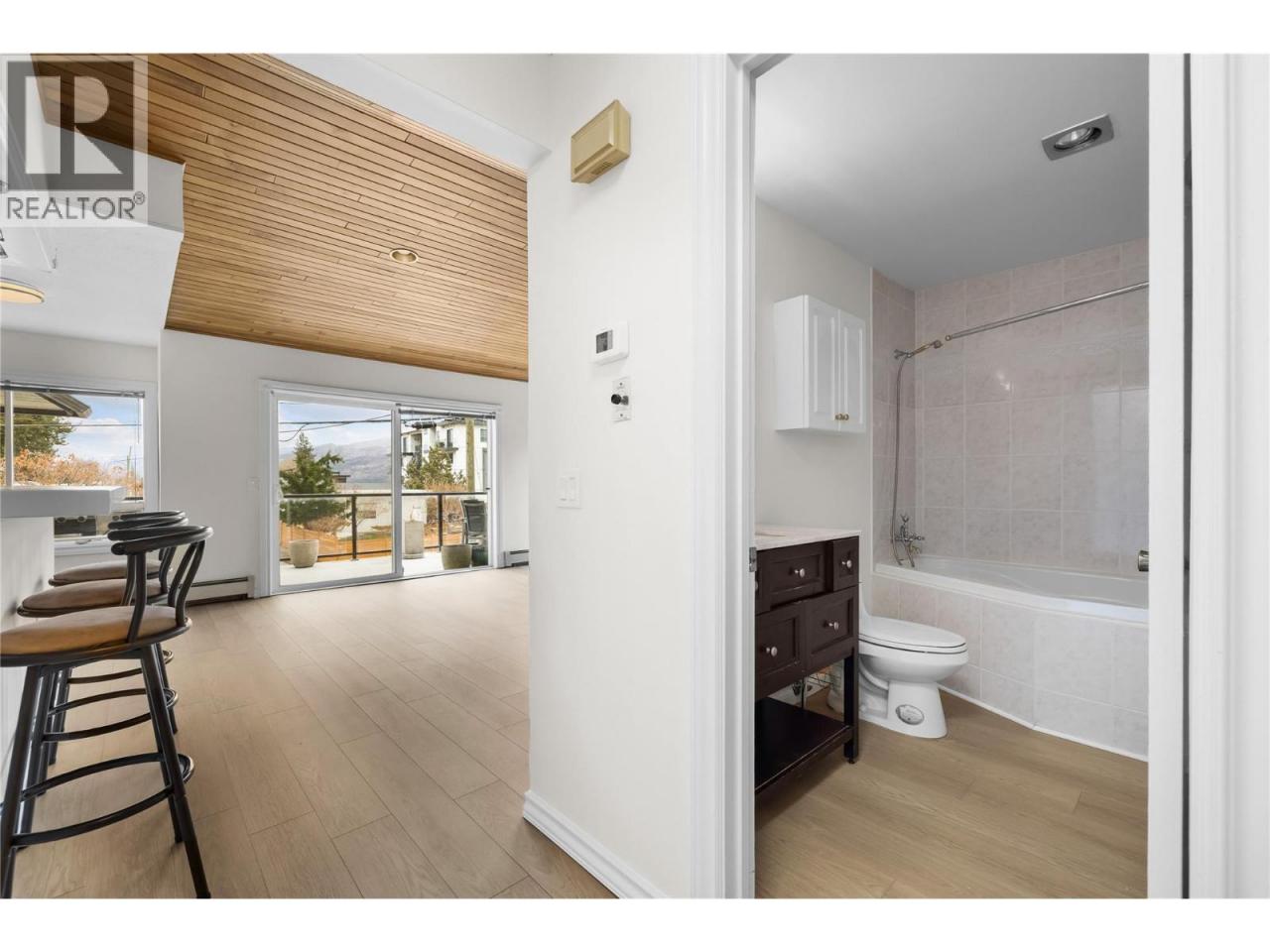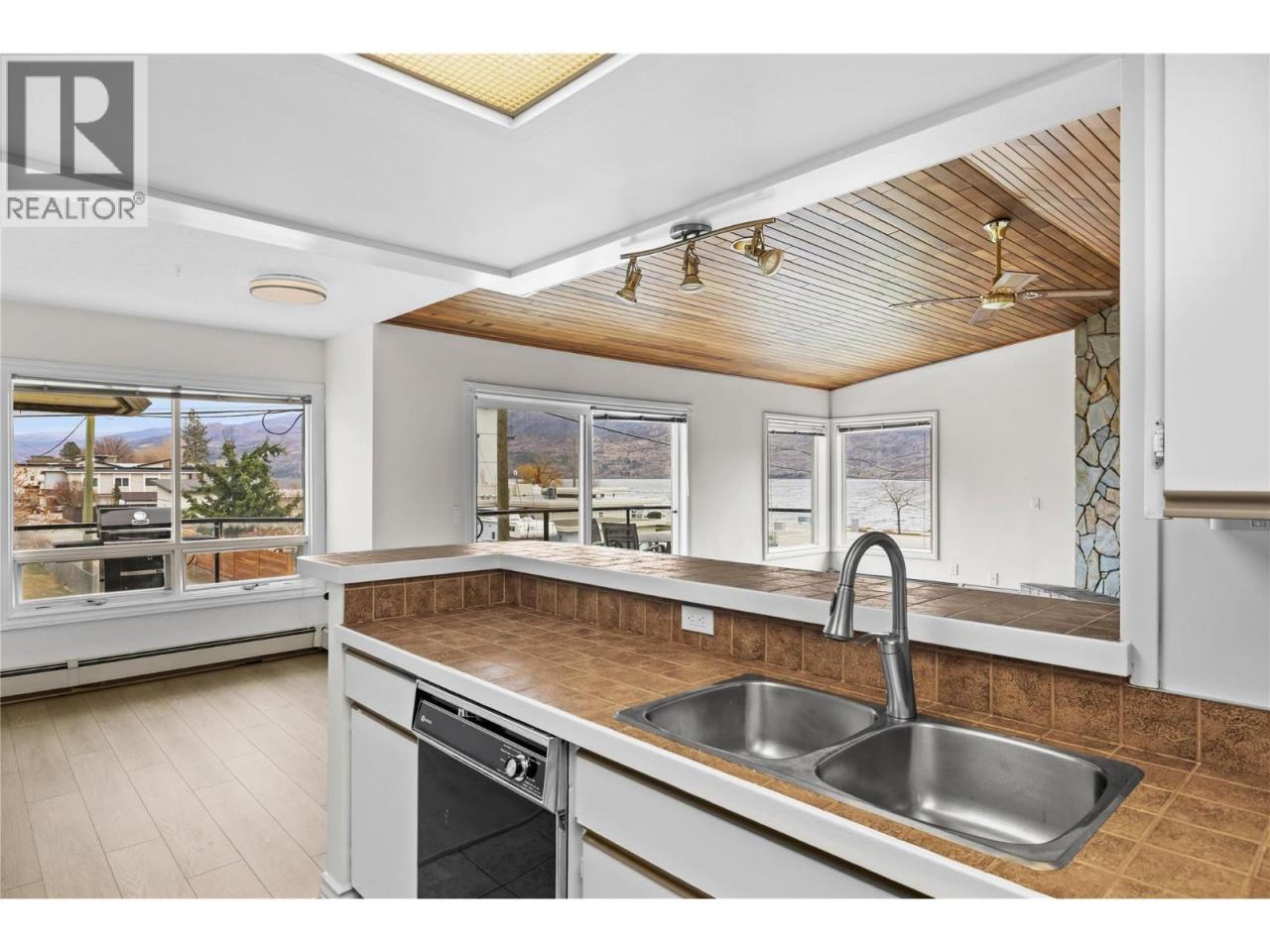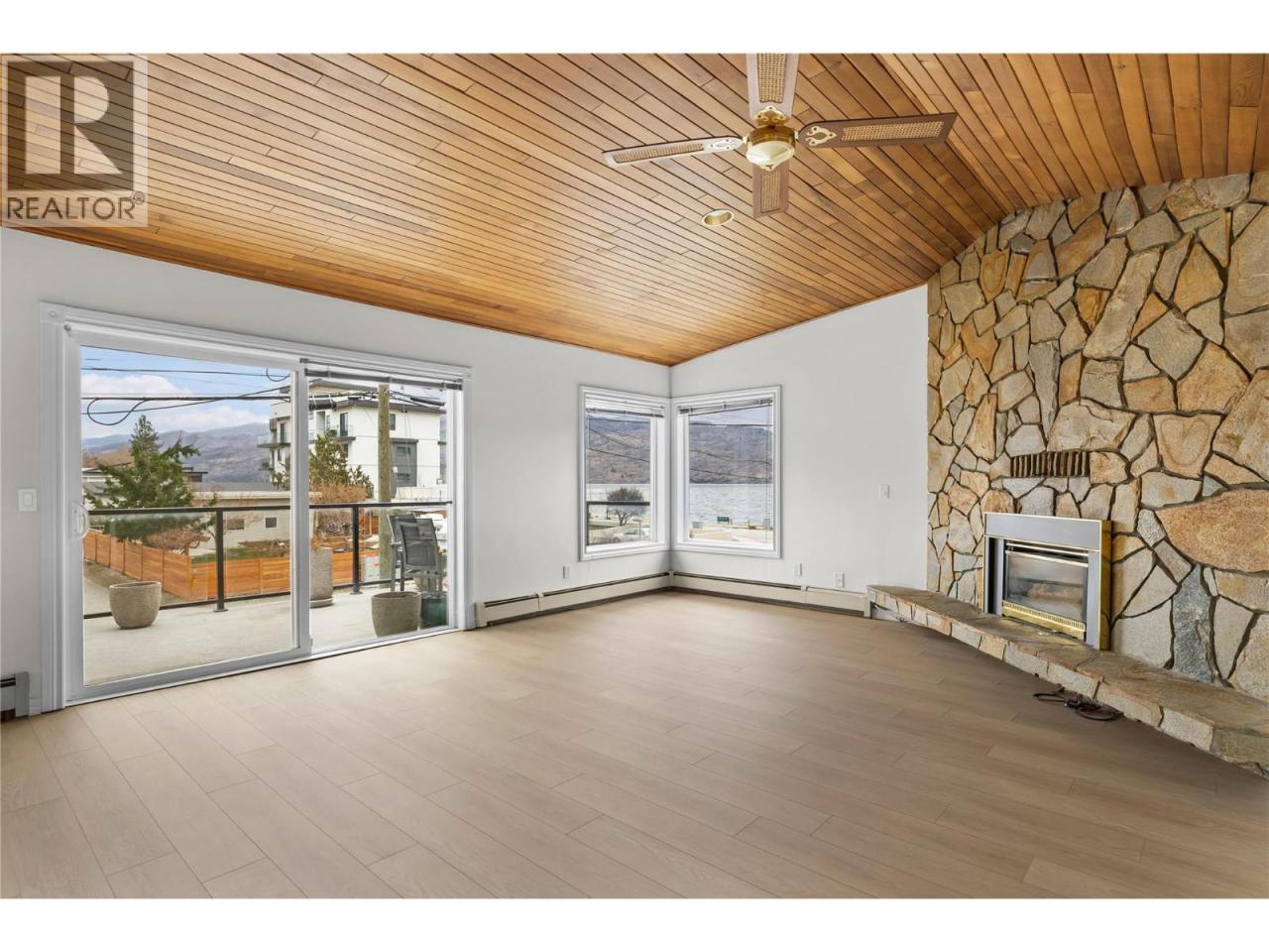 *OPEN HOUSE SAT MARCH 14TH, 12-2* Nestled in the highly coveted Beach Avenue of Peachland, ""Chateaux on the Lake"" stands as a SEMI-WATERFRONT oasis designed for those aged 55 and above, embodying an exemplary Okanagan lifestyle within a serene environment. This TOP-floor, spacious 2-bedroom/2-bathroom unit features BRAND NEW FLOORING & PAINT. The open-concept kitchen, living, and dining area boasts vaulted wood shiplap ceilings, a gas fireplace, and access to your large patio offering stunning lake views and additional storage. The kitchen is equipped with stainless steel appliances, a breakfast bar, and ample cabinetry. The primary bedroom is generously sized, featuring an ensuite, brand new carpet and a large walk-in closet. Storage and parking are no issue here with assigned parking with storage shed in front, additional private storage sheds, as well as parking for boats or RVs, and an inviting common area. Just steps away lies the renowned Beach Avenue boardwalk where an array of dining options and local shops await, including Bliss Bakery and the Blind Angler restaurant. Further convenience is found with a short drive to the local IGA grocery store in Peachland and a mere 10-minute drive to the abundant amenities of West Kelowna. Immerse yourself in the serenity and lakeside charm of Peachland living at its finest. Upgrades also include windows/patio door in 2011, new washer/dryer and brand new furnace. (id:6769)Construction Info