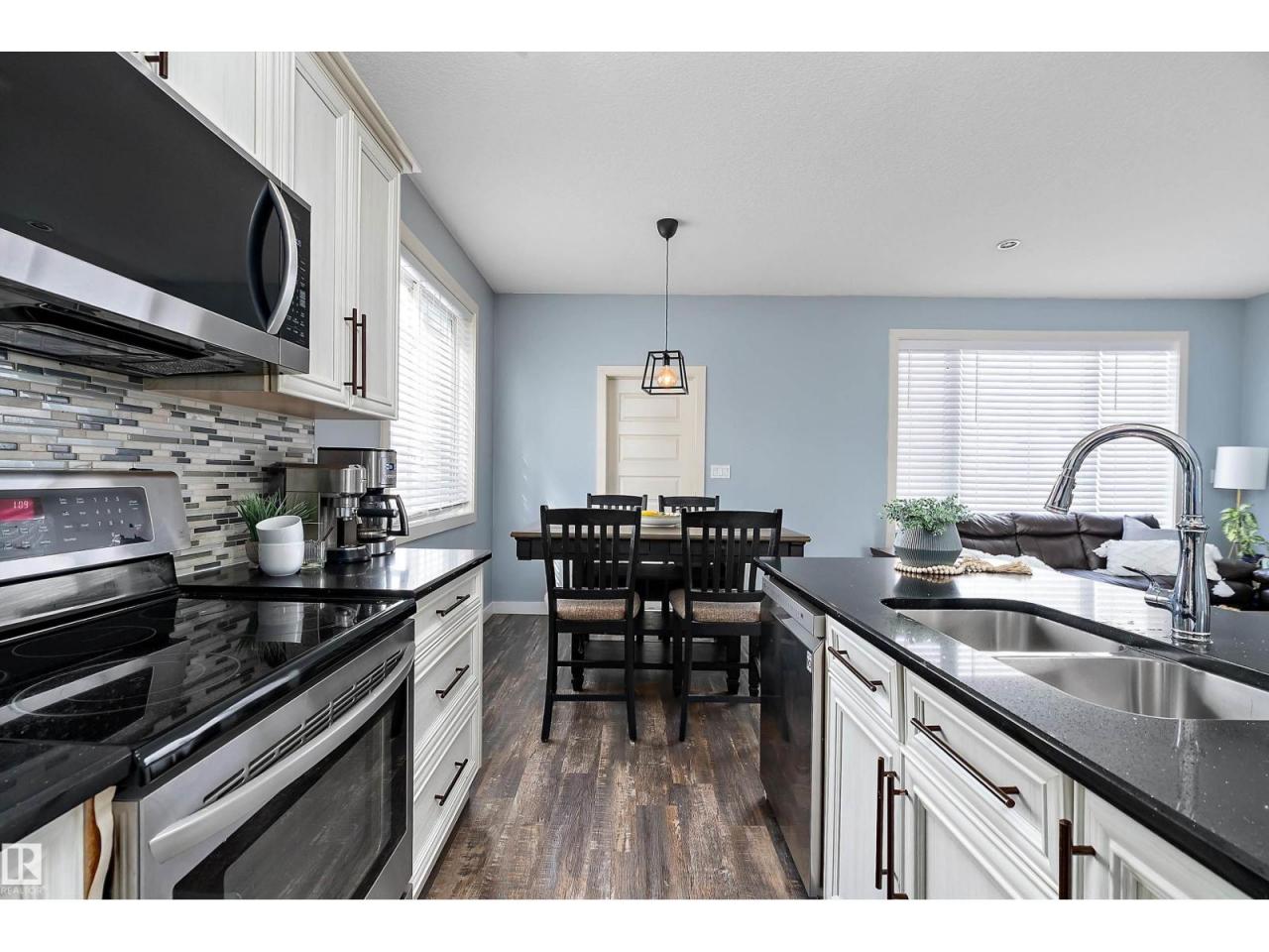 Fully finished 5 bedroom, 3.5 bath home across from greenspace. Bright & spacious home that offers everything a growing family could need. The main floor features 9 ft ceilings, & a welcoming entry that opens to a versatile flex room. The kitchen is well designed w/ quartz countertops, a large island, corner pantry, & overlooks the living room with a cozy gas fireplace. A generous dining nook provides plenty of space for family meals or entertaining. The main floor is completed w/ separate laundry room with door for added privacy. Upstairs you will find 3 large bedrooms including the primary suite w/a full ensuite & spacious closet. 2 additional bedrooms & another full bathroom complete the upper level. The fully finished basement offers 2 more large bedrooms, a flex room, & additional bathroom. Top it all off with A/C! Outside you will find a large backyard, double detached heated garage.Close to shopping, schools, playgrounds, and walking paths w/ easy access to all the amenities Leduc has to offer. (id:6769)Construction Info