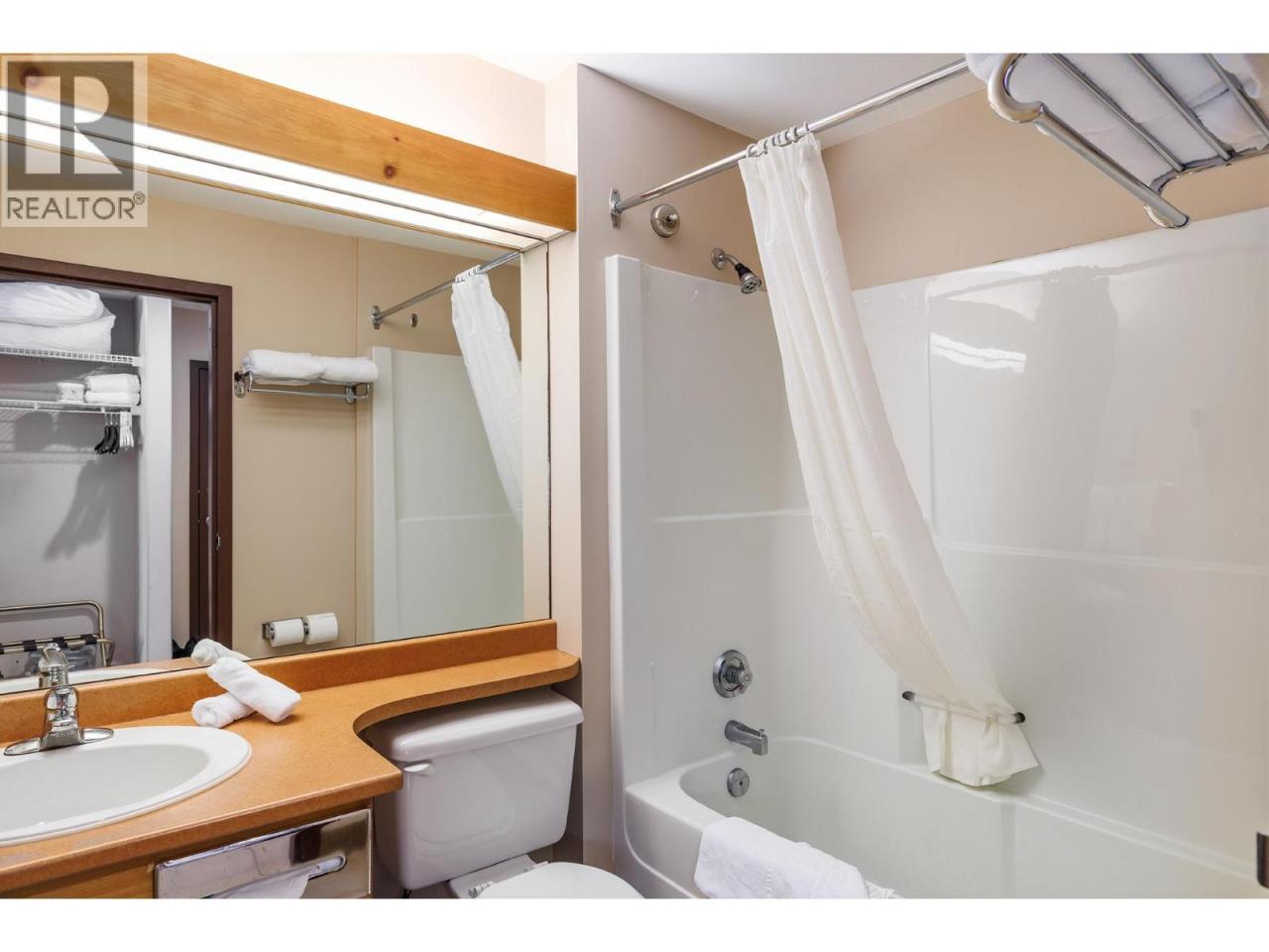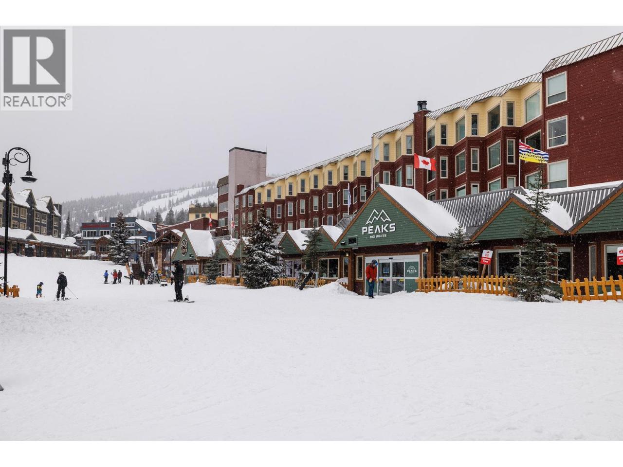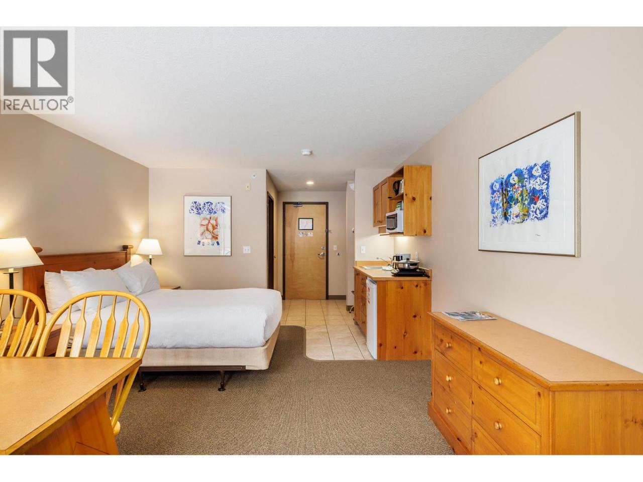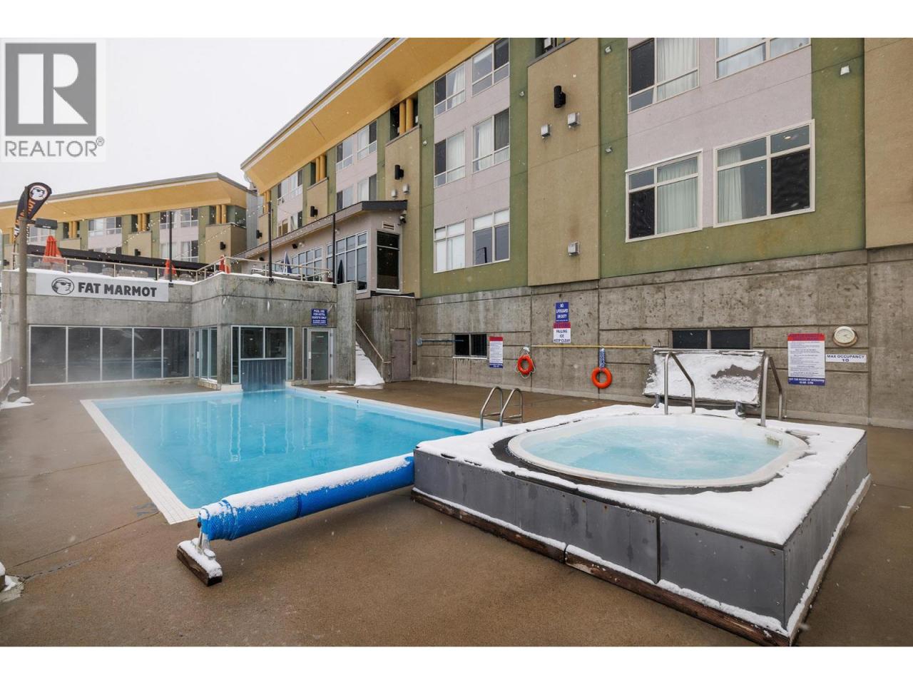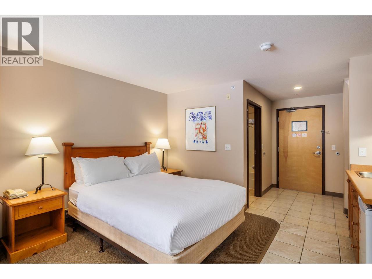 Ski-in/ski-out living in the heart of Big White. This deluxe studio suite offers a comfortable mountain retreat with direct access to the slopes and resort amenities. Designed for efficient living, the open-concept layout features a built-in Murphy bed and thoughtful furnishings that allow the space to comfortably sleep four. The kitchenette is equipped with upper and lower cabinetry, tile flooring, an RCA microwave and Danby mini fridge—perfect for preparing quick meals between ski runs. The living area is warm and inviting with carpet flooring, a cozy gas fireplace with tile surround, and a large window framing views of the pool, hot tub and surrounding mountains. The 4-piece bath features tile flooring, a single vanity with integrated lighting and a tub/shower combination. Owners and guests enjoy access to exceptional building amenities including an outdoor pool, hot tub, fitness room and games room, along with restaurants and bars just steps away. Additional features include secure parking, ski storage within the building, shared guest laundry on P2 and pet-friendly policies with restrictions. Whether used as a personal getaway or rental property, this well-positioned suite offers effortless access to everything Big White Resort has to offer. (id:6769)Construction Info