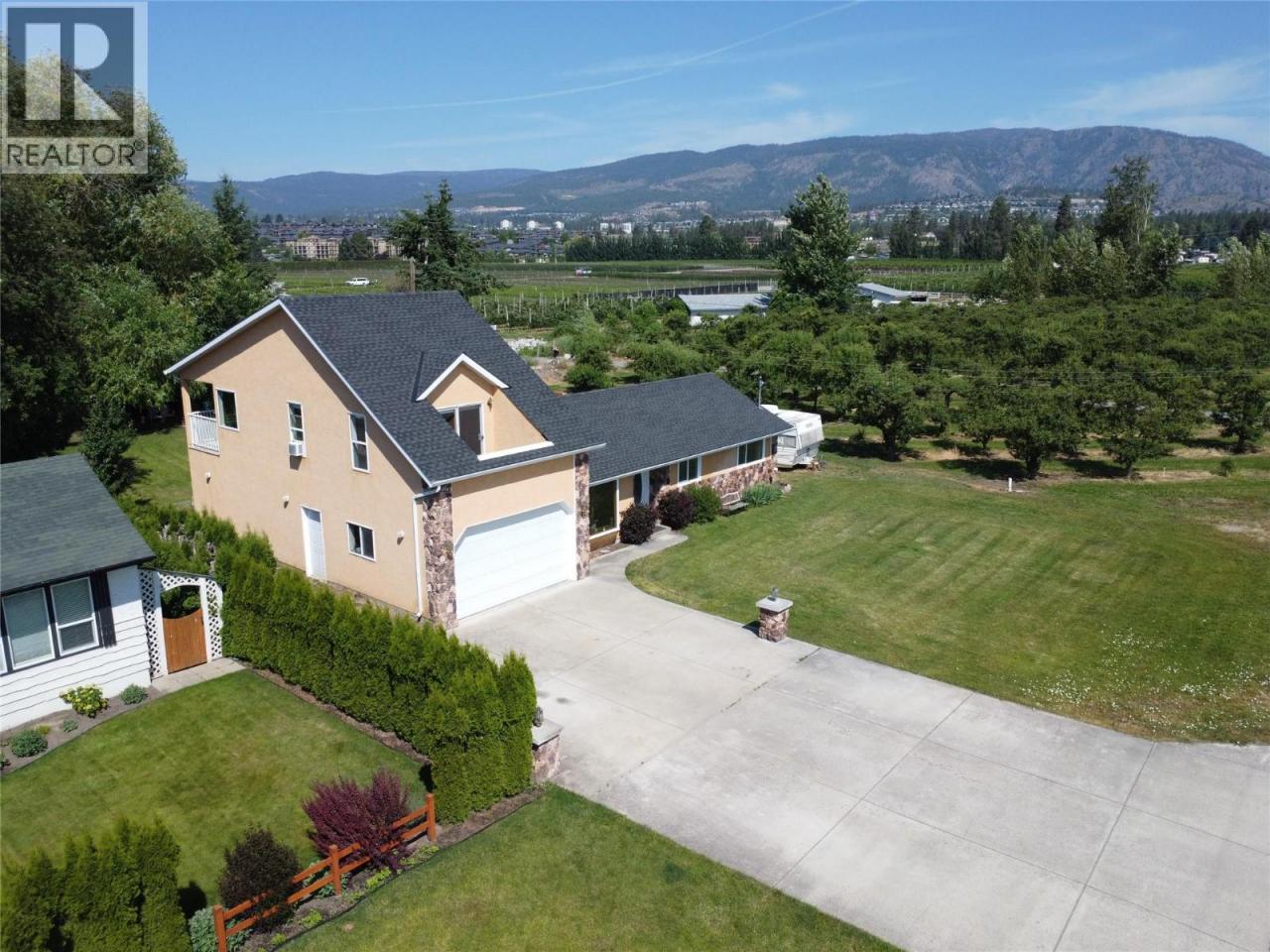 Country living just steps from the lake. Set on one of the area’s most desirable streets, 3982 Hitchner Road offers a rare combination of privacy, usable land, and easy walkable access to the shoreline. This 0.3-acre property backs onto a peaceful creek and is surrounded by orchards, while being just one block from two sandy beaches and only minutes to town amenities. The 2,026 sq ft home offers 3 bedrooms plus a den, 2 full bathrooms, and a flexible layout with potential for a fourth bedroom. The spacious primary suite features two private balconies overlooking neighbouring orchards. The main level includes a country-style kitchen with hickory cabinetry, bright living space with views of mature trees, and a cozy den with direct access to the backyard. Downstairs provides 386 sq ft of additional space with a separate entrance, suitable for a home office, studio, or guest area. Recent updates include new roof, high-efficiency furnace and central A/C, water softener, private and shared water licences, and connection to city sewer. The property offers a large deck, hot tub, mature trees, and an oversized garage with ample parking for multiple vehicles, RV, and boat. Located on a quiet, established road known for larger lots, orchards, and close proximity to the lake, this is a well-kept property with space, privacy, and flexibility. (id:6769)Construction Info