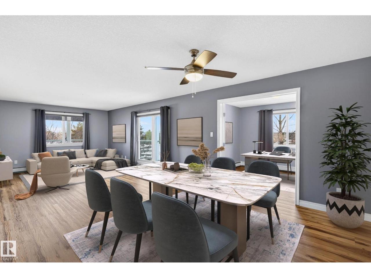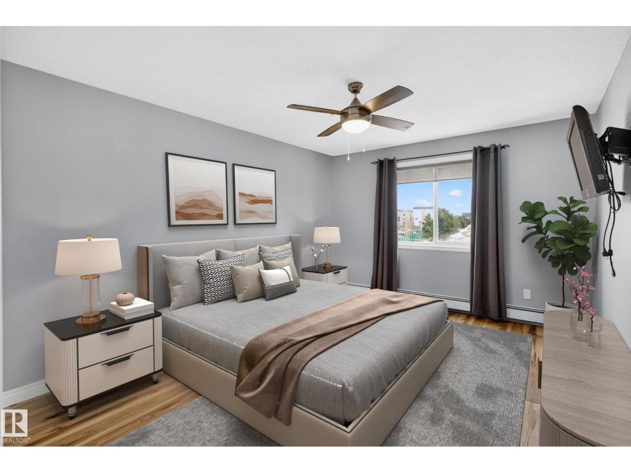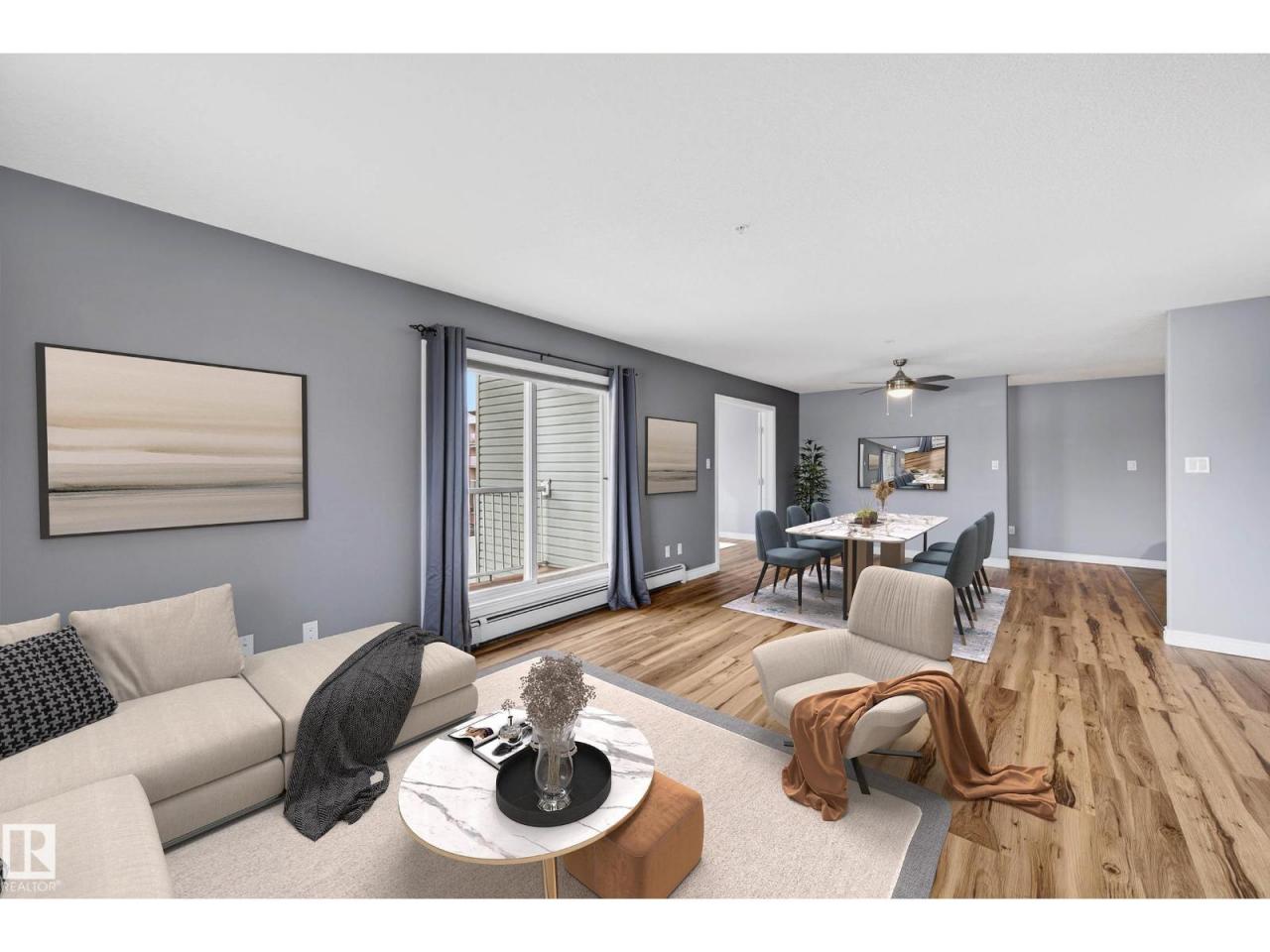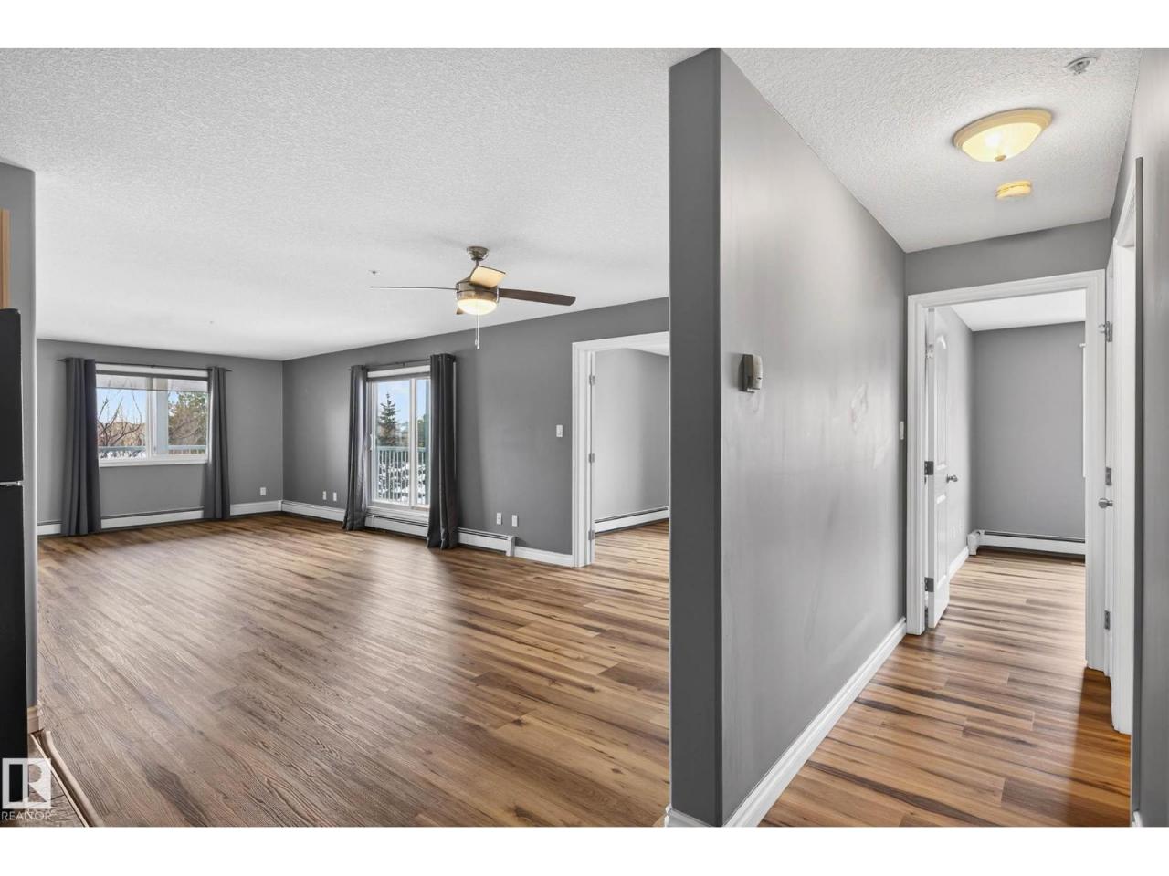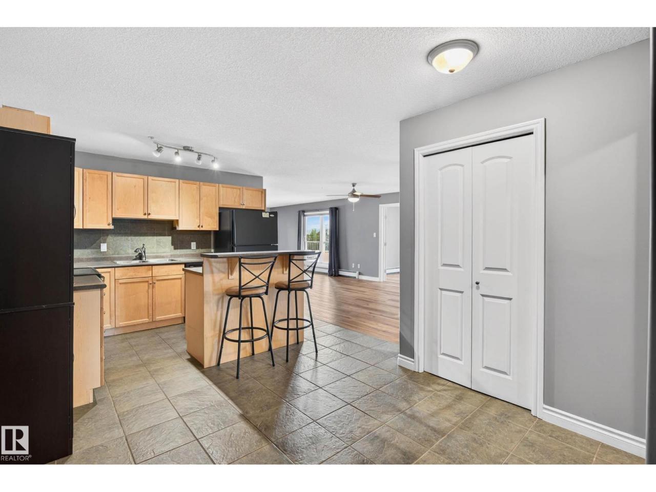 Spacious, bright & beautifully updated! This impressive 1232 sq ft condo offers 2 bedrooms, 2 bathrooms PLUS a den, providing a well designed layout & exceptional value. The den is perfect as an office, dining area or playroom. Enjoy the open concept living area filled with natural light & a sunny wrap around balcony, ideal for relaxing!. The kitchen features a moveable island, ample cabinetry & black appliances. Bedrooms are ideally positioned opposite from each other for maximum privacy. The large primary bedroom features a double closets & a 3pc ensuite. Updates: vinyl plank flooring (23), dishwasher (25), toilets (24), modern décor switches & tamper proof plugs. In suite laundry with HE front loading washer & storage add convenience. Includes underground heated parking, gym access & condo fees that cover heat & water. Walking distance to Freson Bros, restaurants & more. Includes: barstools, pantry, shelving & TV! A rare, generously sized unit you do not want to miss! Some photos virtually staged. (id:6769)Construction Info
