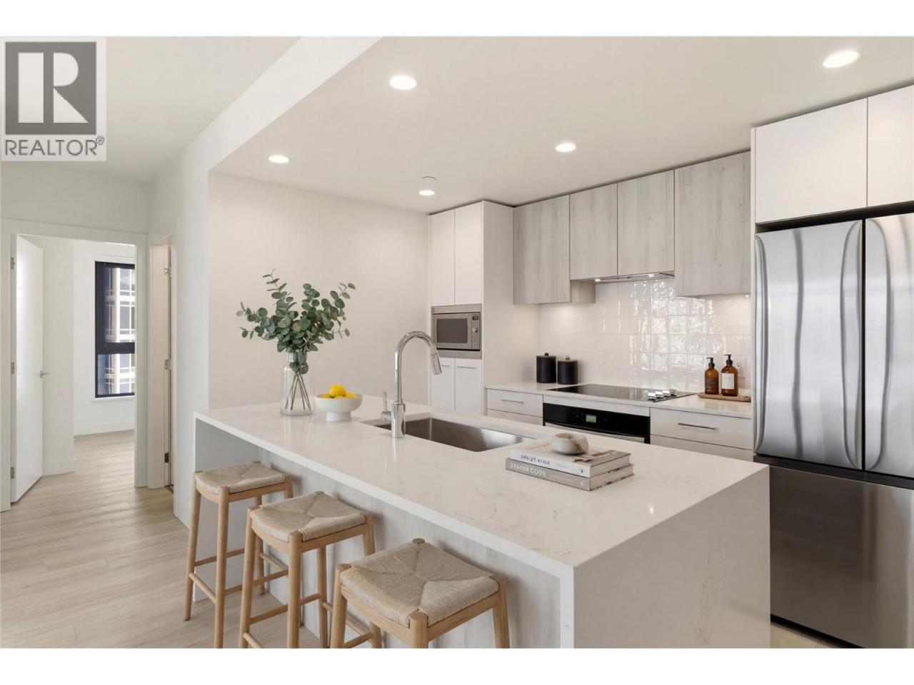 Discover resort-style living at Aqua Waterfront Resort, perfectly positioned in Kelowna’s sought-after Lower Mission just steps from the lake. This 2-bedroom, 2-bathroom 13th-floor unit features 1,057sq. ft. of thoughtfully designed space with expansive windows, high ceilings, and a bright open-concept layout. A split-bedroom design provides ideal privacy, while the northwest-facing covered balcony captures lake, city, and mountain views. The modern kitchen showcases two-toned cabinetry, quartz countertops, a waterfall island, premium stainless steel appliances, and a wine fridge. The living space is enhanced by wide-plank flooring and abundant natural light. The primary suite offers a spa-inspired ensuite, while the second bedroom is perfect for guests or a home office. Additional features include full-size laundry, upgraded storage, fiber-optic wiring, and efficient VRV heating/cooling. Includes 2 secure parking stalls and a storage locker. Pet-friendly with no size restrictions. Enjoy resort-style amenities: outdoor pool & hot tub, fireside lounge, 2-storey fitness centre, yoga studio, co-working space, BBQ area, pet wash, and more. Optional Aqua Boat Club access adds to the ultimate Okanagan lifestyle. (id:6769)Construction Info
