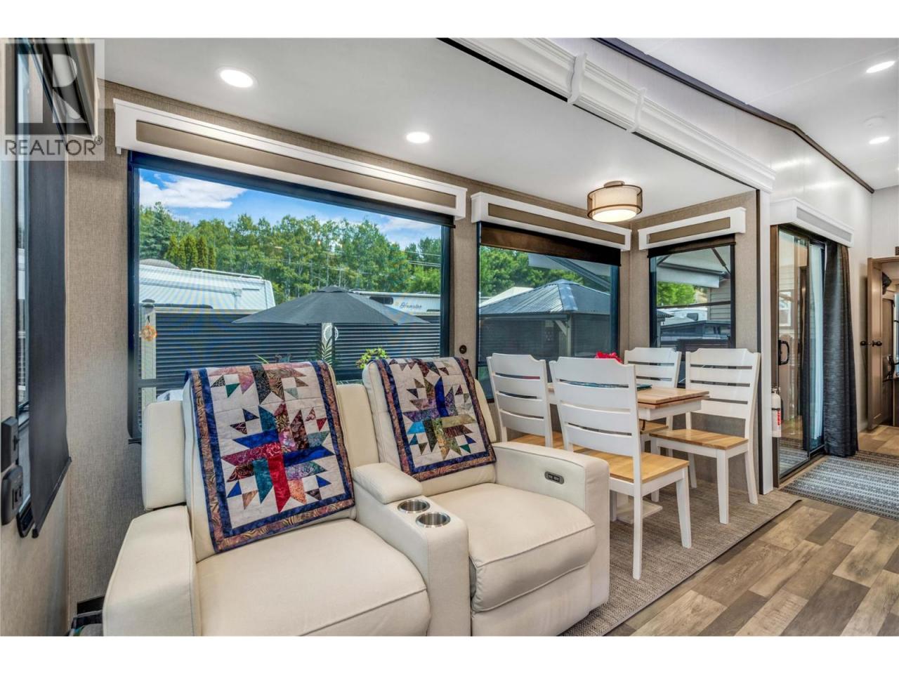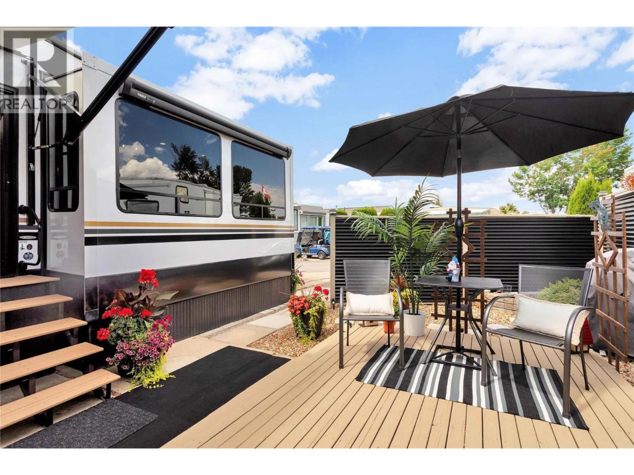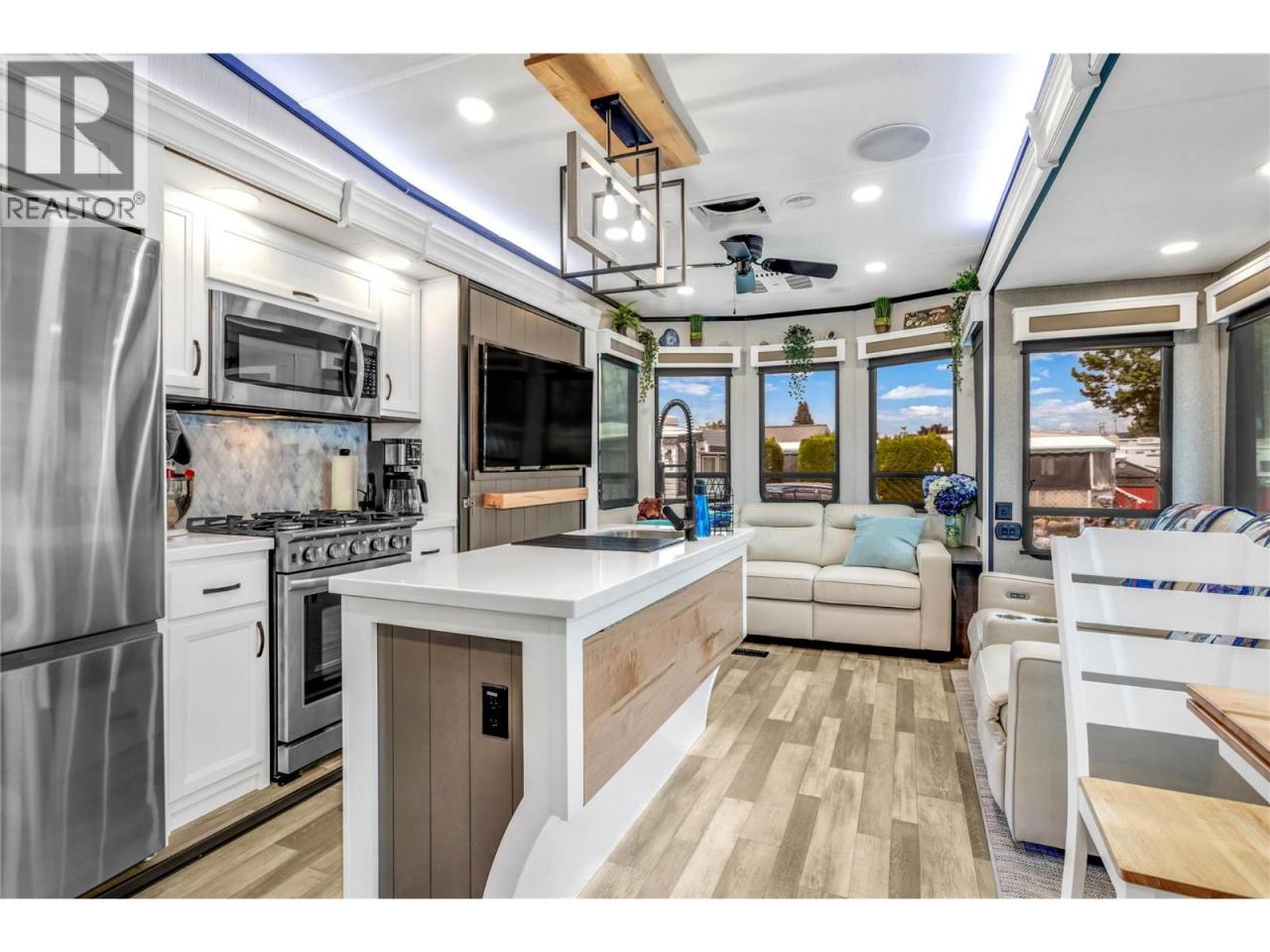 Looking for a year round slice of ""Holiday Style"" living? This is your place! This Destination Model-COTTAGE by Cedar Creek is a FULLY WINTERIZED year round model. It is immaculate and features numerous upgrades: Custom built-in pantry, water softener/filtration throughout, central vac, dbl awnings, 2 A/C units, gorgeous laminate flooring and more. ""True"" Gelcoat Exterior (The Best), All Aluminum Superstructure & 3M Bonded sidewalls. This home is immaculate with 1 bedroom on the main floor and a loft area upstairs which is great for company, or added storage or a hobby area. Kitchen/Living GREAT room has a beautiful island, lots of seating and bright dbl pane windows, a fireplace and glamorous stainless steel appliances. Gorgeous outdoor patio and gazebo with an additional storage shed. Lots of parking nearby and close to the GOLF course, RECREATION complex where you will find the indoor POOL, hot tub, gym, hair salon, washrooms and sauna. Other amenities in Holiday Park Resort are pickleball court, pools, hot tubs, library, games room, shuffleboard, woodworking shop. Lease to 2046 which is registered with the Federal Government. Pet friendly park includes a fenced in, off-leash dog park. The Maintenance Fee, payable in January of each year is $5186.44. This includes security 24-7, water, sewer, use of the amenities, maintenance of the common areas and roads, snow removal and garbage disposal area. There is no Property Transfer Tax. Short & long term rentals OK. Max 2 dogs (id:6769)Construction Info