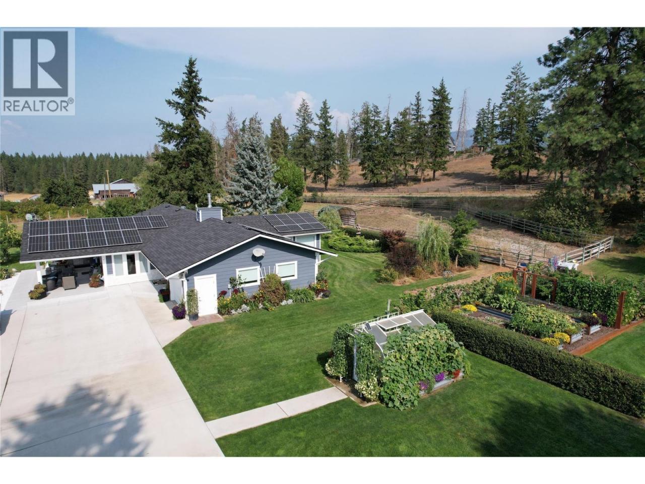 Live the homesteading lifestyle on this meticulously developed private 13-acre estate just minutes to Armstrong & Vernon. Fully fenced, irrigated & remotely gated, this exceptional property combines luxury living with a self sustaining farmstead. The renovated 3 bed, 2 bath home features geothermal heating/cooling, solar power, new roof, windows & dream kitchen. The master offers a spa-like ensuite and walks right out to a covered patio with saltwater hot tub & valley views. Natural gas fireplace, mini-splits & geo thermal heating and cooling ensure year-round comfort. 50 GPM well, underground irrigation, 3000 gal cistern, 6KW solar (house & shop), EV charging & extensive electrical upgrades. Extensive food production includes orchards (plum, pears, cherries, peaches, apples) , berries (Strawberries, raspberries, blueberries), grapes, asparagus, raised beds, trellised gardens & greenhouse with power/water. Equestrian & farm-ready with a 10-acre hay field in production, cross fencing, shelters, auto waterers, heated chicken coop, mobile chicken tractor, walk-in meat cooler, pole barn, hay storage & 40'x44' heated shop (natural gas + wood). Private forest, landscaped grounds, deer-frequented fields, security system, LED lighting & fibre Optic + Starlink internet complete this turnkey lifestyle property. Zoned for second residence. 40ft covered RV parking with plug in. Set up so you hardly need to go to town. Comes with a newer fully hooked up, winter ready RV trailer also. (id:6769)Construction Info