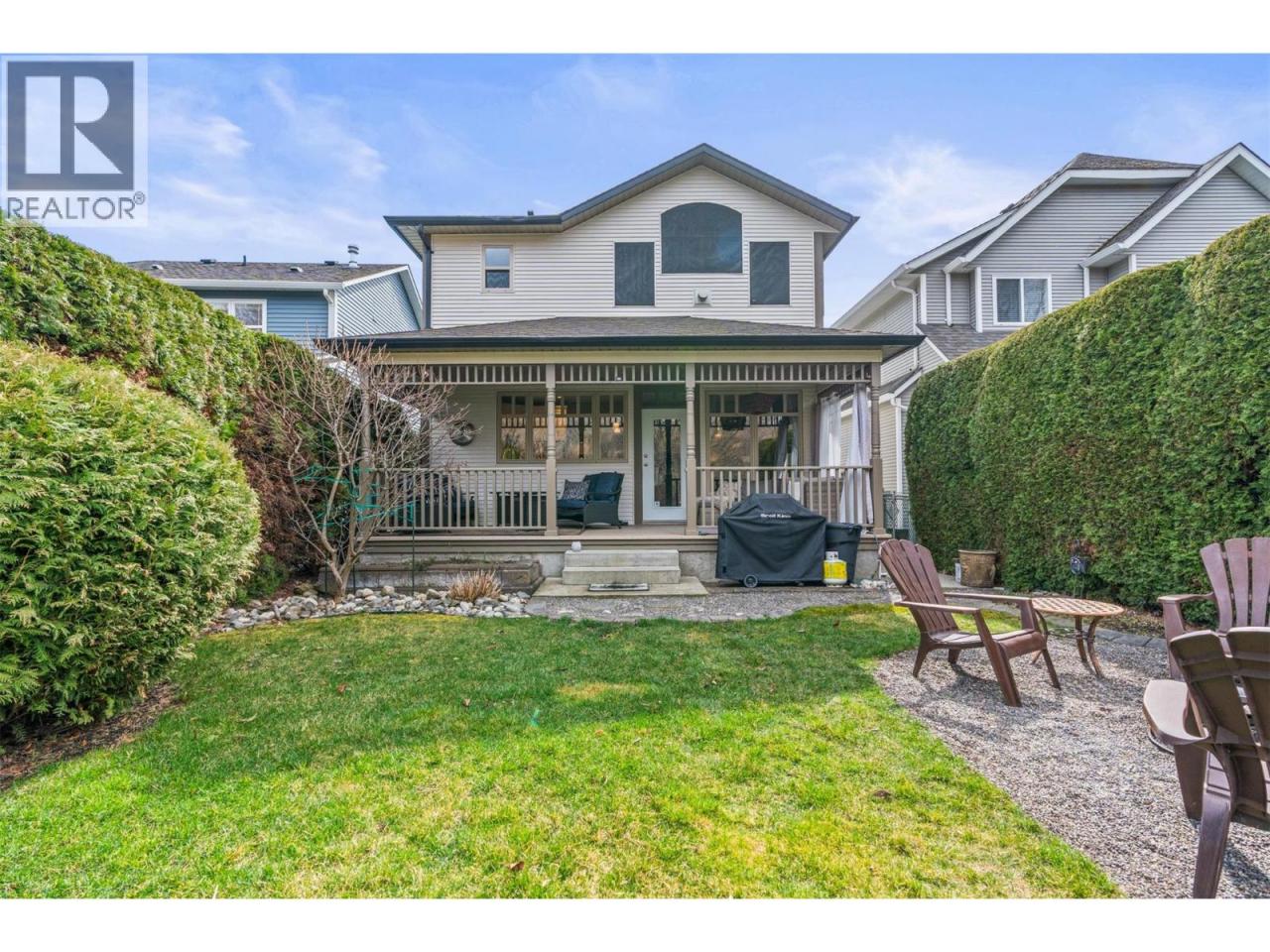Quiet streets, friendly neighbours, and a setting that feels straight out of Pleasantville—this is the kind of home people wait for. Set in one of Okanagan Landing’s most sought-after pockets, just a short walk to Ellison Elementary and Fulton Secondary, this home blends everyday function with thoughtful updates. Hardwood floors carry across the main level, leading into a beautifully updated kitchen with quartz countertops and a natural flow into the dining and living spaces—anchored by a cozy natural gas fireplace. Step out to the covered deck and you’ll find a private, fully fenced backyard framed by mature cedar hedges, backing onto green space and a creek—quiet, peaceful, and hard to replicate. Upstairs, three well-sized bedrooms include a standout primary retreat with vaulted ceilings, a walk-in closet, private ensuite, and its own gas fireplace. Laundry is right where you want it—on the same level. The lower level adds flexibility with a fourth bedroom or guest space, a den, full bathroom, and plenty of storage. Double garage, great layout, and a neighbourhood that simply feels right. (id:6769)Construction Info