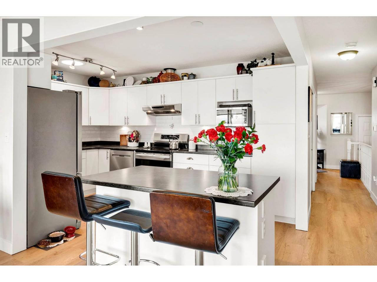 Beautifully maintained and updated 2+1 bedroom 3 bathroom townhouse with unobstructed east facing views in desirable McKinley Court complex. This level entry unit has a bright and open living room, dining room with access to a deck, updated Island kitchen, main bedroom with 3 piece ensuite, 2 piece main bathroom, and main floor laundry. The walk-out basement has a good sized den, two additional bedrooms, 4 piece bathroom, and access to a private patio. Immaculate condition inside and out with great views upstairs and downstairs. Many updates done throughout including, kitchen, bathrooms, flooring, hot water tank, and more. Move-in ready and quick possession possible! (id:6769)Construction Info