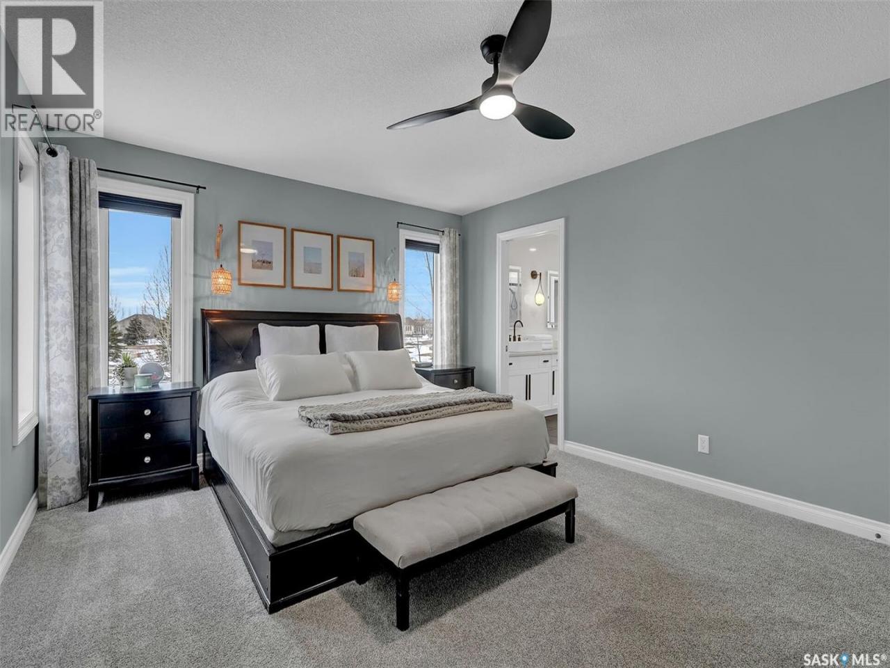 Enjoy the best of both worlds in White City—peaceful, small-town living just minutes from Regina, with easy access to schools, shopping, and amenities. This 4 bedroom 4 bathroom home is set on a 0.5-acre pie-shaped lot backing the 4th hole of Aspen Links Golf Course. This impressive two-storey built by Gilroy Homes offers privacy and scenic views. The main floor features 9-foot ceilings and light hardwood throughout the living and dining areas, with a gas fireplace and built-in shelving adding warmth and style. The gorgeous kitchen includes two-tone cabinetry, quartz countertops, tiled backsplash, and a large island with seating. A walk-through pantry connects to the mudroom and heated garage. Spacious dining area is a great spot to enjoy family dinners and entertain guests. Added bonus is the office/flex room and the 2-piece powder room that complete the main level. Upstairs offers a spacious primary suite with a spa like 5-piece ensuite featuring heated tile floors, custom shower, soaker tub, and heated towel bar. Primary retreat also includes a wonderful walk in closet space. Two additional bedrooms and another 4 piece bath along with a laundry room offering good storage complete the second level. The fully developed basement includes a family room with wet bar that is just perfect for family movie nights of enjoying time with friends. An additional bedroom (window may not meet current egress) a 3-piece bath, a versatile storage room or gym space with rough-in for second laundry as well as the utility room complete the lower level. The heated, insulated double garage includes built-in storage and a dog wash station. The stunning landscaped yard features a spacious trex deck, lower patio area, underground sprinklers, plus a 20’ x 20’ insulated shop with overhead door—perfect for storage or a golf cart. This property has been very well cared for and offers many unique features. A true pleasure to show! (id:6769)Construction Info