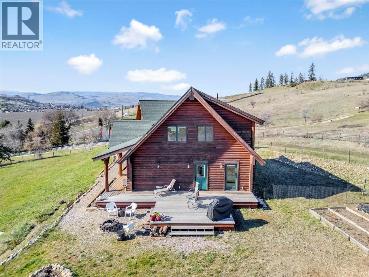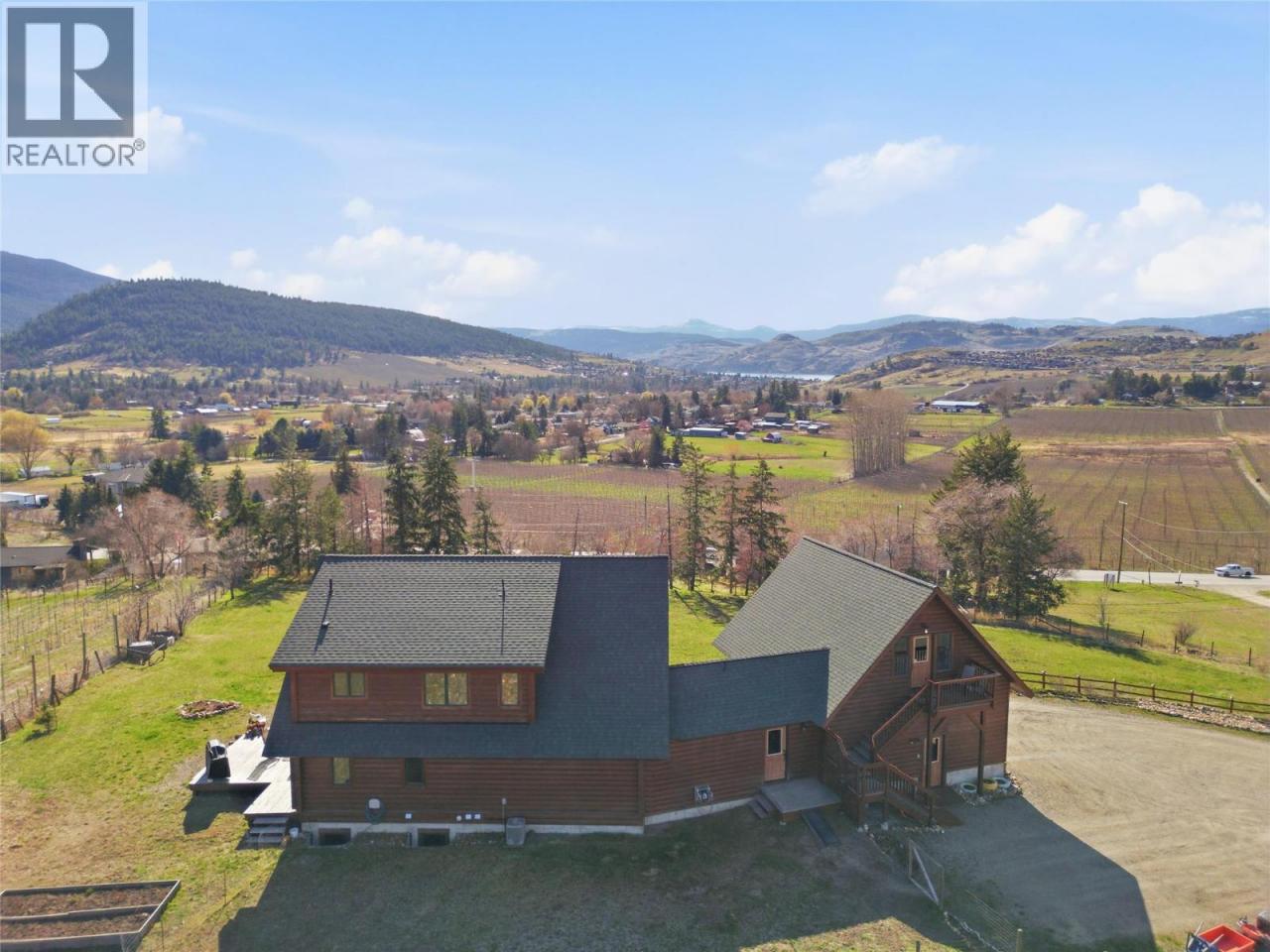 It’s the kind of place where the day winds down just right—out on the front porch, taking in the sunset over the Coldstream Valley, with Kalamalka Lake catching the light in the distance. Set on 2.47 acres just off Highway 6, this property offers space, views, and a home that feels grounded the second you step inside. Follow the driveway up and you’re met with that elevated perspective—valley views, lake glimpses, and a sense of privacy that’s hard to replicate this close to town. Constructed from solid milled wood, this home radiates warmth and charm, with vaulted ceilings and an open main living space that feels airy and inviting. The kitchen is built for gathering, with maple cabinetry, a large island, and plenty of storage. A main floor bedroom adds flexibility for one-level living or a quiet office. Upstairs, the loft connects to a spacious primary bedroom, full bath, and additional bedroom. Downstairs is unfinished with a roughed-in bath, ready for future plans. And then there’s the bonus, a detached garage with an enclosed breezeway and a private studio suite above. Perfect for hosting, working from home, or creating an additional income stream. A property that offers more than just space, it offers a lifestyle. (id:6769)Construction Info