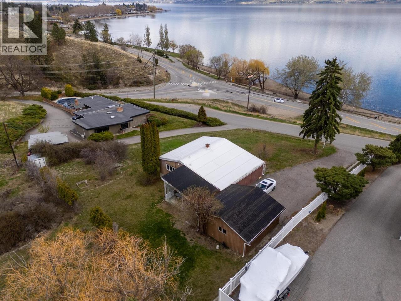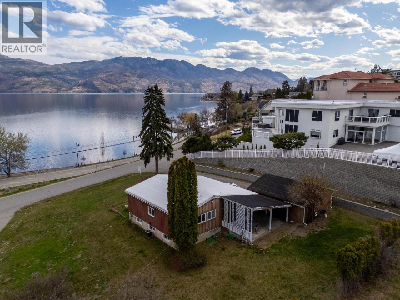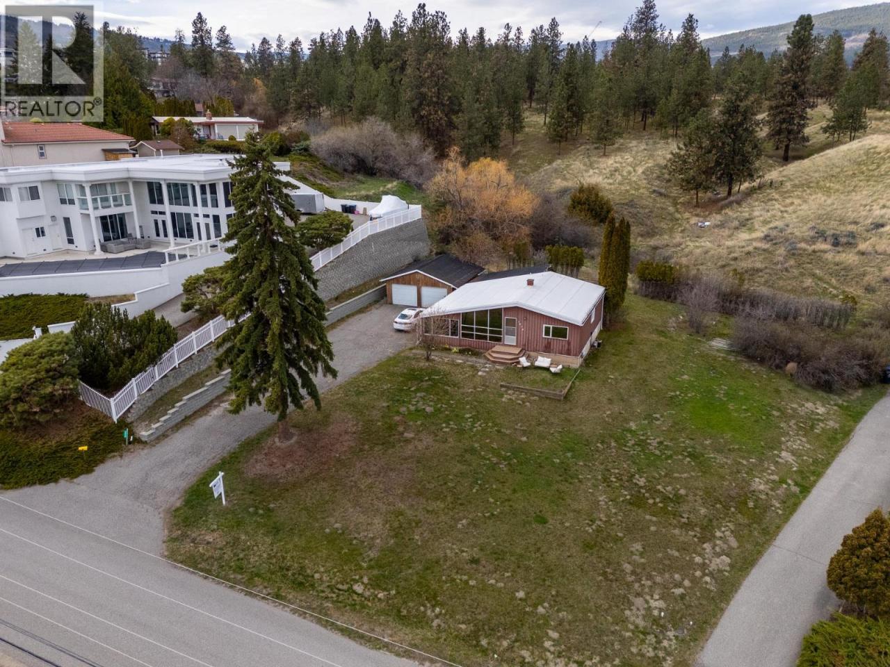 SEMI-WATERFRONT 0.574 ACRE LOT ACROSS THE ROAD FROM THE LAKE! Enjoy sweeping, unobstructed southeast views of Okanagan Lake and surrounding mountains—an incredibly rare combination of privacy, size, and proximity to the shoreline. Walk to Willow Beach, Gellatly Bay Yacht Club, and the scenic Gellatly Bay waterfront walking trail, all just steps away—yet only a minute to Westbank shopping, restaurants, and schools. Set on a quiet street of high-end executive homes, this private property backs onto undeveloped land, enhancing both tranquility and long-term value. The bright, open-beam cedar home offers expansive windows framing the lake, a cozy rock fireplace, fresh paint, 3 bedrooms up, and 2 full bathrooms. Detached double garage and full municipal sewer add to the convenience. Whether you renovate, hold, or build new, the potential here is exceptional. Explore rezoning to R2 for duplex/stratification or RC3 for two lots (buyer to confirm with District of West Kelowna). With approx. 100’ frontage and generous depth, this is an ideal site for two estate-style lakeview residences—without the burden of lakeshore taxes. (id:6769)Construction Info