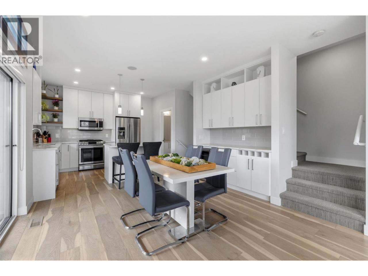 Situated in sought after KELOWNA SOUTH, close to the amenity rich SOUTH PANDOSY (""SOPA"") neighbourhood, you'll love the convenience of this INCREDIBLE LOCATION and the brilliance of this PERFECT HOME. This home ""checks all the boxes"" as it includes a PRIVATE ROOFTOP DECK (with hot-tub), a SECURE GARAGE, an AMENITY RICH LOCATION and a PERFECT FLOOR PLAN. Inside you'll love the open concept design, modern paint colors (freshly painted) and high end finishings. The kitchen is stunning; offering lots of cabinet & counter space (quartz counter-tops), stainless steel appliances, plus beautiful hardware and backsplash. A built-in dining room bar (with wine fridge) and an oversize living room provide an ideal space for entertaining. Easily accessed from the kitchen is an oversize deck, ideal for BBQing or a morning coffee. The second floor offers 2 bedrooms and 2 bathrooms, plus laundry. The primary bedroom retreat includes a walk in closet and a gorgeous ensuite. Go up a few stairs and you're sure to be impressed by the private rooftop deck. The rooftop deck provides great views, is plumbed with gas (for bbq), includes a hot-tub, and offers room for most any patio furniture set. Downstairs, the lower level provides a FULL WASHROOM plus a huge and open space offering lots of options (media room, games room, or perhaps you add a 3rd bedroom). Extras include brand new paint, tankless hot water heater, quartz counters throughout, no pet restrictions and a low monthly $100 strata fee. (id:6769)Construction Info
