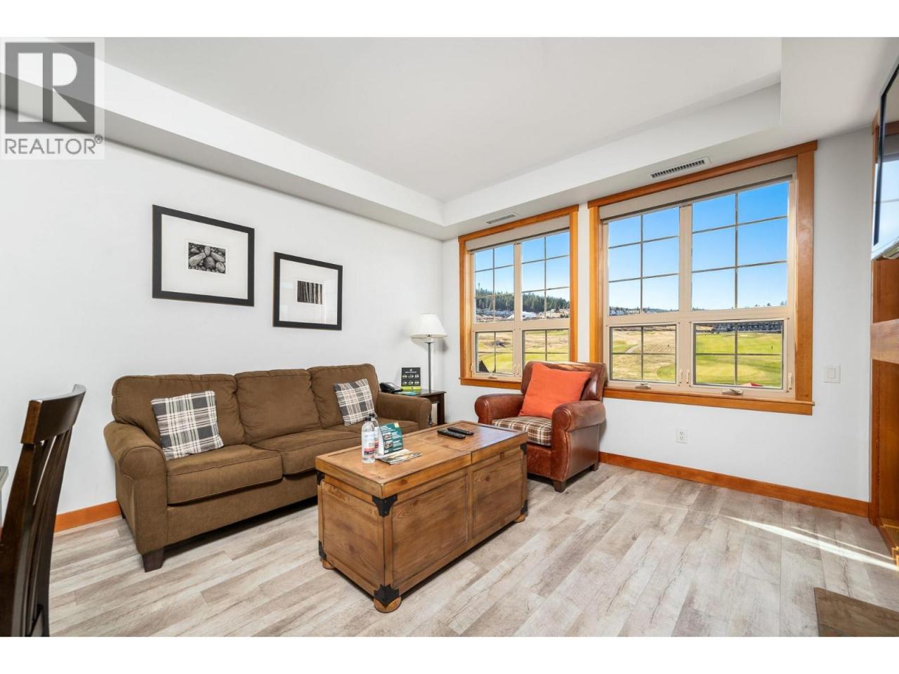 Stunning Golf Course views from this 3rd floor one bedroom home at the World Class Resort of Predator Ridge! This spacious, fully furnished one bedroom, one bath is the perfect vacation property to enjoy at with an abundance of activities available. Two 18 hole Championship golf courses to play either by joining the Club or publicly, is a golfer's paradise I Other amenities include an outdoor pool, hot tub & barbecue area just outside your door. Indoor & outdoor ten11is, pickleball, miles of hiking & biking trails, full fitness centre with full size indoor lap pool, hot tub, & steam room. The suite boasts lots of natural light with open concept living, gas fireplace, large bedroom and bath with jetted tub and generously sized balcony with unobstructed views overlooking the 1st hole of the Ridge & the 9th hole of the Predator golf course. Newer flooring and appliances. Homeowner perks/discounts on golf, dining, merchandise and access to the amazing Sparkling Hill spa. Conveniently located just 45 mins. from Silver Star Mtn. for downhill & X country skiing in the winter and biking & hiking in the summer. The Resort is situated in between 2 of BC's most beautiful lakes; Okanagan and Kalamalka. Both less than a 10 mins. drive. Just 25 mins. from Kelowna Int. Airport. When you're not at the resort, Predator Ridge will rent it for you and you'll generate revenue to offset the cost of ownership. Pets are welcome! (id:6769)Construction Info
