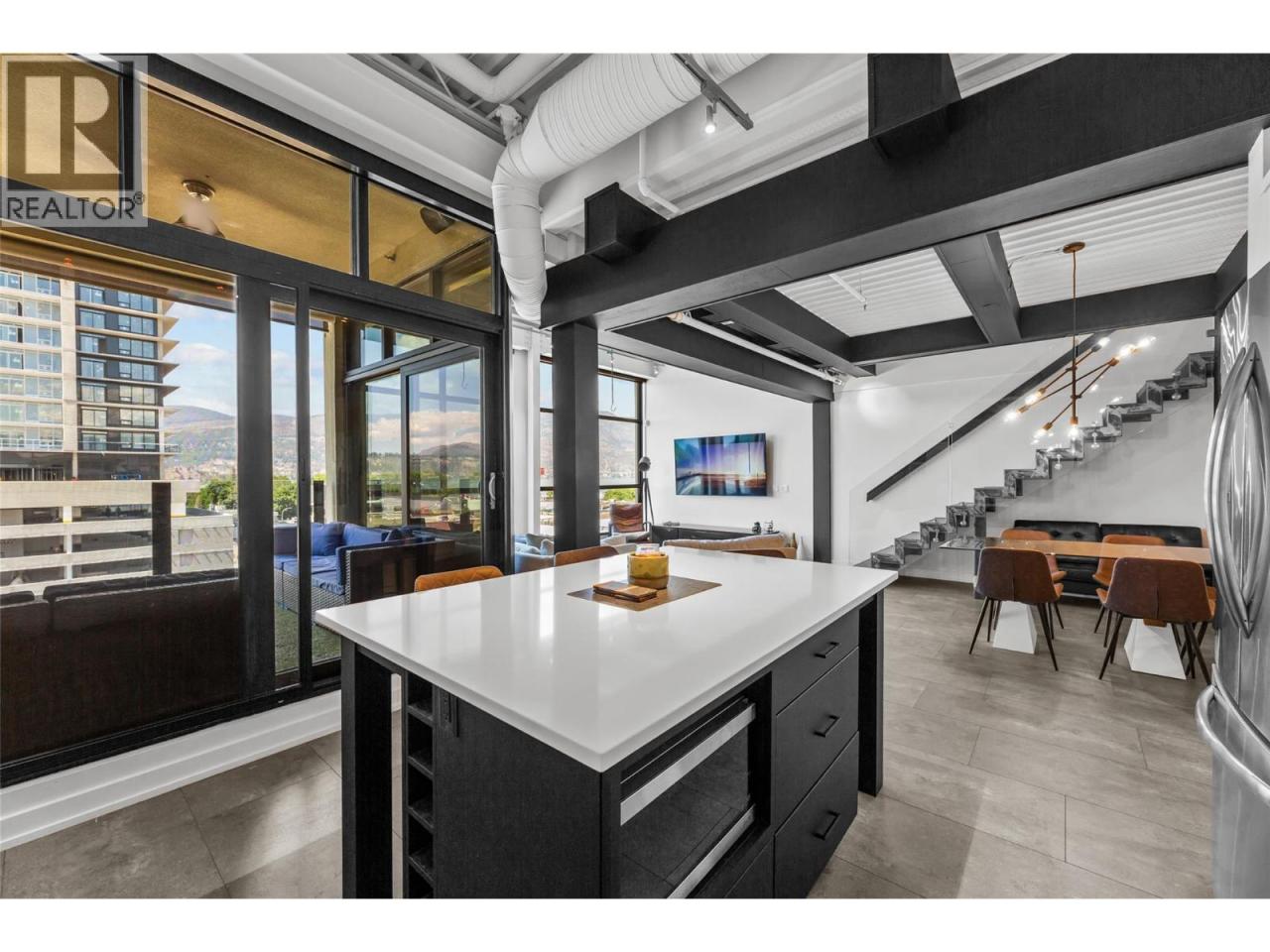 Discover Kelowna's most unique and luxurious condo—a fully renovated, lofted industrial-style masterpiece with unparalleled lake and city views. Perched atop a professional building with just five exclusive residences, this property promises an extraordinary living experience. The main floor boasts an expansive open-concept design featuring soaring high ceilings and dramatic floor-to-ceiling windows that flood the space with natural light. The stunning kitchen, equipped with top-of-the-line appliances opens to a heated, covered patio—perfect for year-round alfresco dining. Ascend to the primary retreat, where you'll be captivated by sweeping lake and city vistas. Every inch of this home has been meticulously updated with new flooring, a modern kitchen, state-of-the-art appliances, fresh paint, and elegant baseboards. This pet- and rental-friendly building offers the convenience of two large indoor parking stall. A property of this caliber must be seen to be truly appreciated. Don’t miss the opportunity to own this exceptional downtown loft and experience its unparalleled luxury and uniqueness firsthand. (id:6769)Construction Info