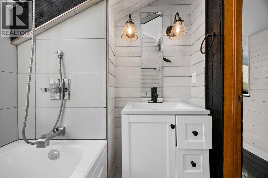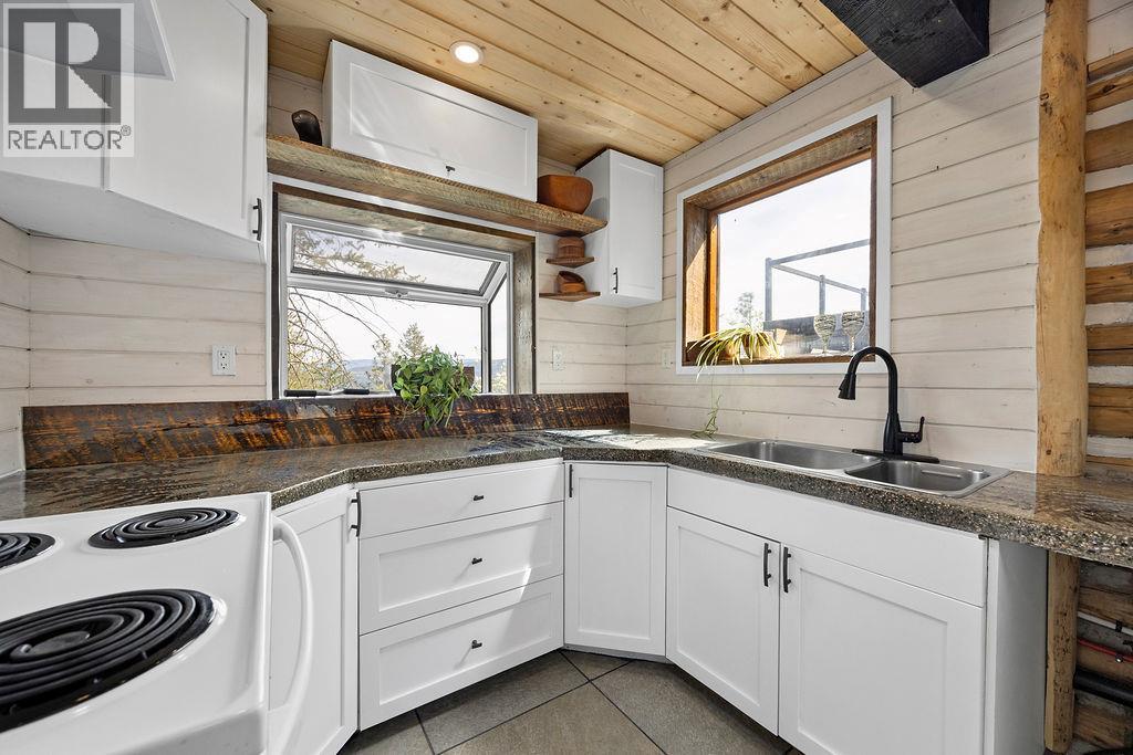 Open House Sunday, April 26, 12-3pm. YES... You read the price right! MILLION DOLLAR VIEWS, absolutely stunning and unbelievable from the deck, there are a couple comfy chairs for you to really soak it in if you want, no wine supplied. One of the coolest properties you will see for a very long time, it feels like Neil Young should be writing songs here on a regular basis. The coziest post and beam/ log cabin that will instantly take you back to the simple, easy times. Real 3/4 ash hardwood floors with Italian tile entrance and kitchen, concrete counter tops with fern inlay pattern, ultra cute live edge sitting bar/island, and the cutest little wood stove that fits so perfectly for those cozy nights. One of a kind fir/stained glass door off the living room to the private lower deck for those morning coffees overlooking the lake, open vaulted ceiling to upper level with custom funky juniper hand rail that leads to you the upper floor with small office space/family room, bright open bedroom, king sized bed and 4 piece bathroom with really cool details. The composite deck will blow your mind! Views from Armstrong to Kelowna, plan your showing around sunset and please, try not to stay 3 hours. Conventional financing not an option hence the really, really good price! Ask your realtor, see rep remarks. (id:6769)Construction Info