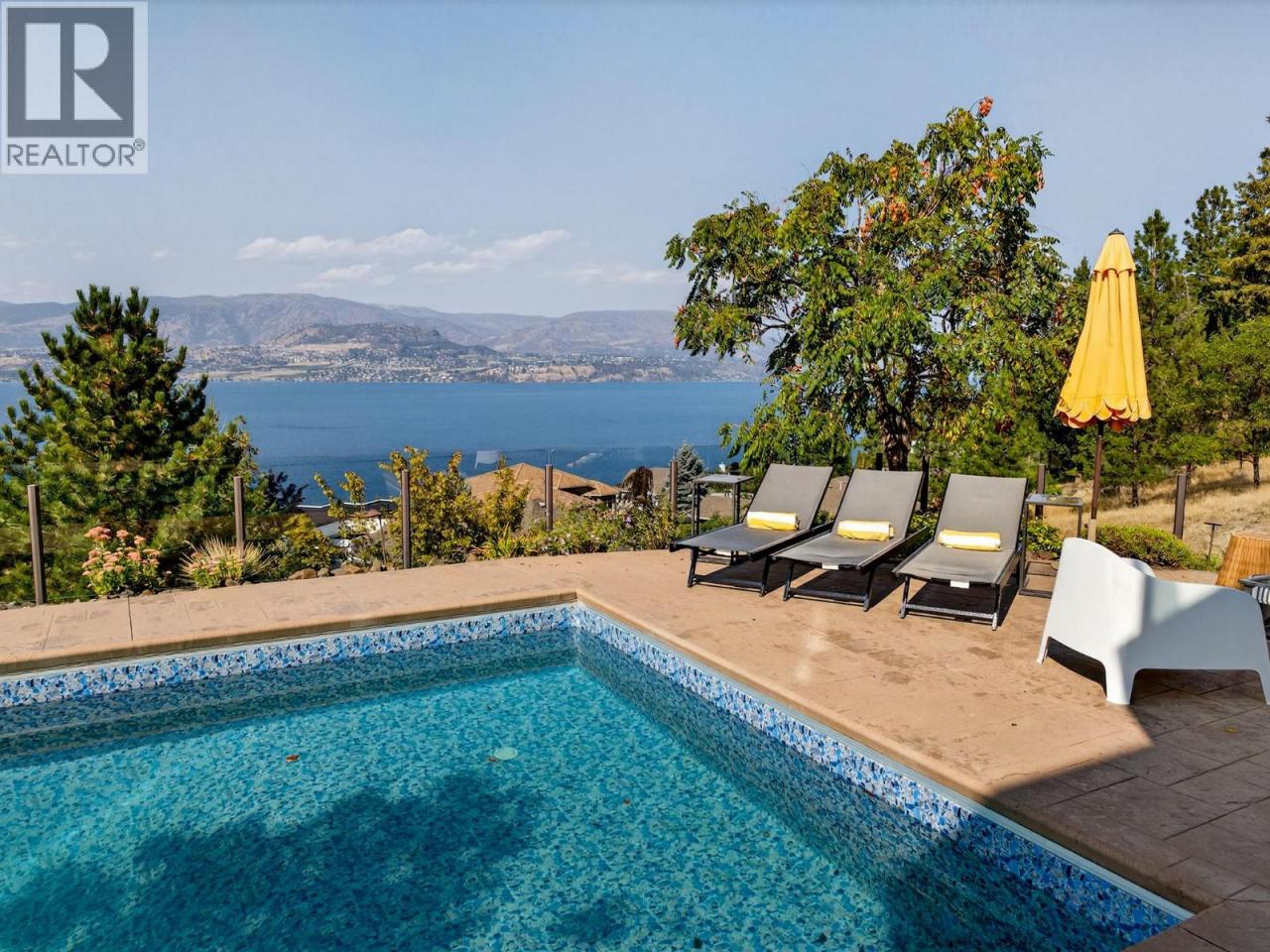 Welcome to this stunning walk-out rancher on sought-after Okaview Road, offering breathtaking 180-degree lake views and over 4,600 sq. ft. of living space. Designed to capture the beauty of the Okanagan, this home blends spacious interiors with exceptional indoor-outdoor living including inground outdoor pool. The main floor features a bright, open-concept layout with expansive windows framing the lake views. The kitchen flows seamlessly into the dining area and living room, creating an ideal space for entertaining. A gorgeous over-sized fireplace adds to the ambiance. Step outside to a generous wrap around deckāone side perfect for relaxing in the sun and the other ideal for dining alfresco while taking in the panoramic scenery. The main floor also features a well laid out mud room with individual lockers and an office/craft/homework room. The walk-out lower level offers two large bedrooms, wet bar, wine room, large TV/ recreation room, and a massive home gym. Outside, enjoy the incredible backyard retreat with an inground pool and covered patio, all perfectly positioned to soak in the spectacular lake views. A fantastic location close to amenities, wineries, schools, Lake Okanagan, and hiking trails completes this exceptional property. (id:6769)Construction Info